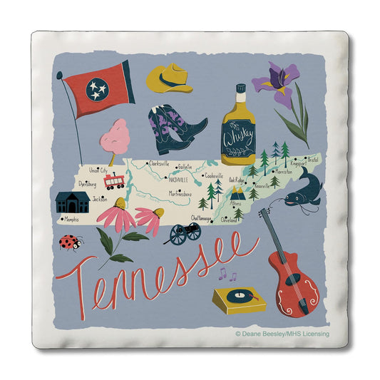 Thirstystone Tennessee Home State 4 Pack Tumbled Tile Stone Coasters 4" Square Manufactured in the USA