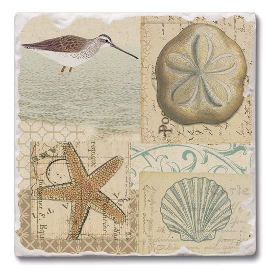 Thirstystone Shell Collage 4 Pack Tumbled Tile Stone Coasters 4" Square Manufactured in the USA