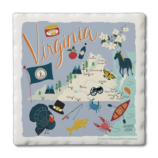 Thirstystone Virginia Attractions 4 Pack Tumbled Tile Stone Coasters 4” Square Manufactured in the USA