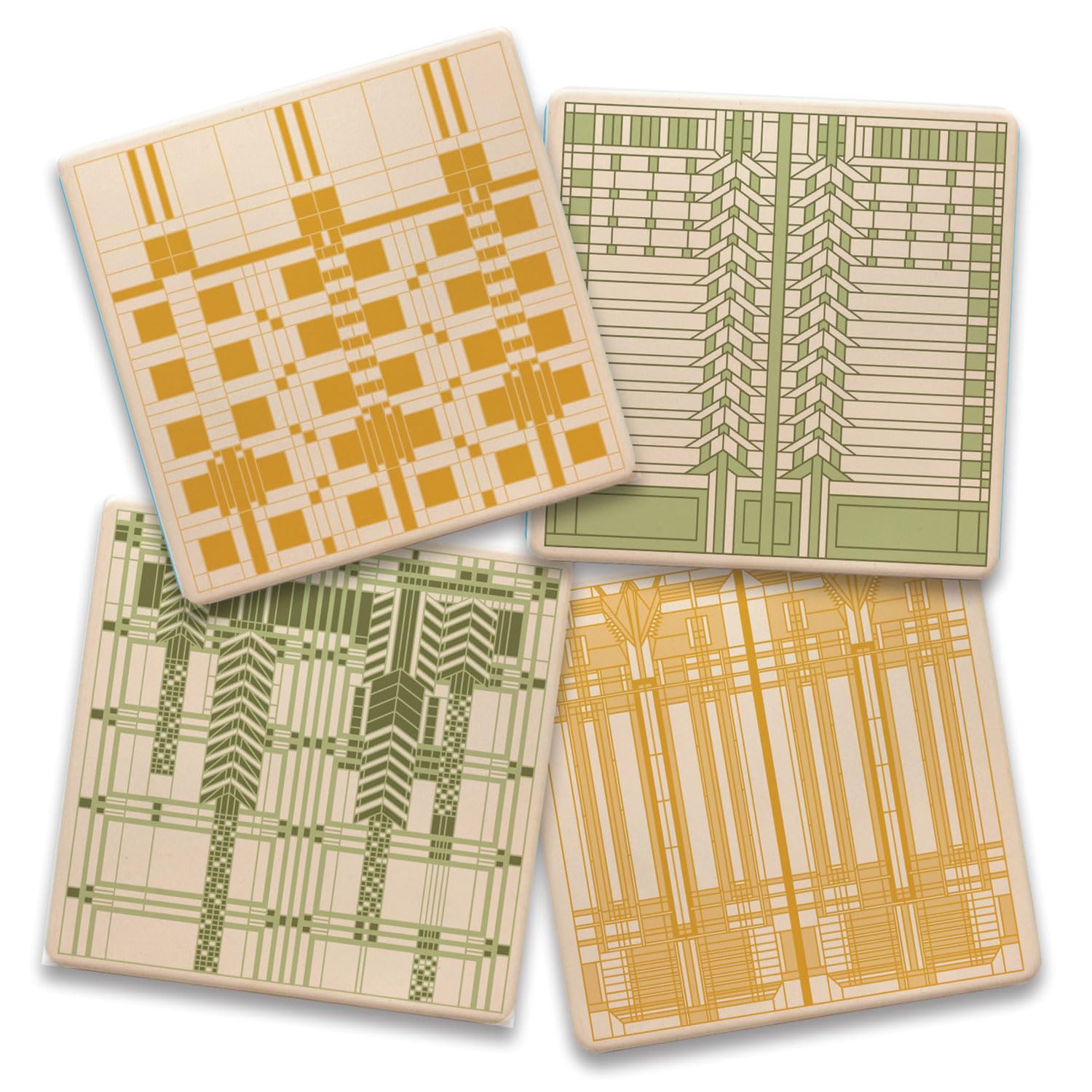 Frank Lloyd Wright 4 Pack Assorted Art Glass Pattern Stone Coasters Manufactured in the USA