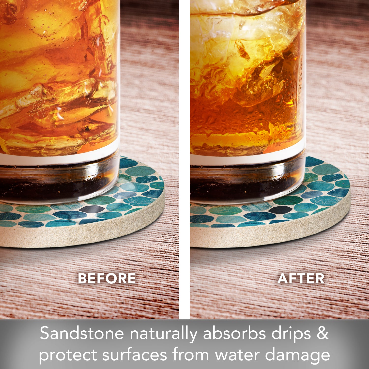 ABSORBENT STONE-Coaster is constructed from natural, absorbent sandstone to absorb excess condensation from beverages. This is a 1 Coaster Pack to allow you to choose from our other coordinating Coaster Designs and complete your own personal set.