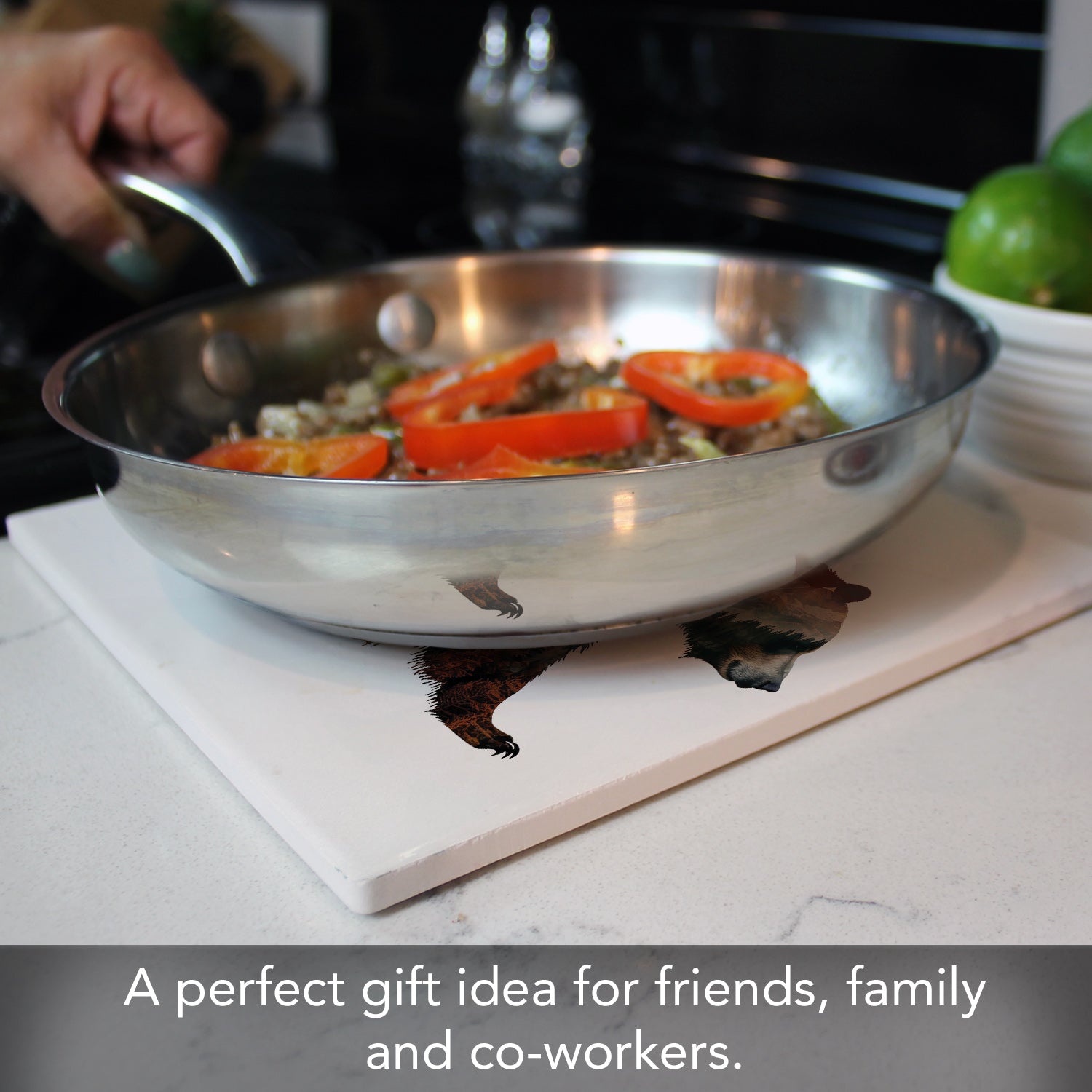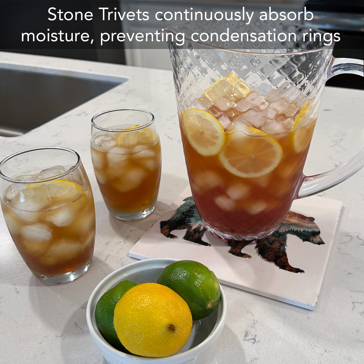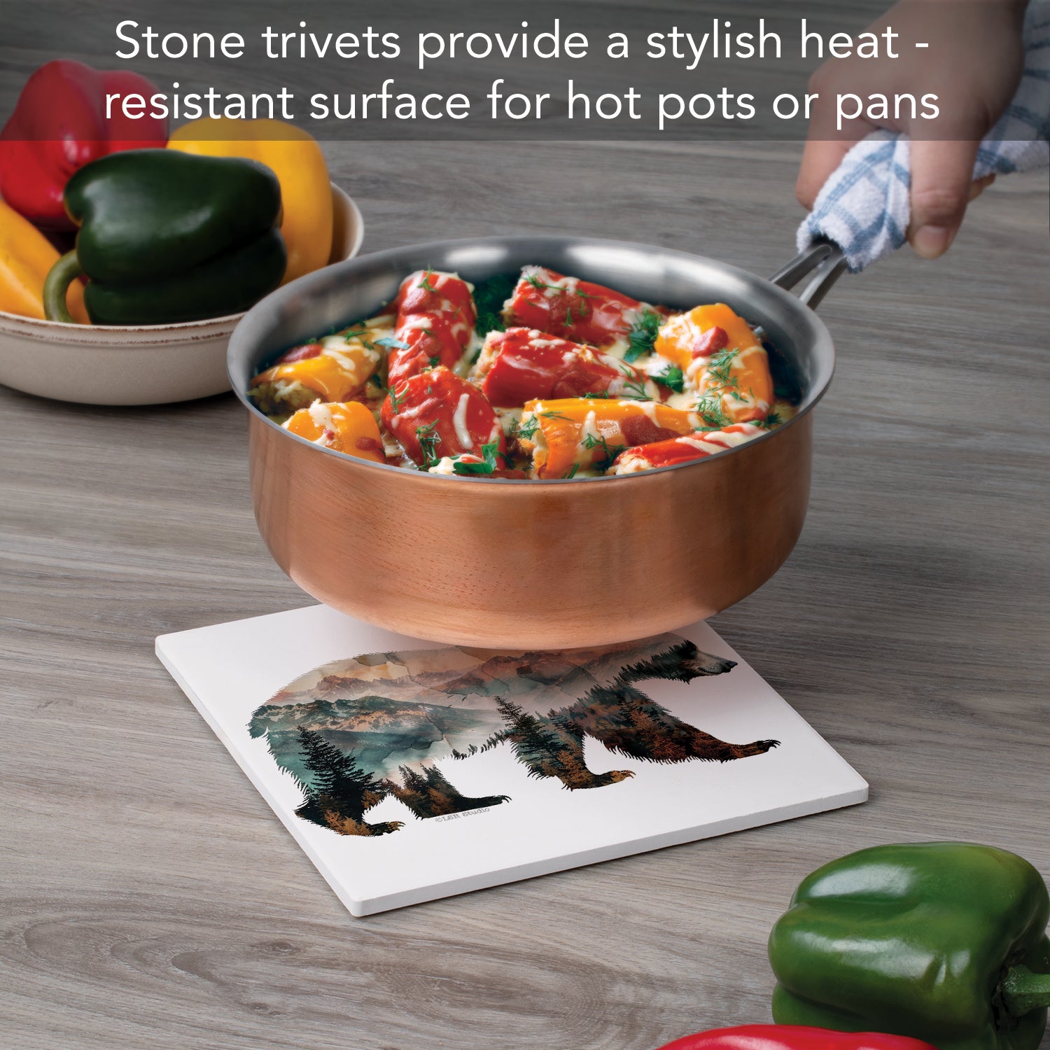 Thirstystone Bear Silhouette Decorative Heat Tolerant Stone Trivet with Non-Skid Cork Backing 8” Square