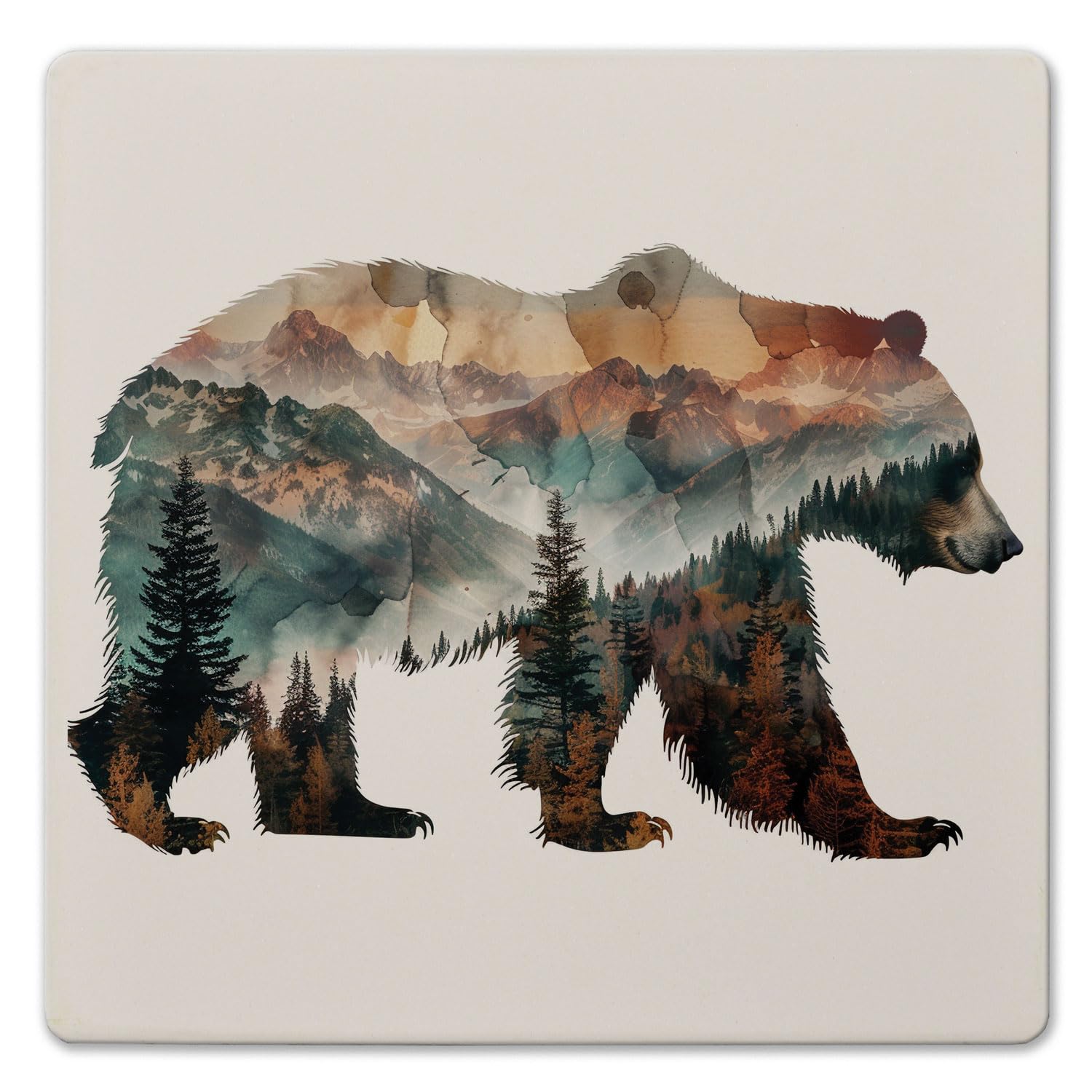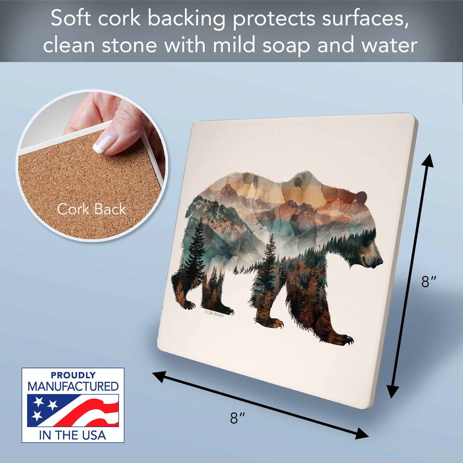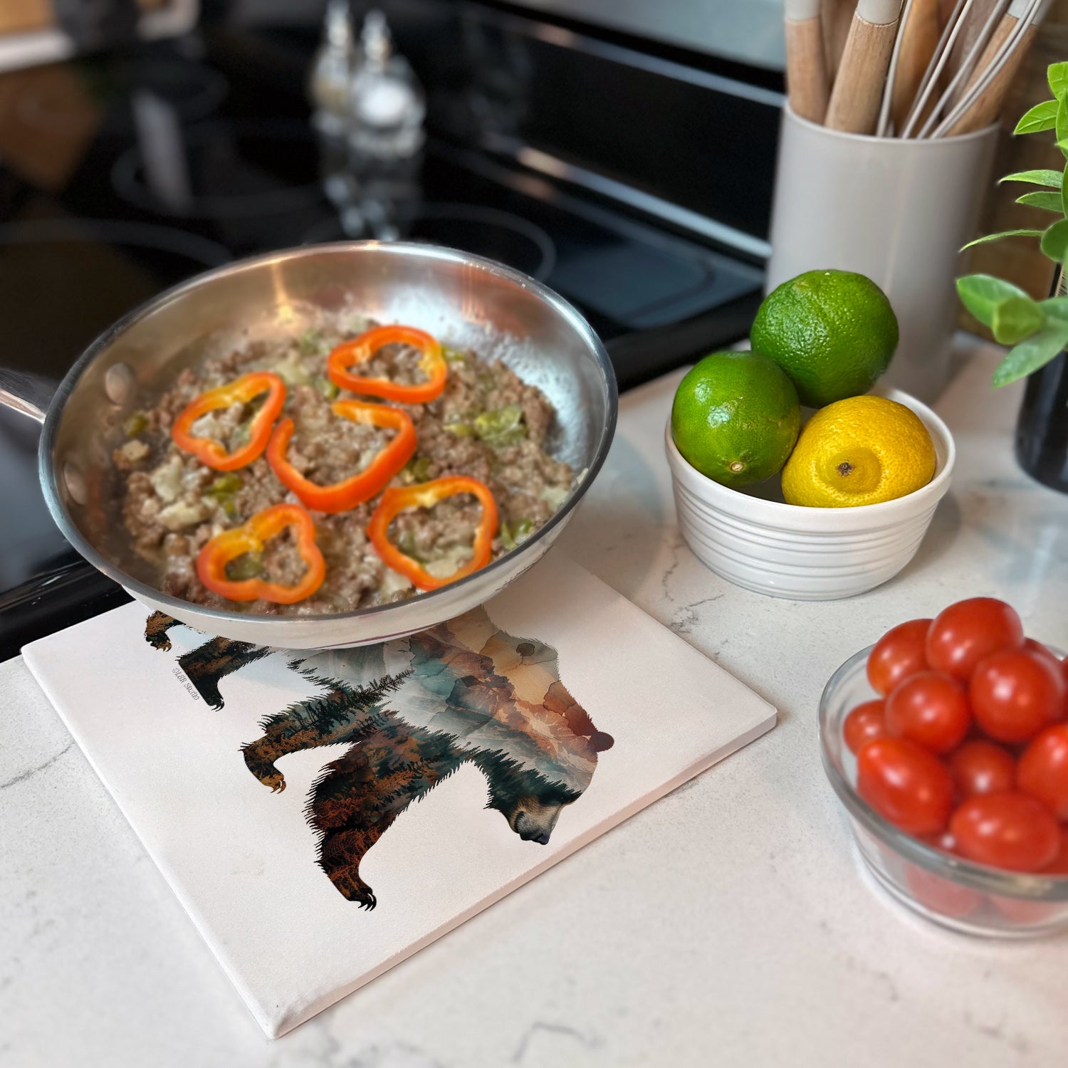 Thirstystone Bear Silhouette Decorative Heat Tolerant Stone Trivet with Non-Skid Cork Backing 8” Square
