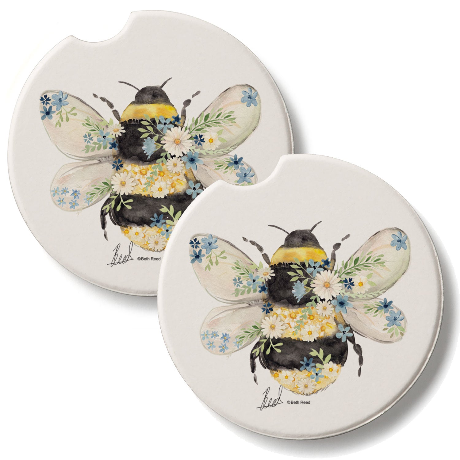 Beautiful Bee 2 Pack Absorbent Stone Car Coasters 2.6" Manufactured in the USA
