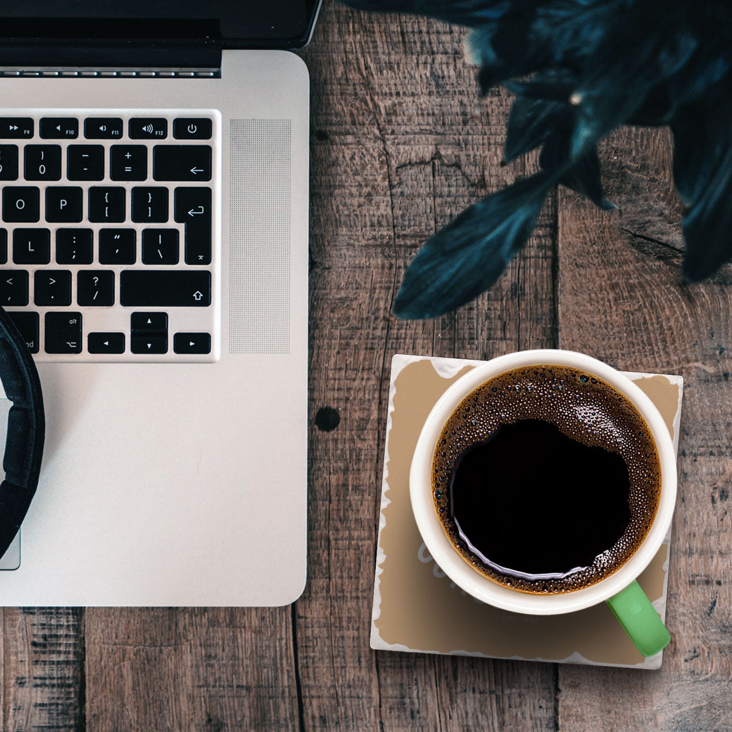 FUNCTIONAL ART-Beautiful artistic design allows the Coaster to remain displayed even when not in use. Each Coaster measures 4” x 4” x .25”. Sized to fit larger Mugs & Glasses.