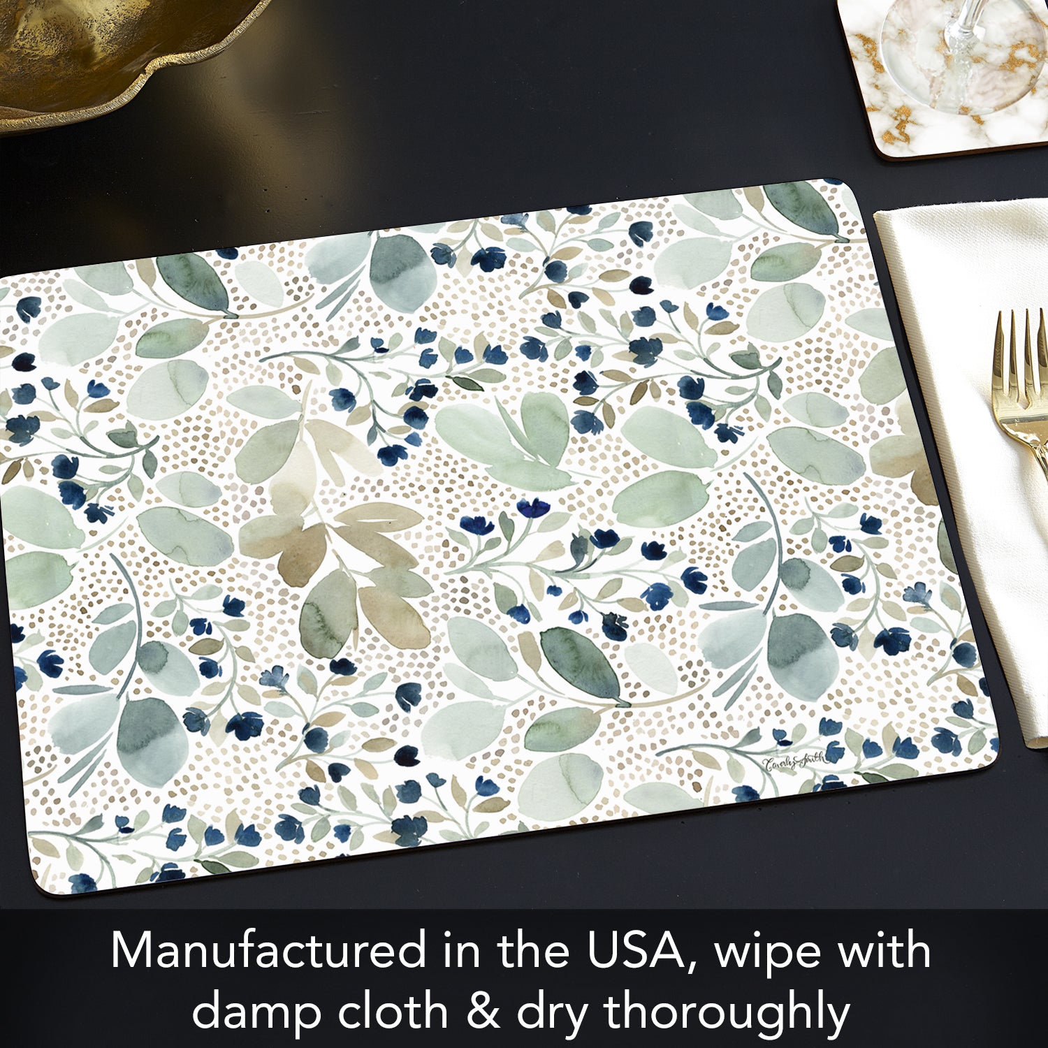 Blooming Soon Premium 4 Pack Boxed Hardboard Tabletop Placemats Manufactured in the USA