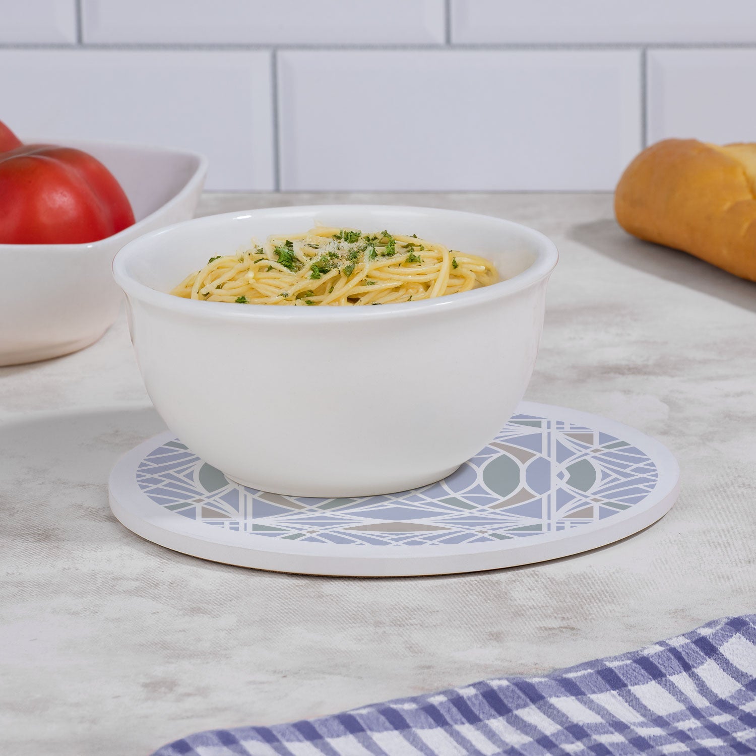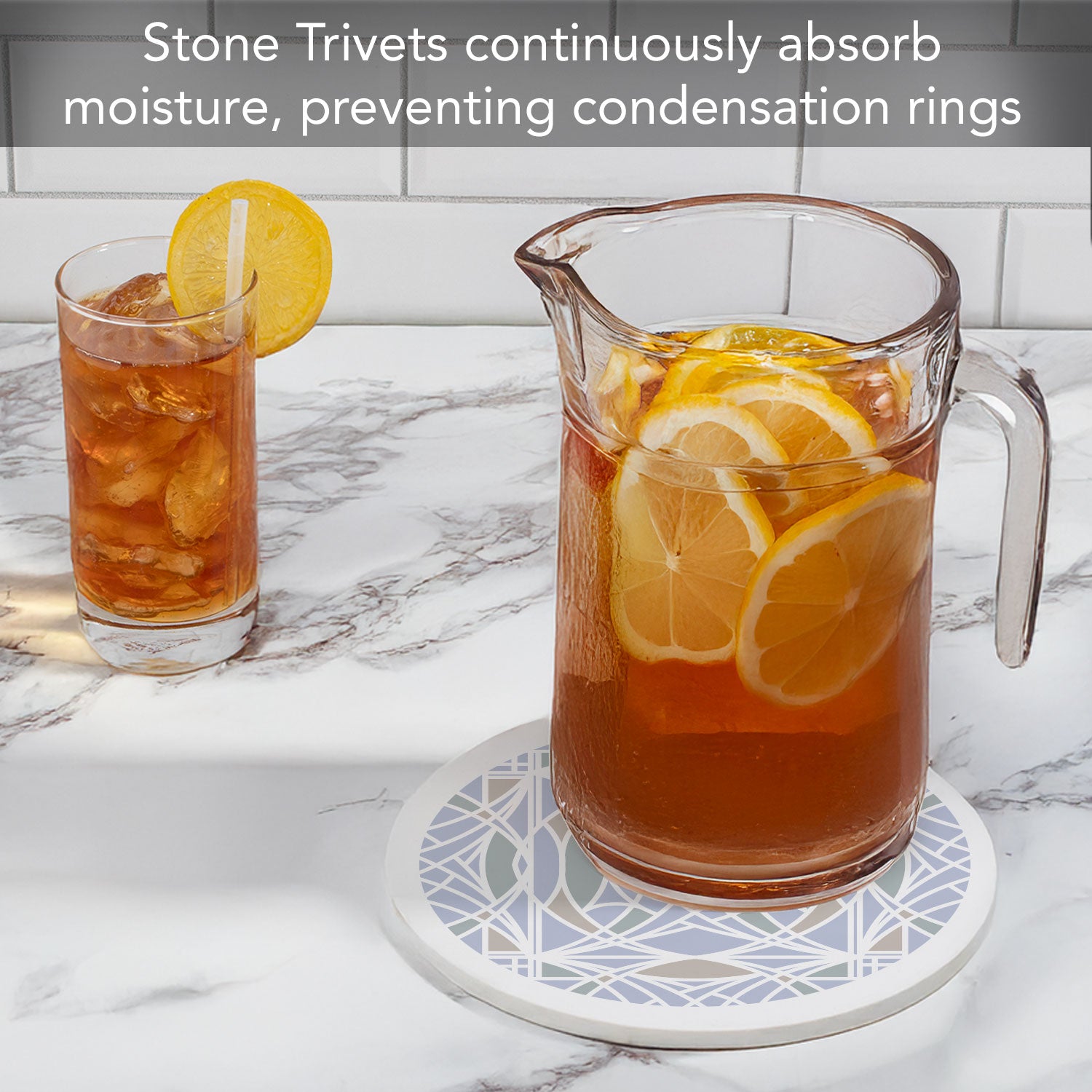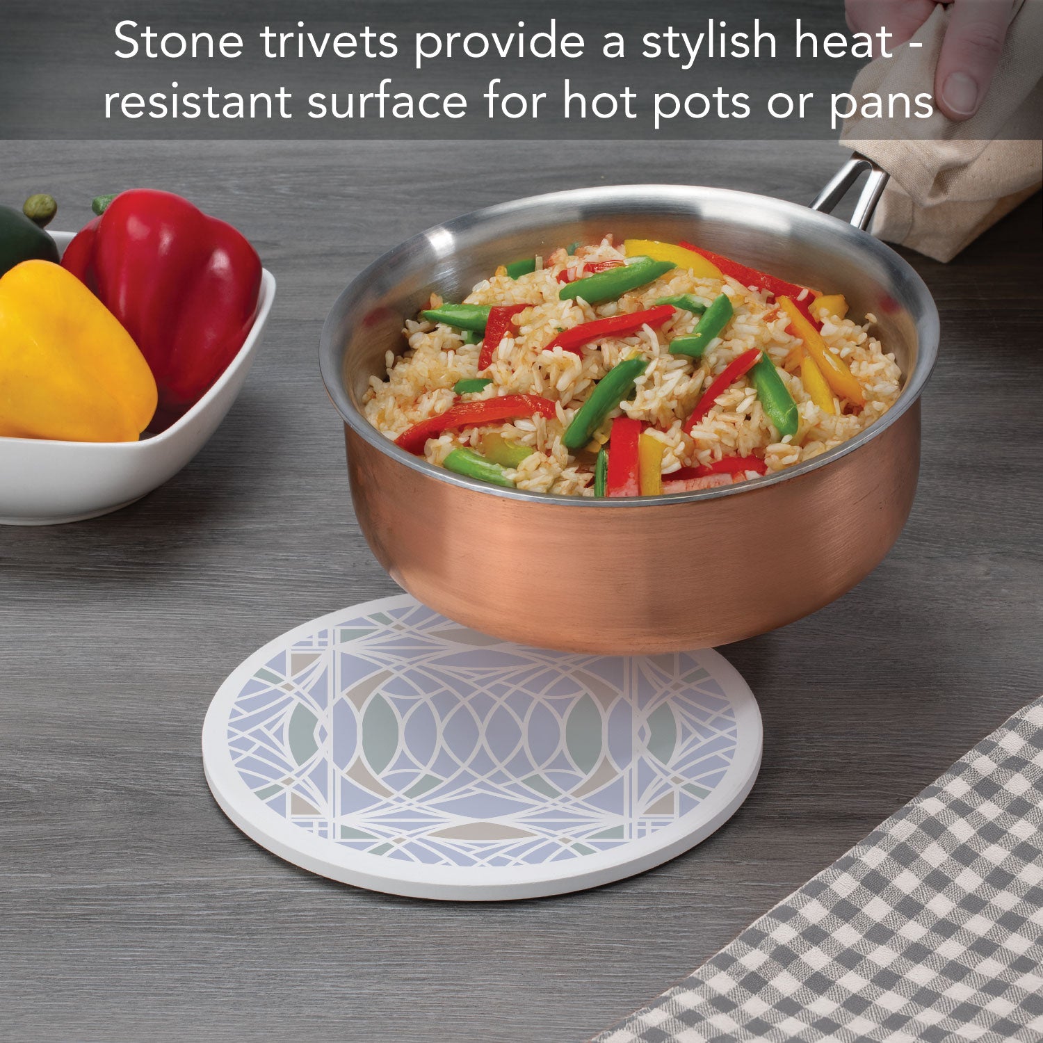 DURABLE-Trivet is made from strong durable ceramic stone. Stone absorbs heat and distributes it throughout the Trivet to keep from damaging your favorite pots and surfaces.