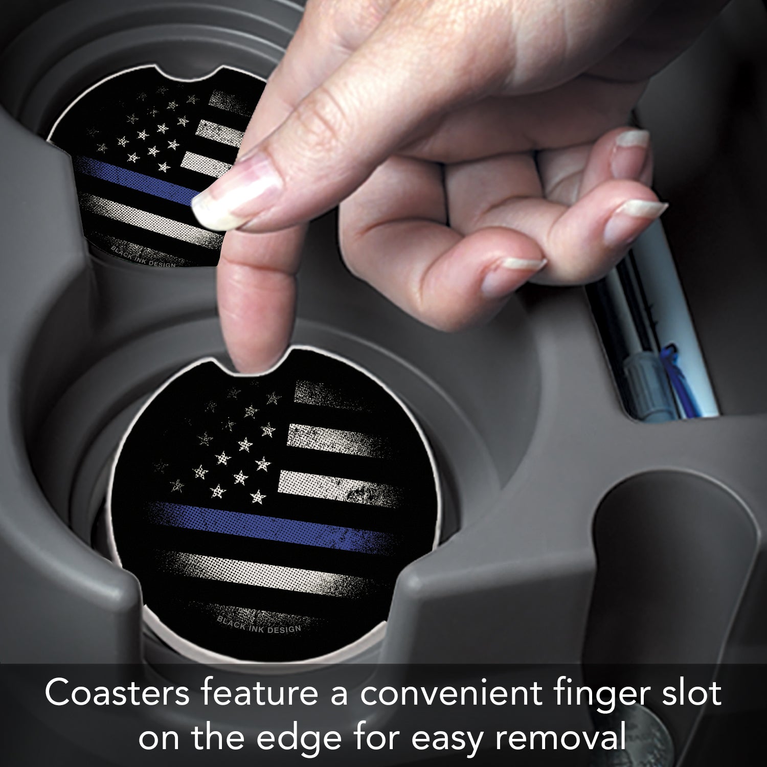 Blue Line 2 Pack Absorbent Stone Car Coasters 2.6" Manufactured in the USA