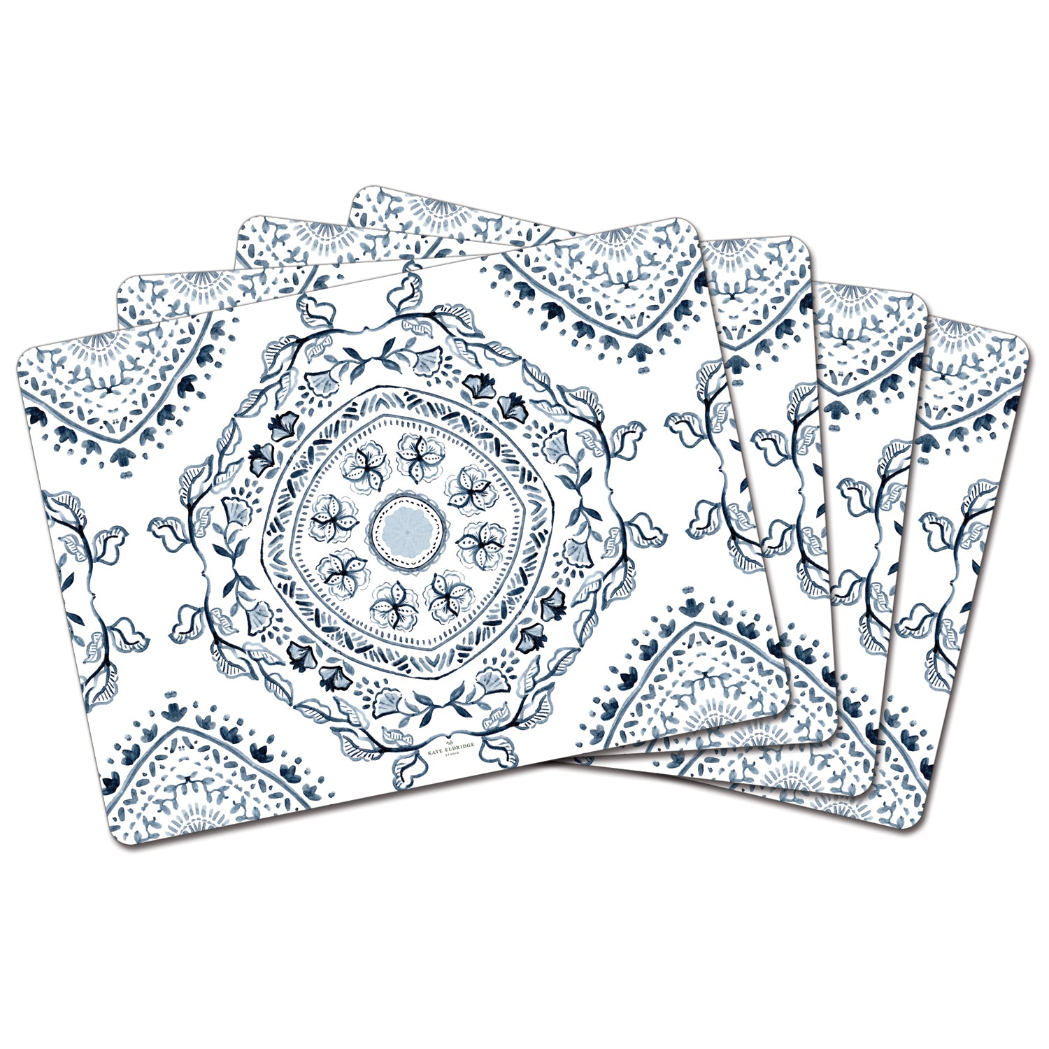 Blue Medallion Design Premium Decorative Hardboard Tabletop Placemats 4 Pack Manufactured in the USA