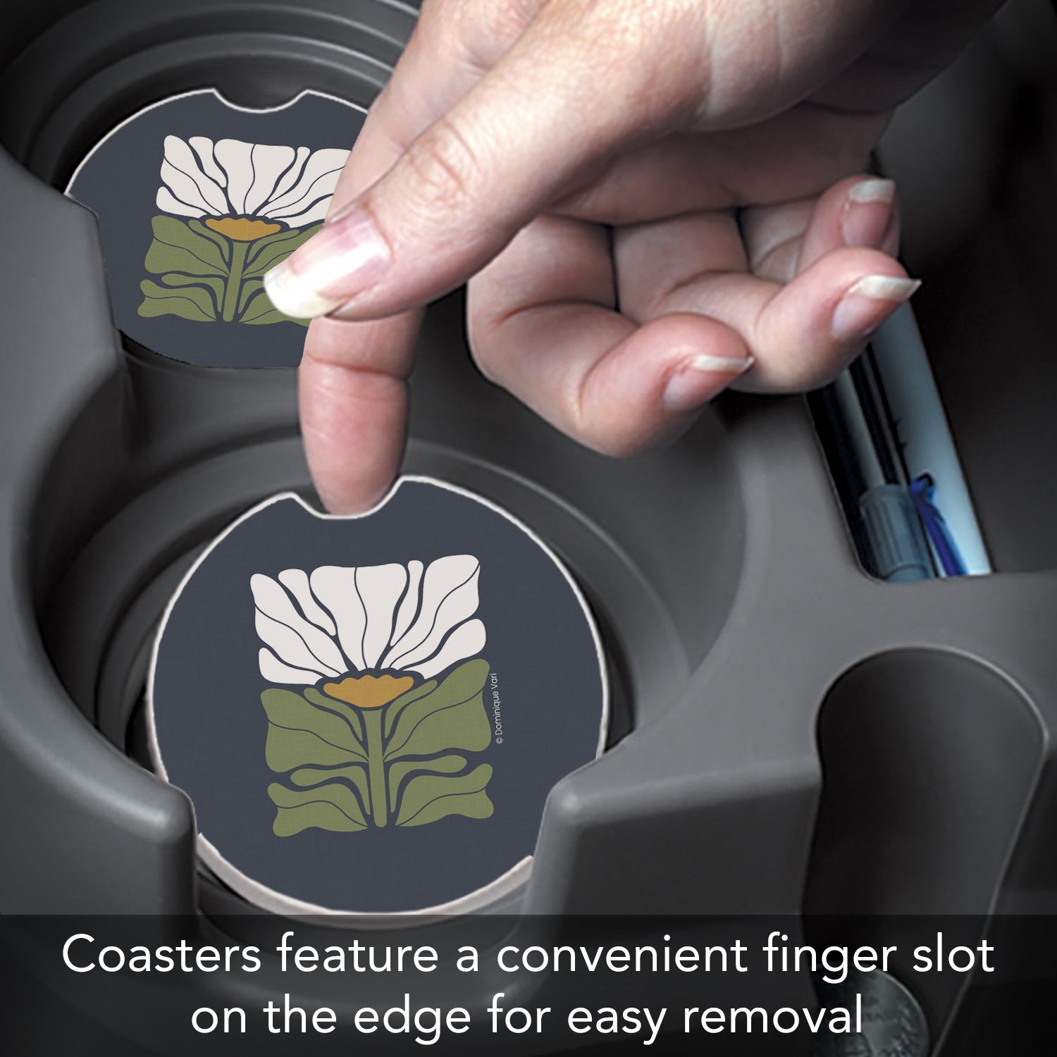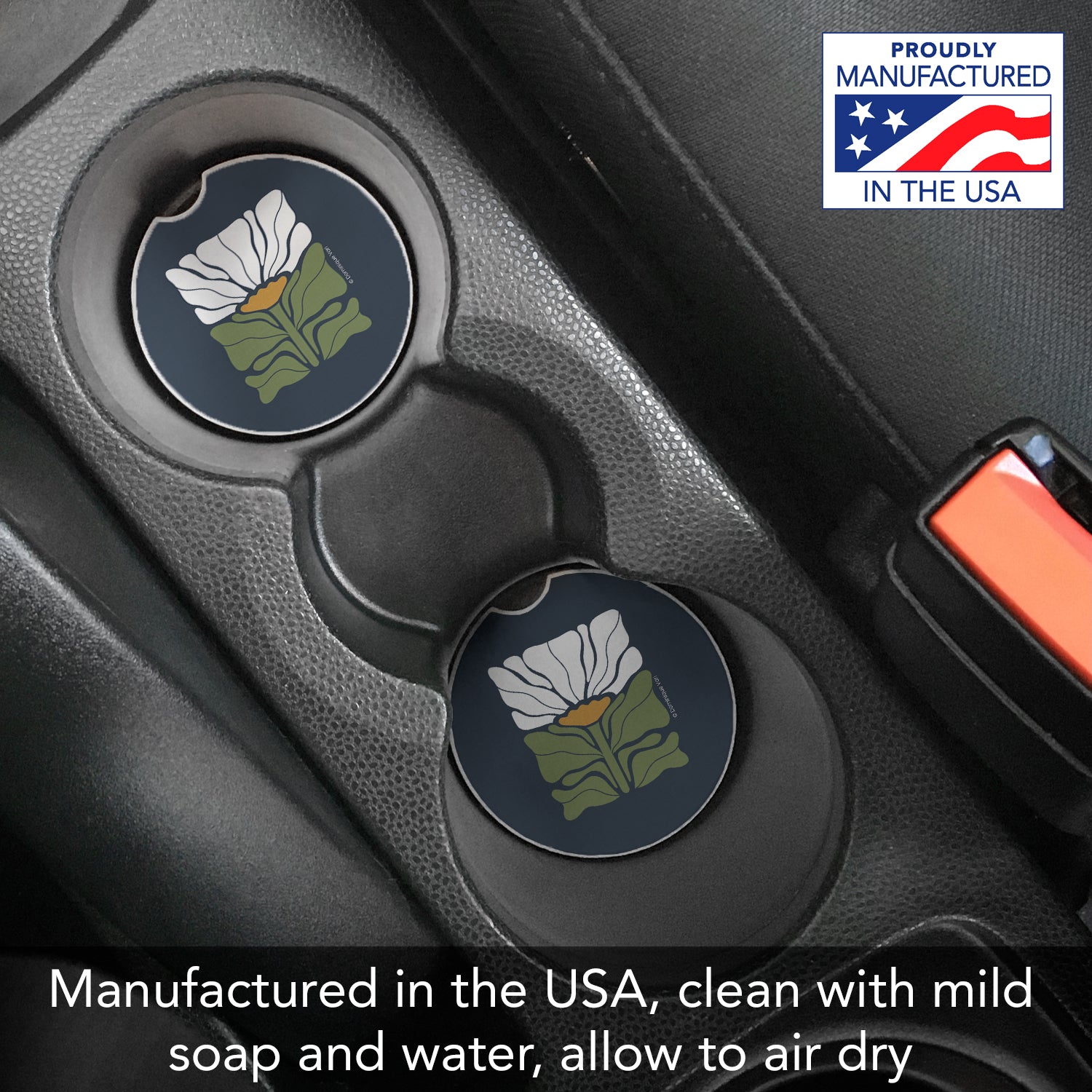 Boho Floral 2 Pack Absorbent Stone Car Coasters 2.6" Manufactured in the USA