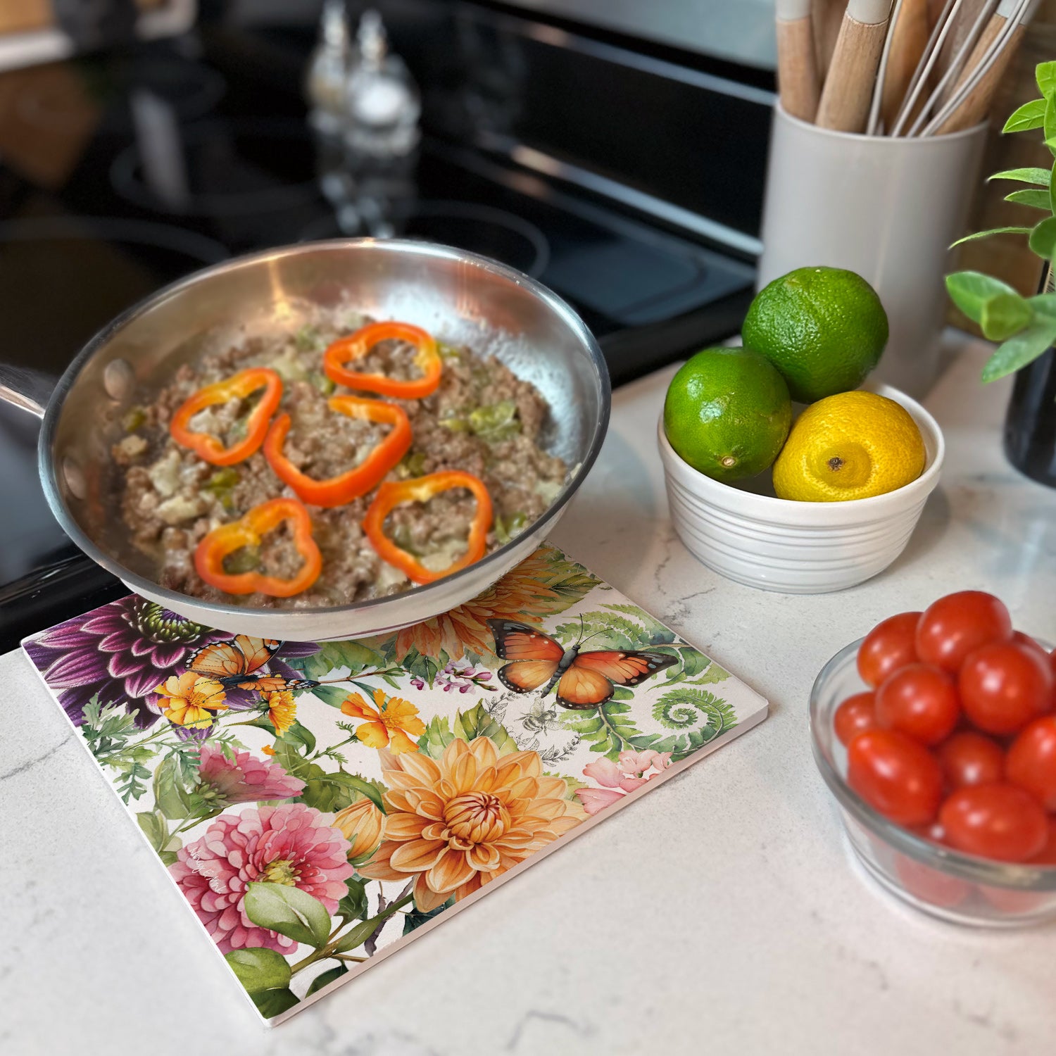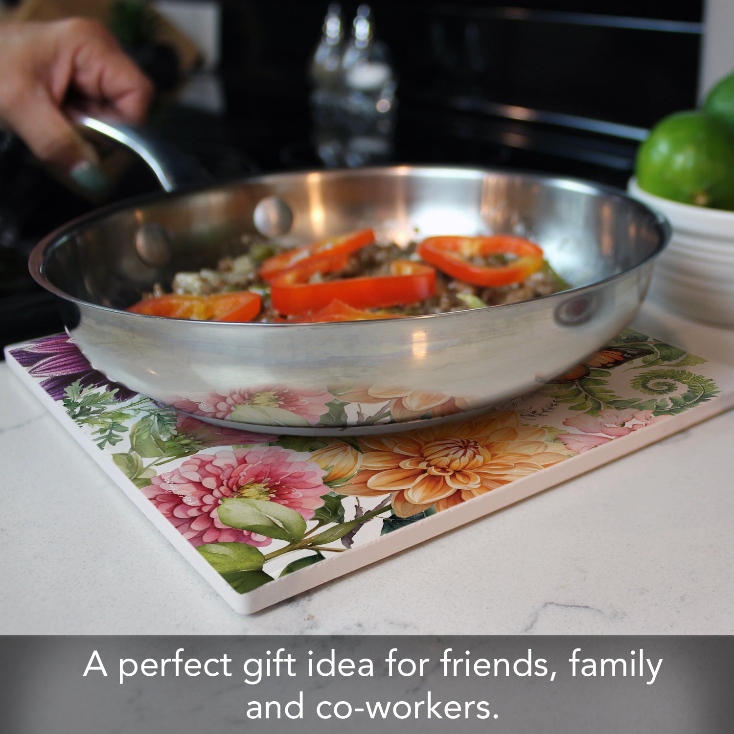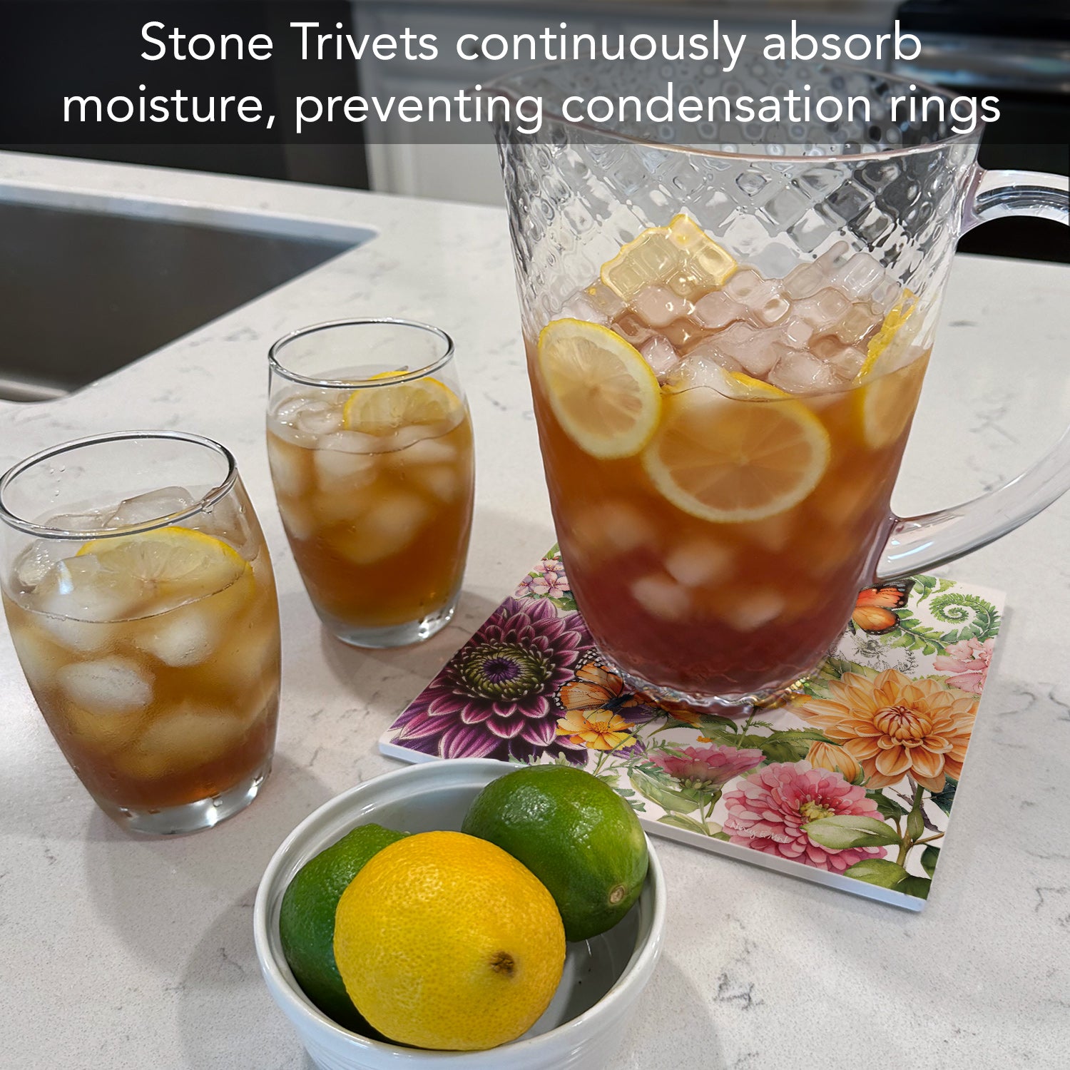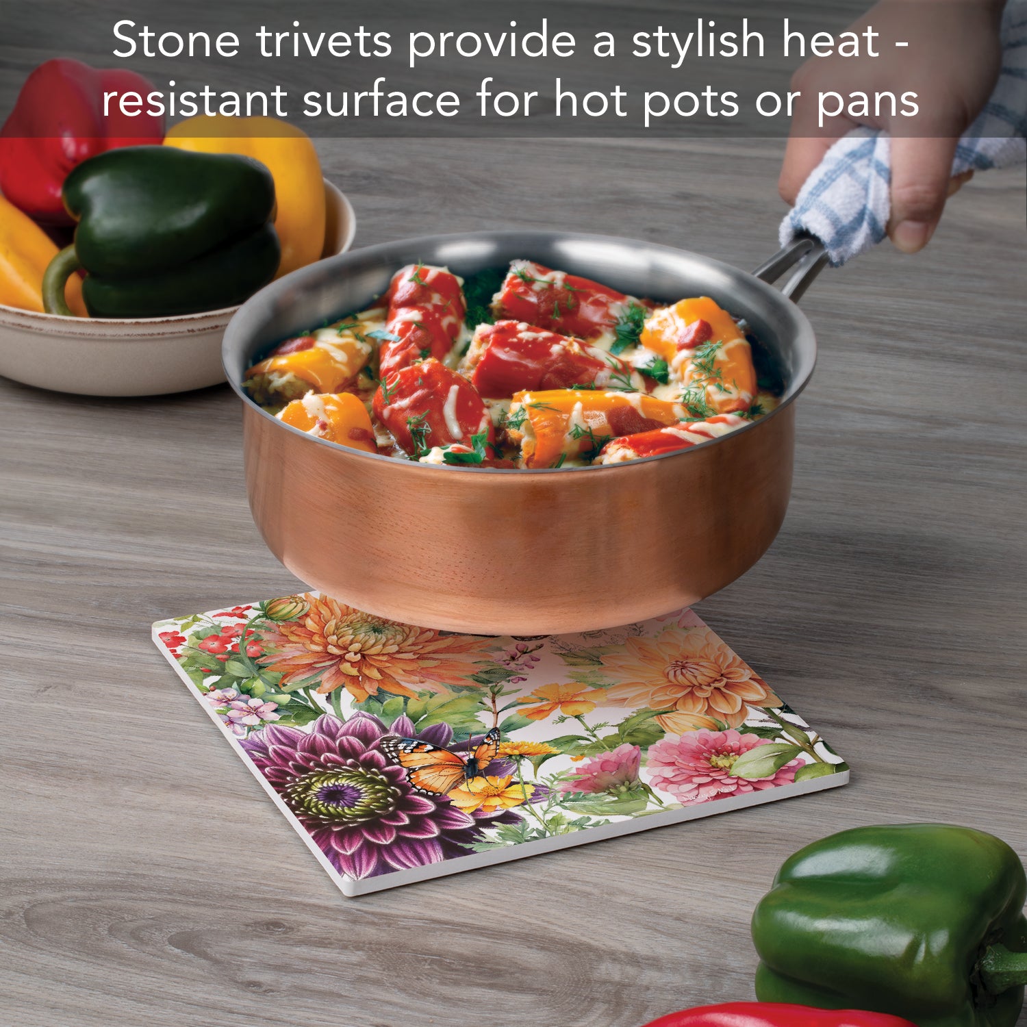 Thirstystone Botanica Decorative Heat Tolerant Stone Trivet with Non-Skid Cork Backing 8” Square