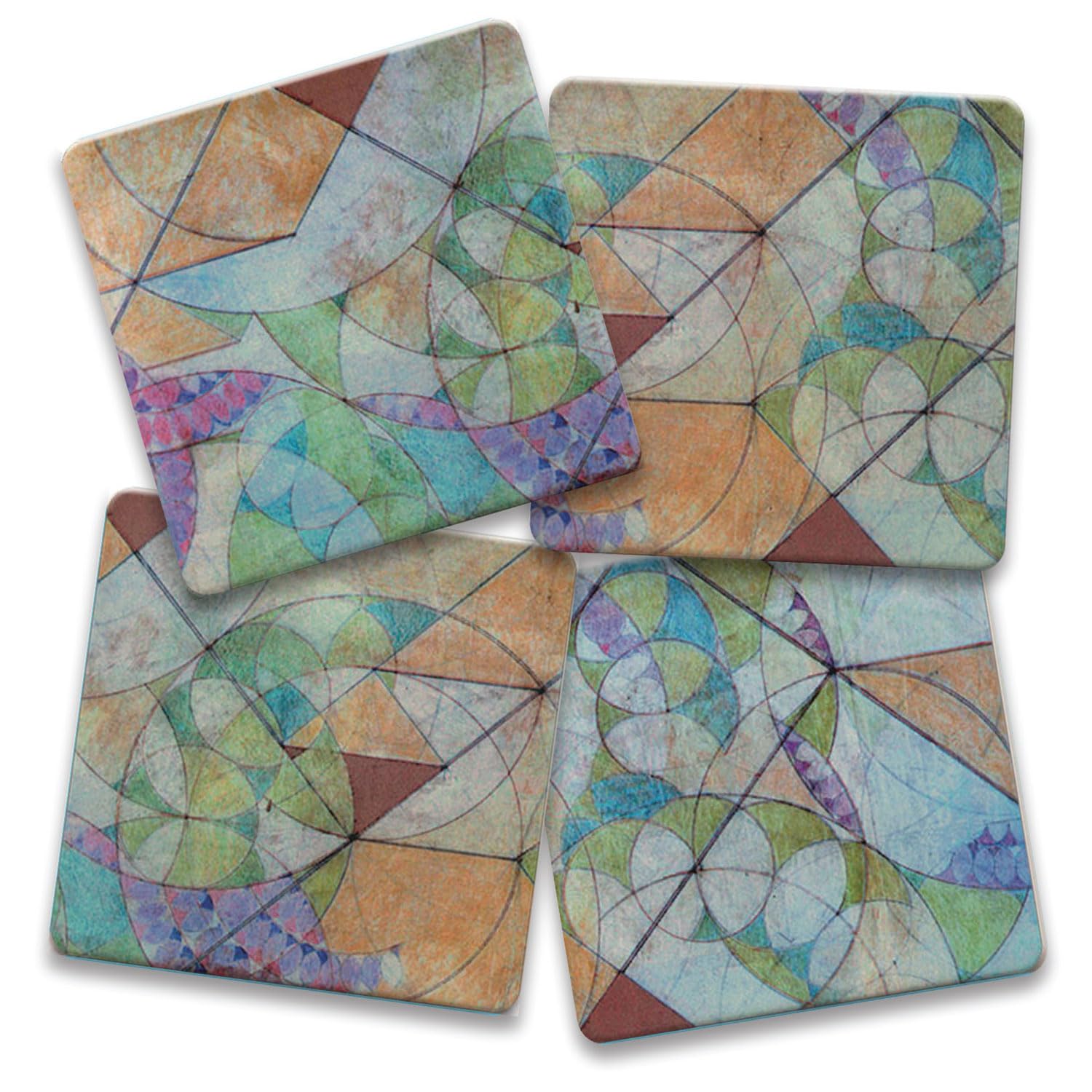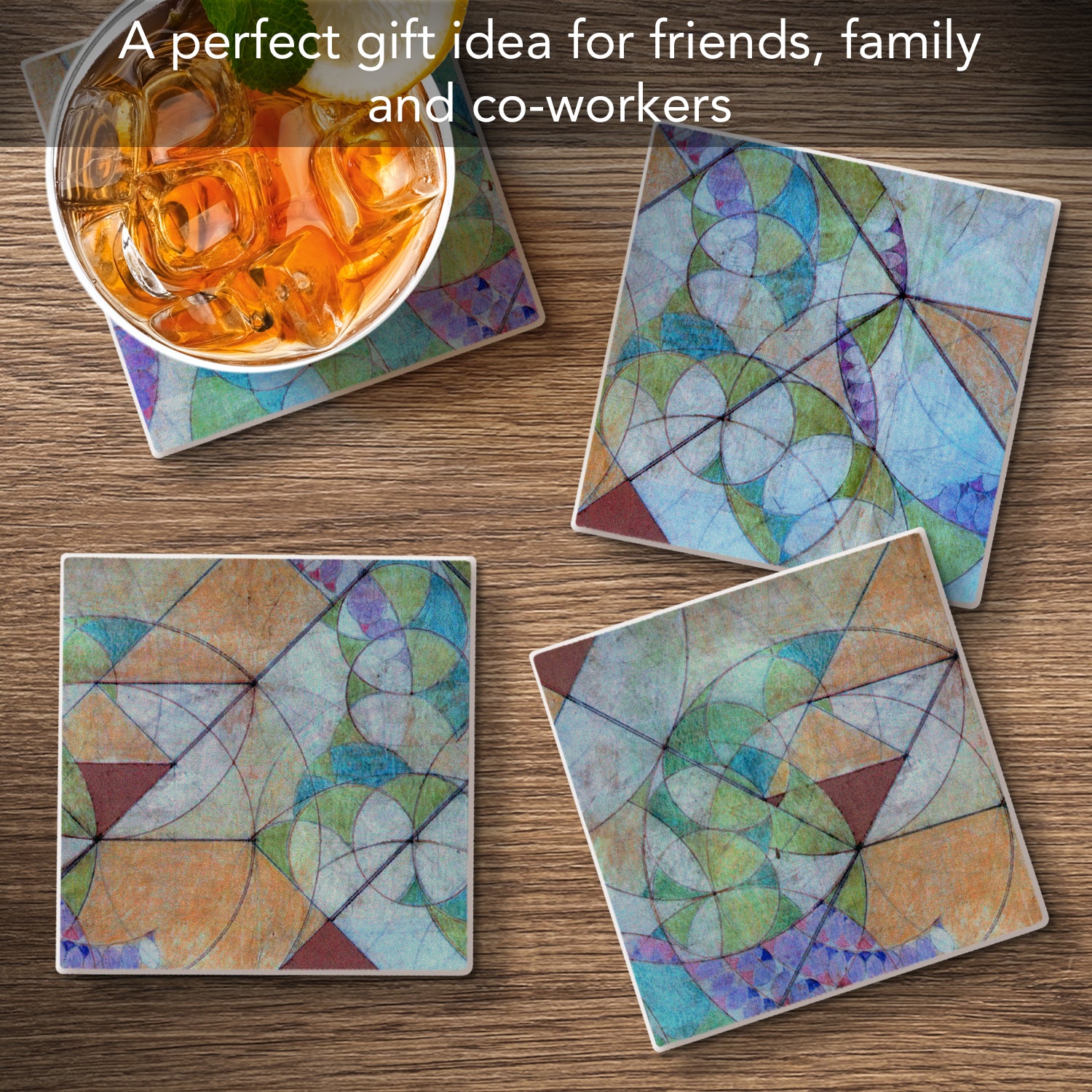 Frank Lloyd Wright 4 Pack Assorted Bougainvillea Absorbent Stone Coasters Manufactured in the USA