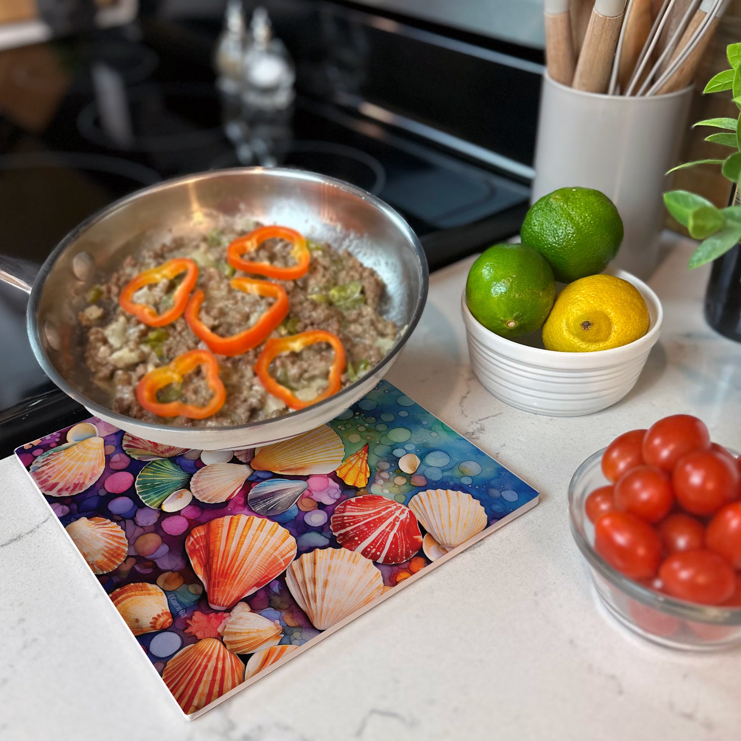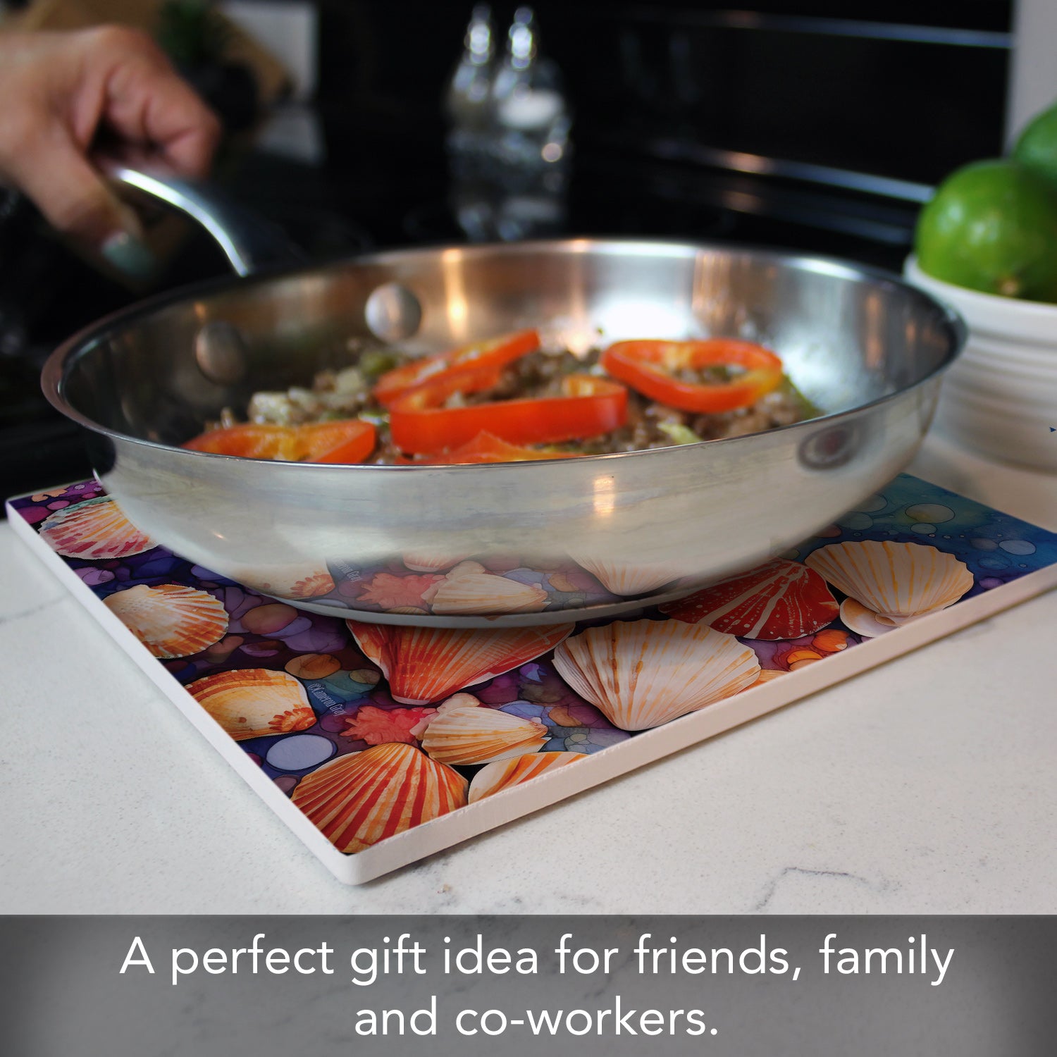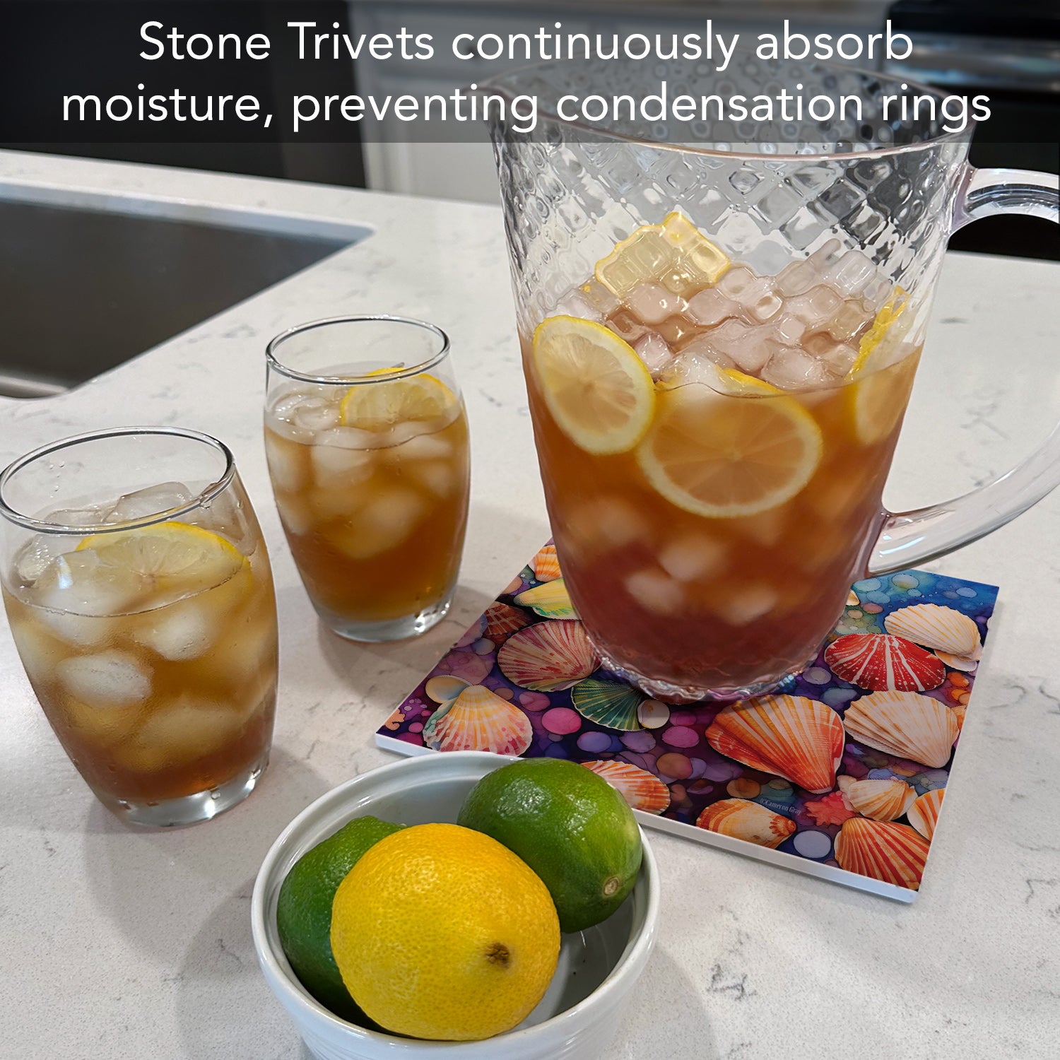 Thirstystone Bright Shells Decorative Heat Tolerant Stone Trivet with Non-Skid Cork Backing 8” Square