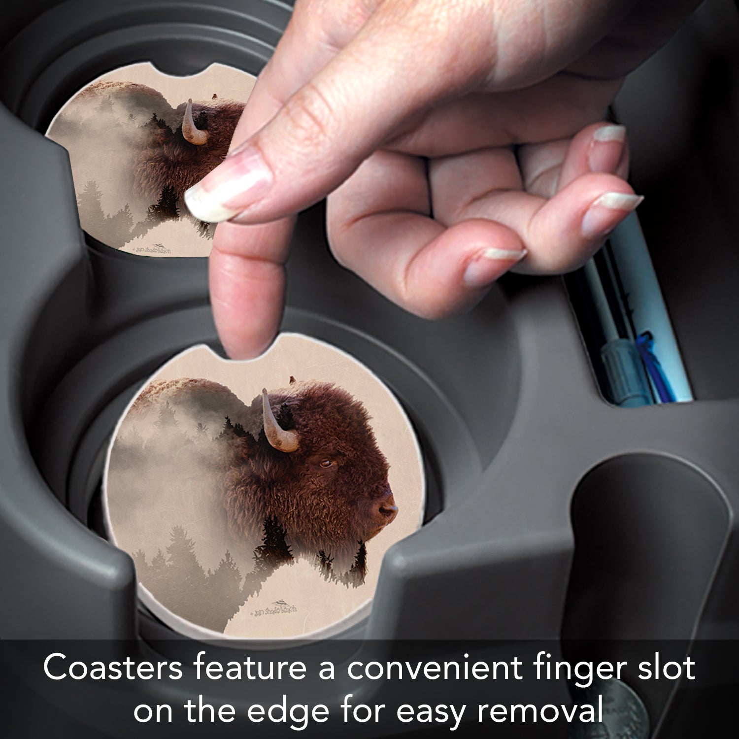 Buffalo Scene 2 Pack Absorbent Stone Car Coasters 2.6" Manufactured in the USA