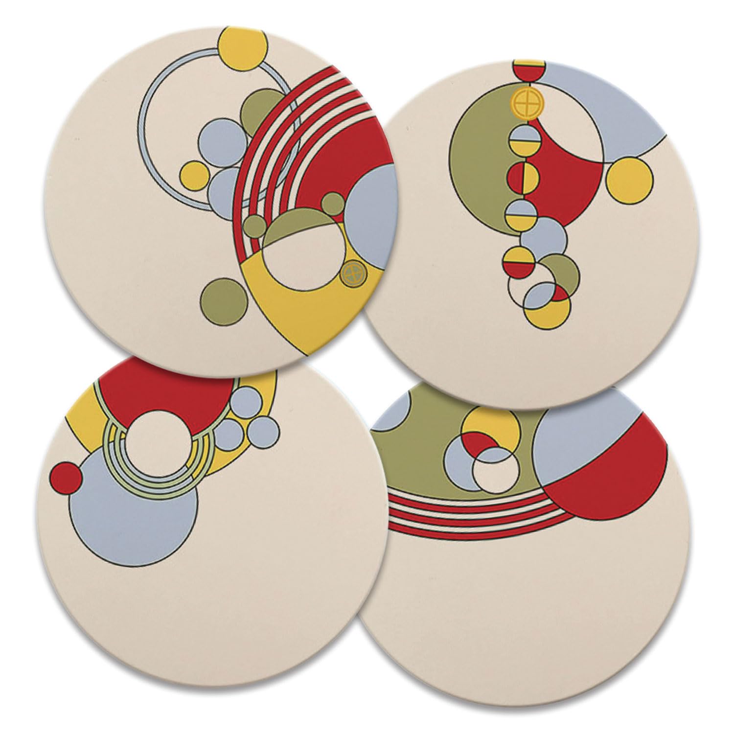 Frank Lloyd Wright 4 Pack Assorted Cabaret Dinnerware Designs Round Absorbent Stone Coasters Manufactured in the USA