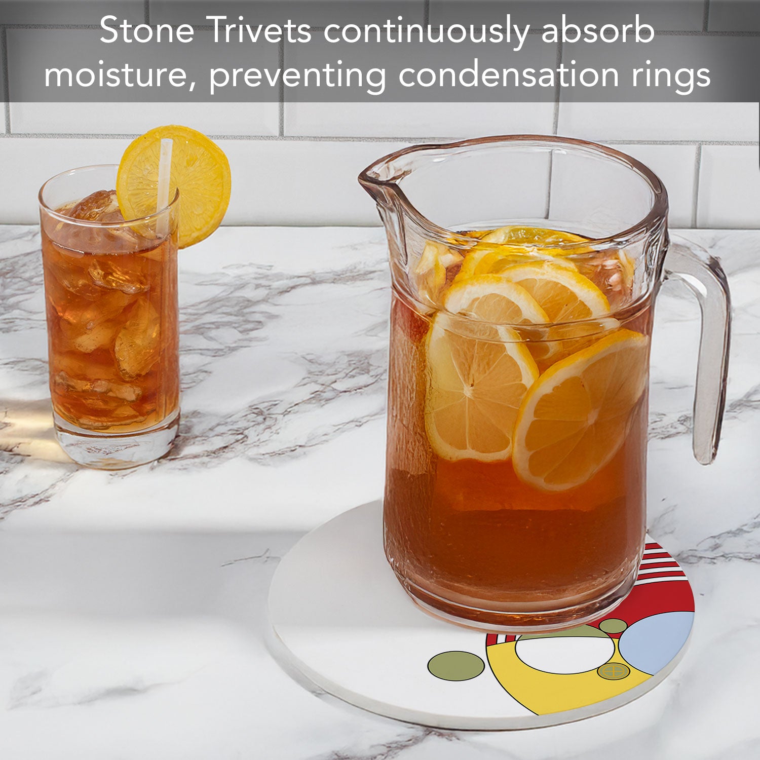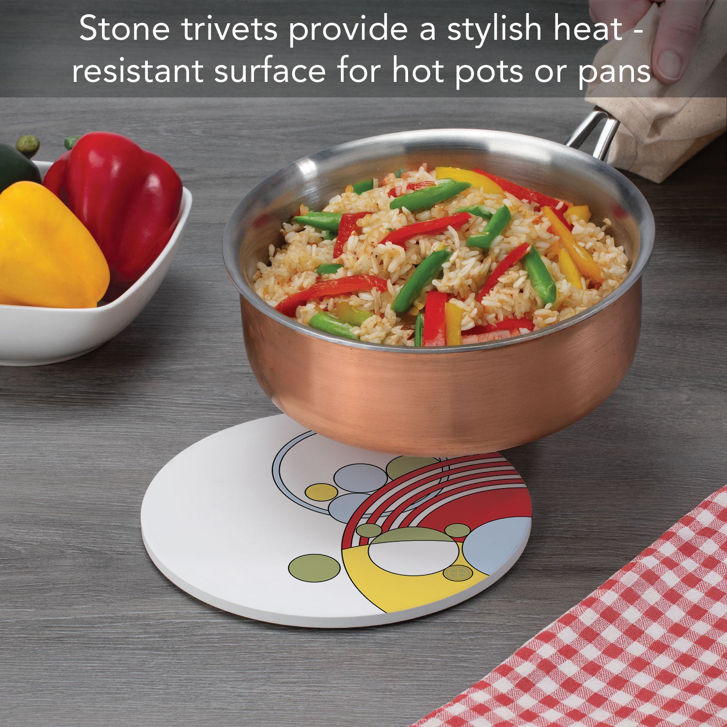 DURABLE-Trivet is made from strong durable ceramic stone. Stone absorbs heat and distributes it throughout the Trivet to keep from damaging your favorite pots and surfaces.