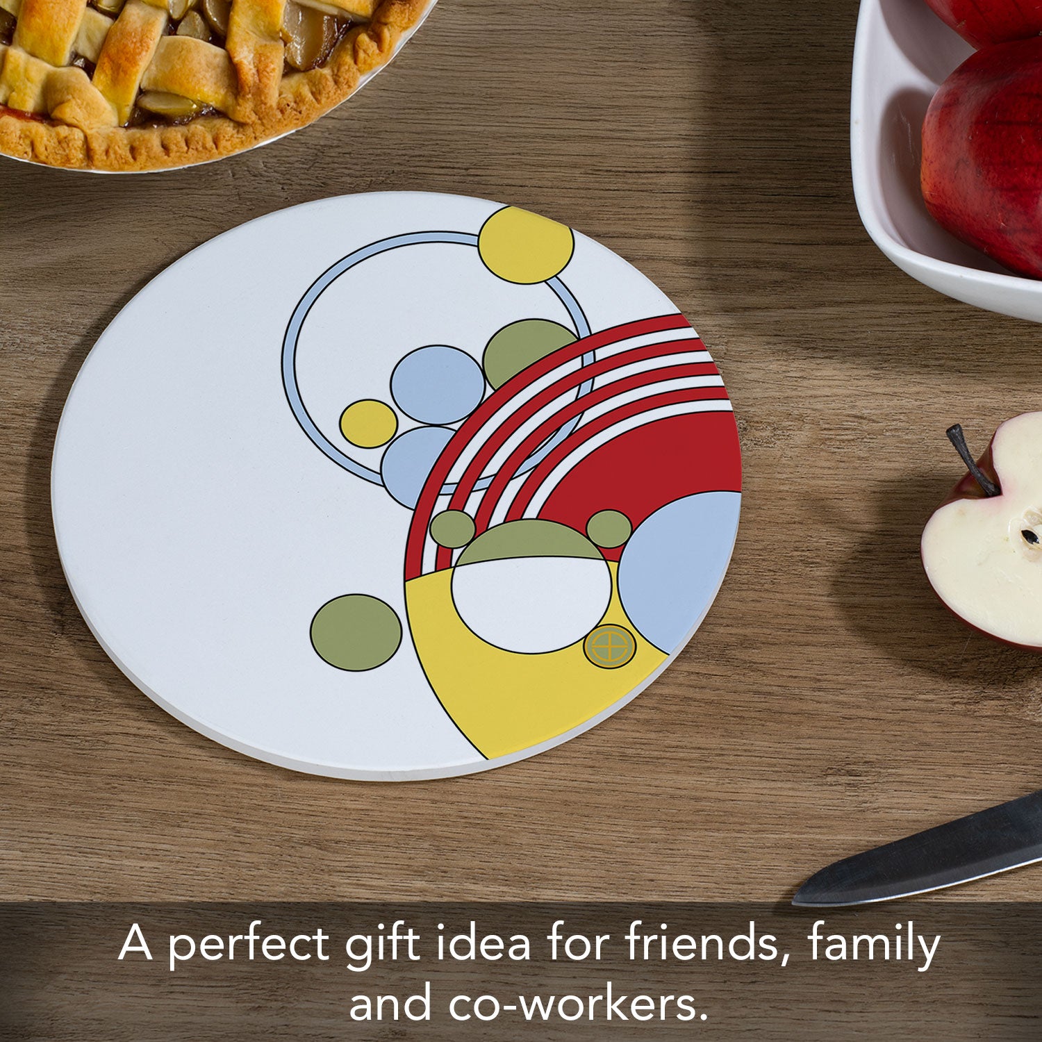 MEASUREENTS-Each Trivet measures 8" x 8" x 0.25" and is round in shape. Trivet is sized to fit most saucepans and bakeware.