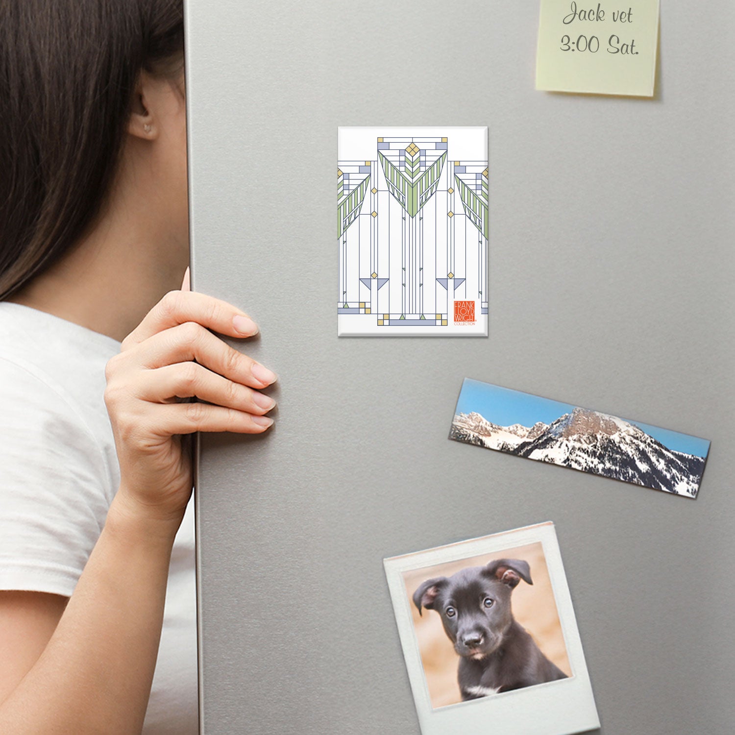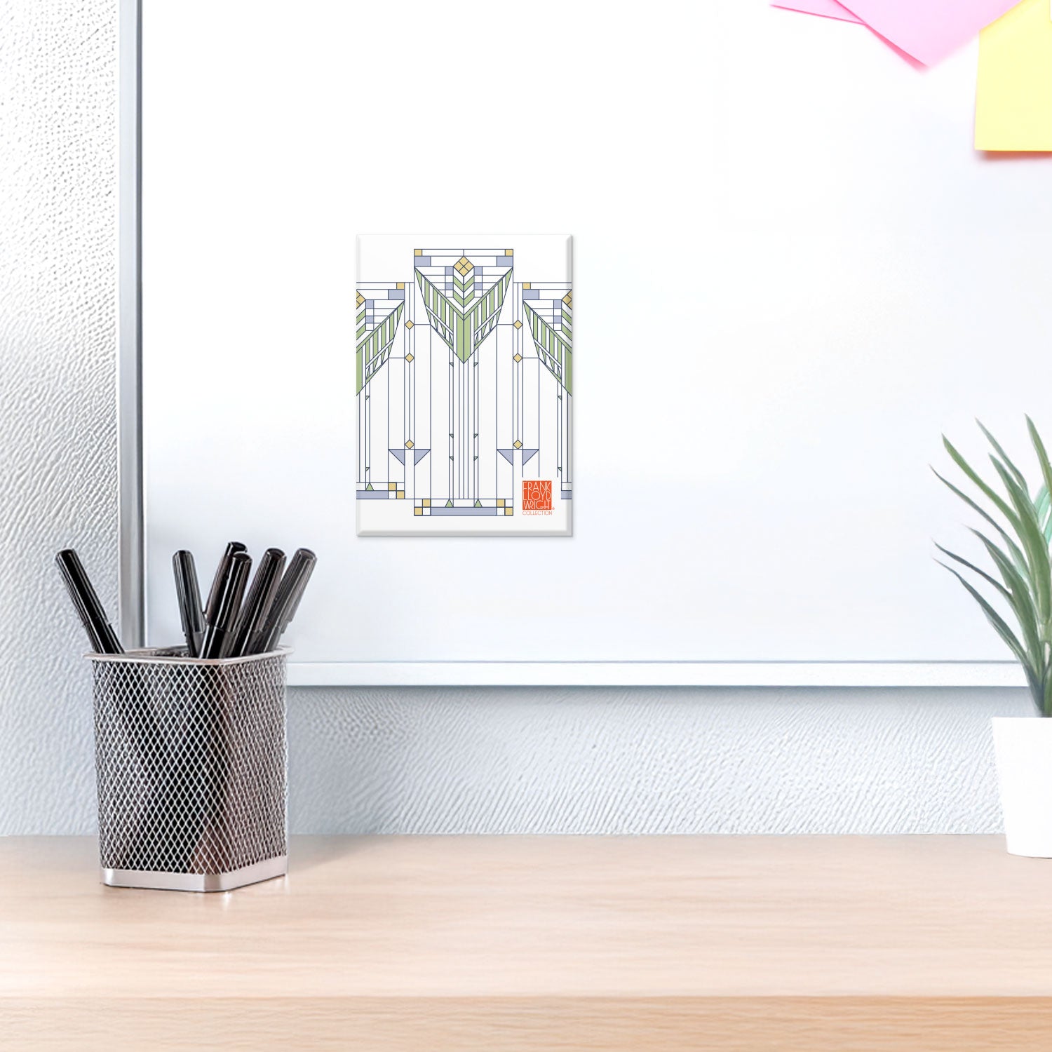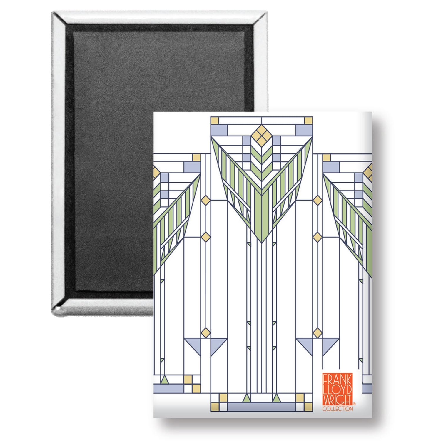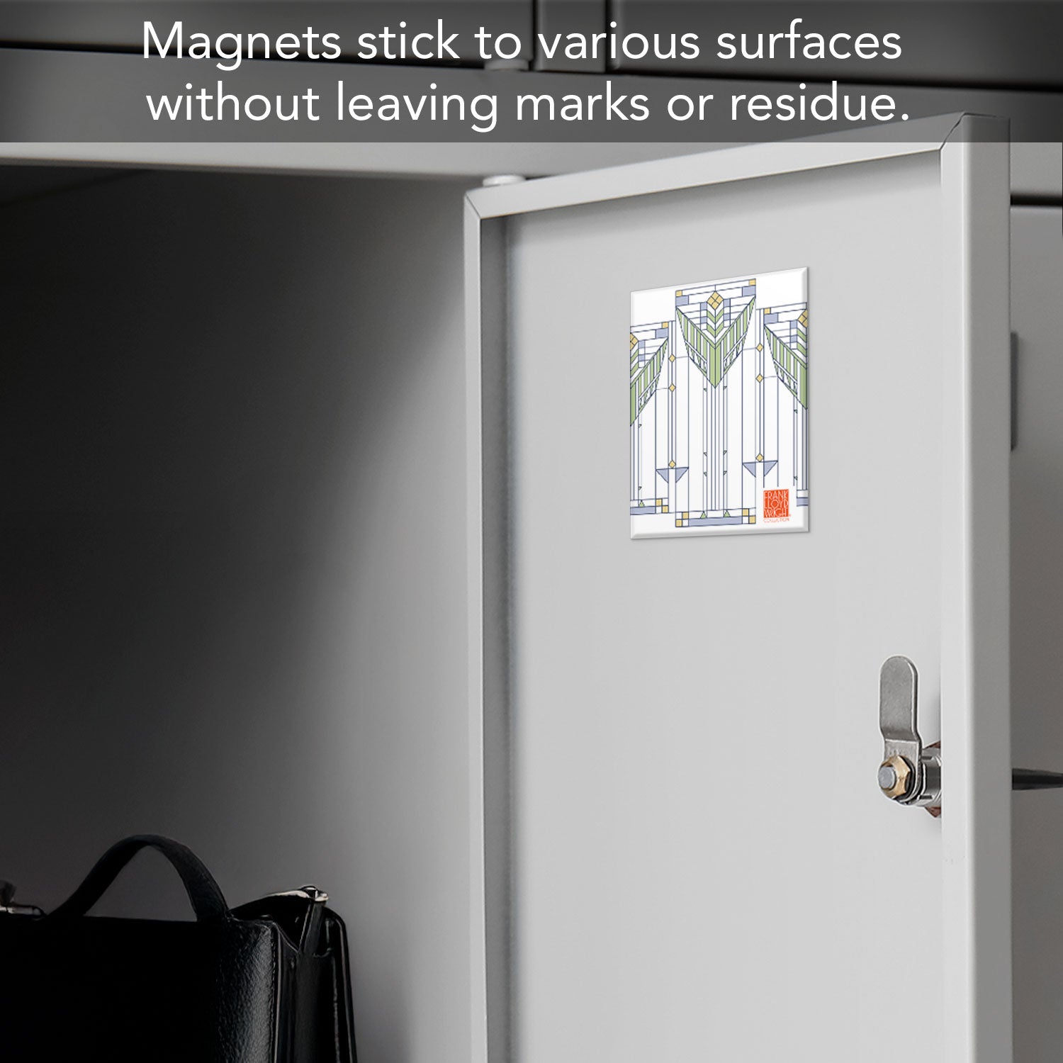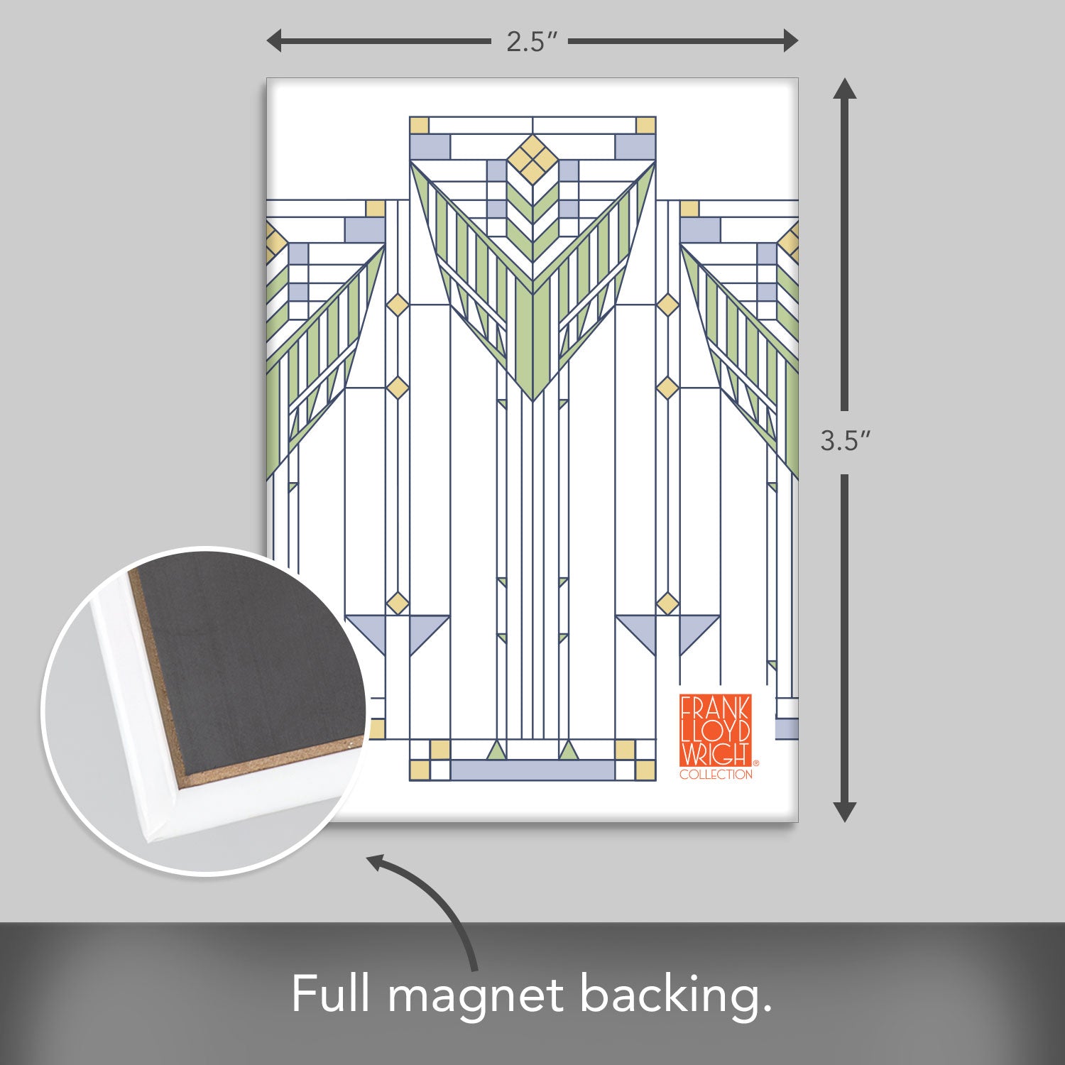 DECORATIVE MAGNET- Magnets are decorated with vibrant and bold colors. Glossy finish adds an aesthetic appeal. Each Magnet features one of Frank Lloyd Wright’s architectural designs.