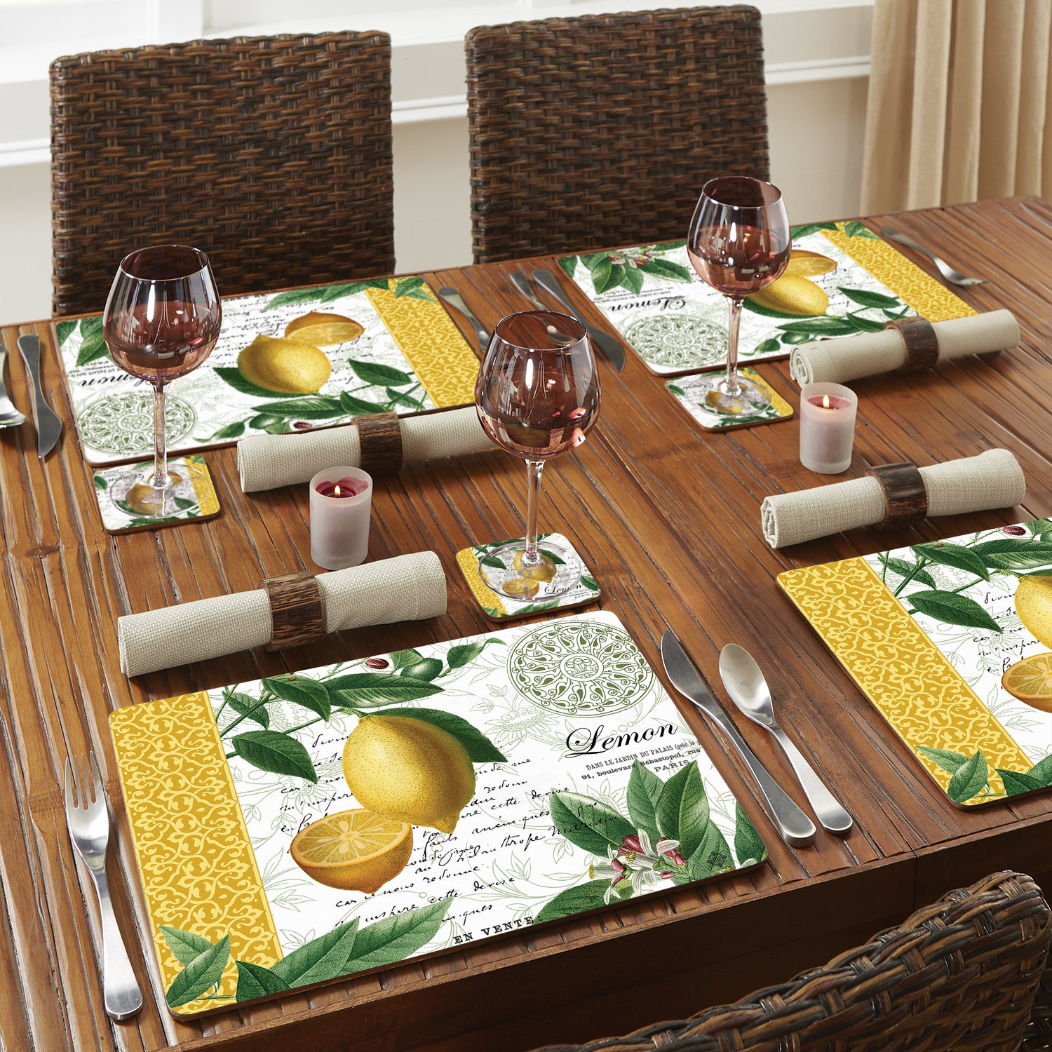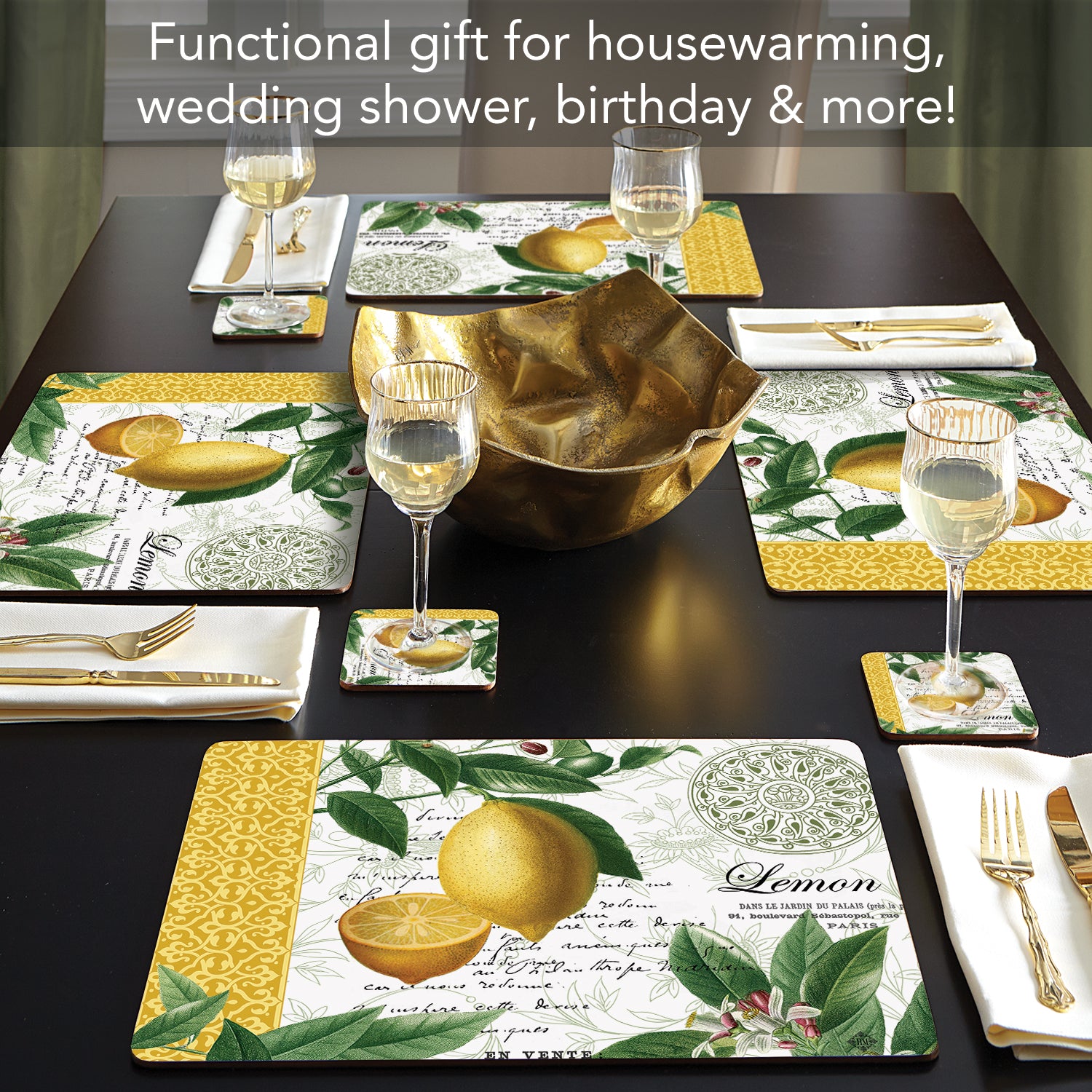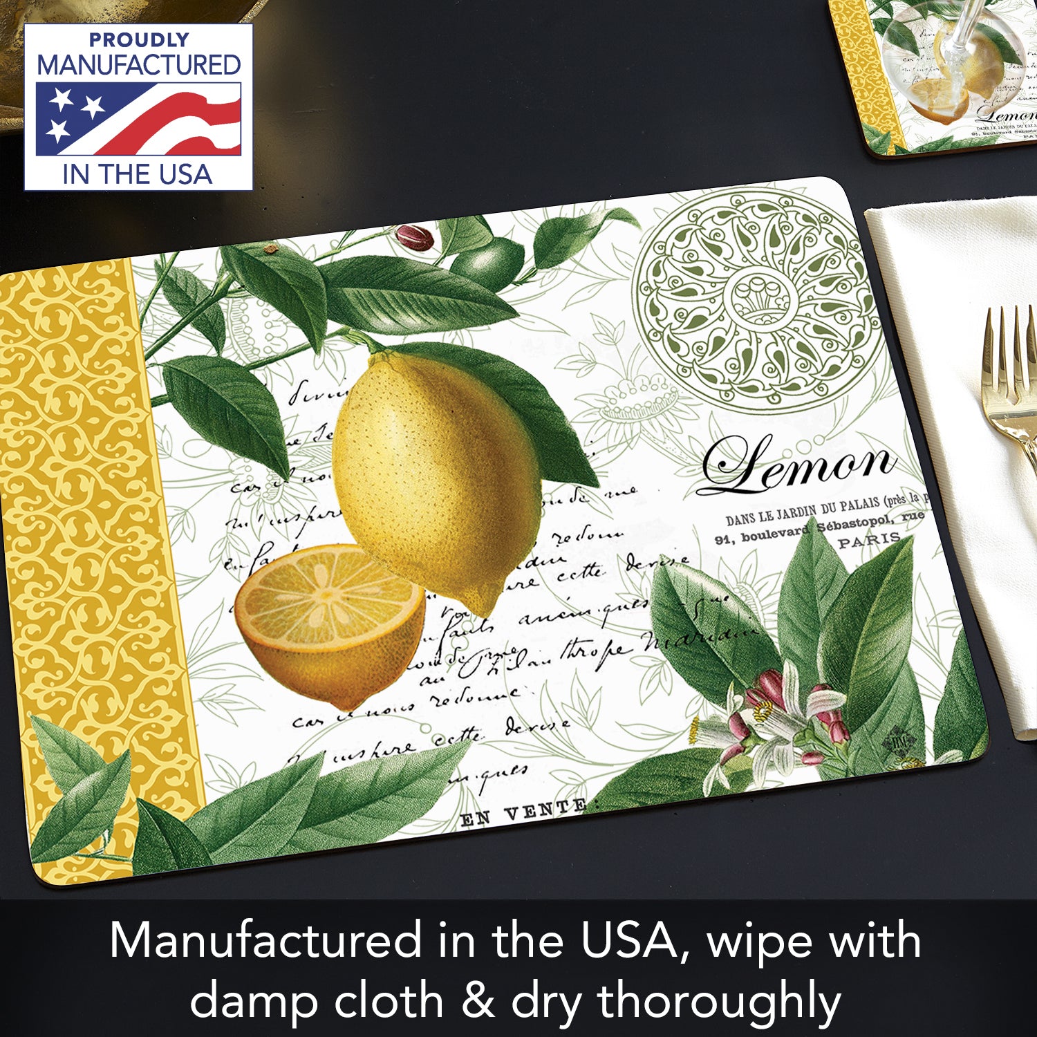 Cala Home Citron Premium Decorative Hardboard Placemats 4 Pack Manufactured in the USA