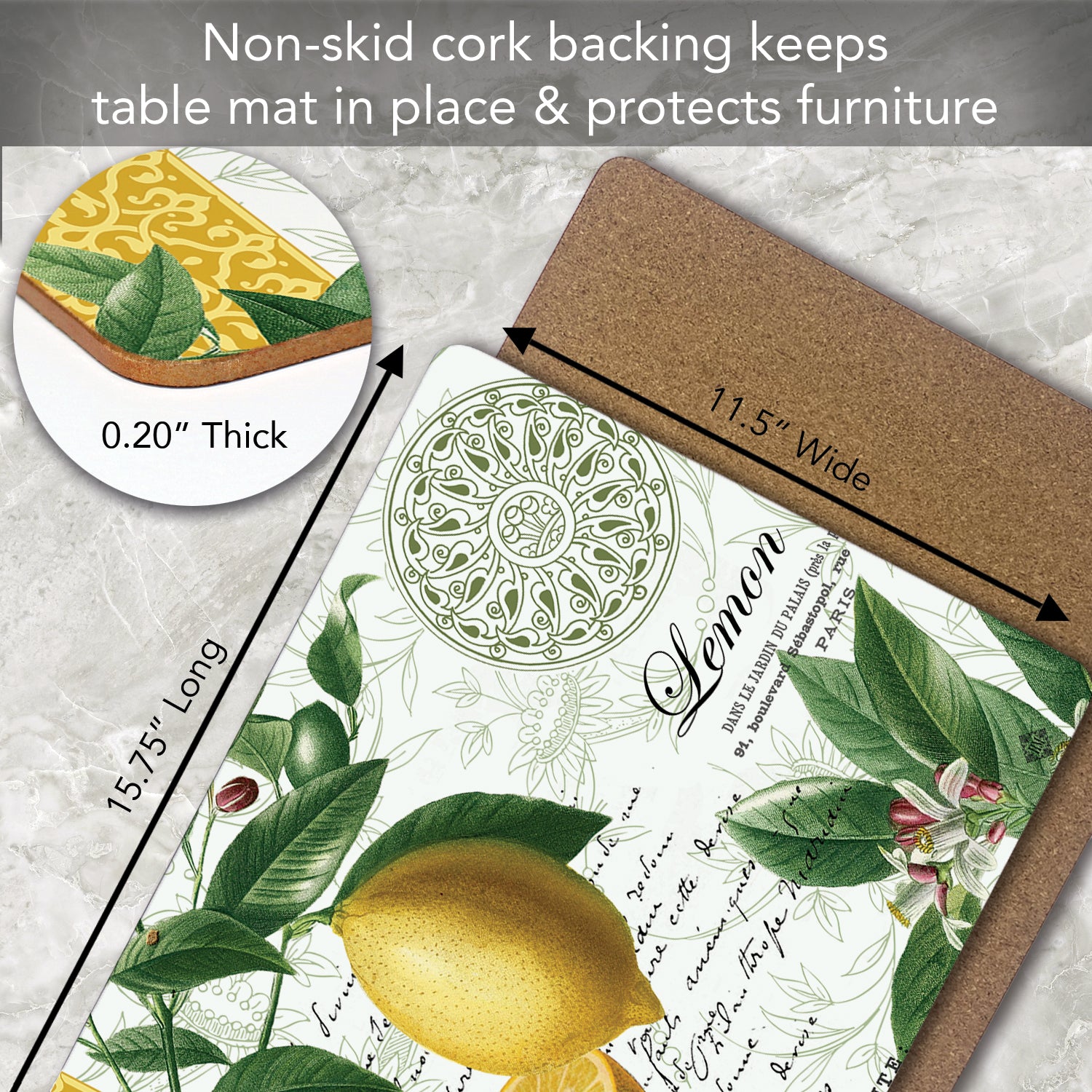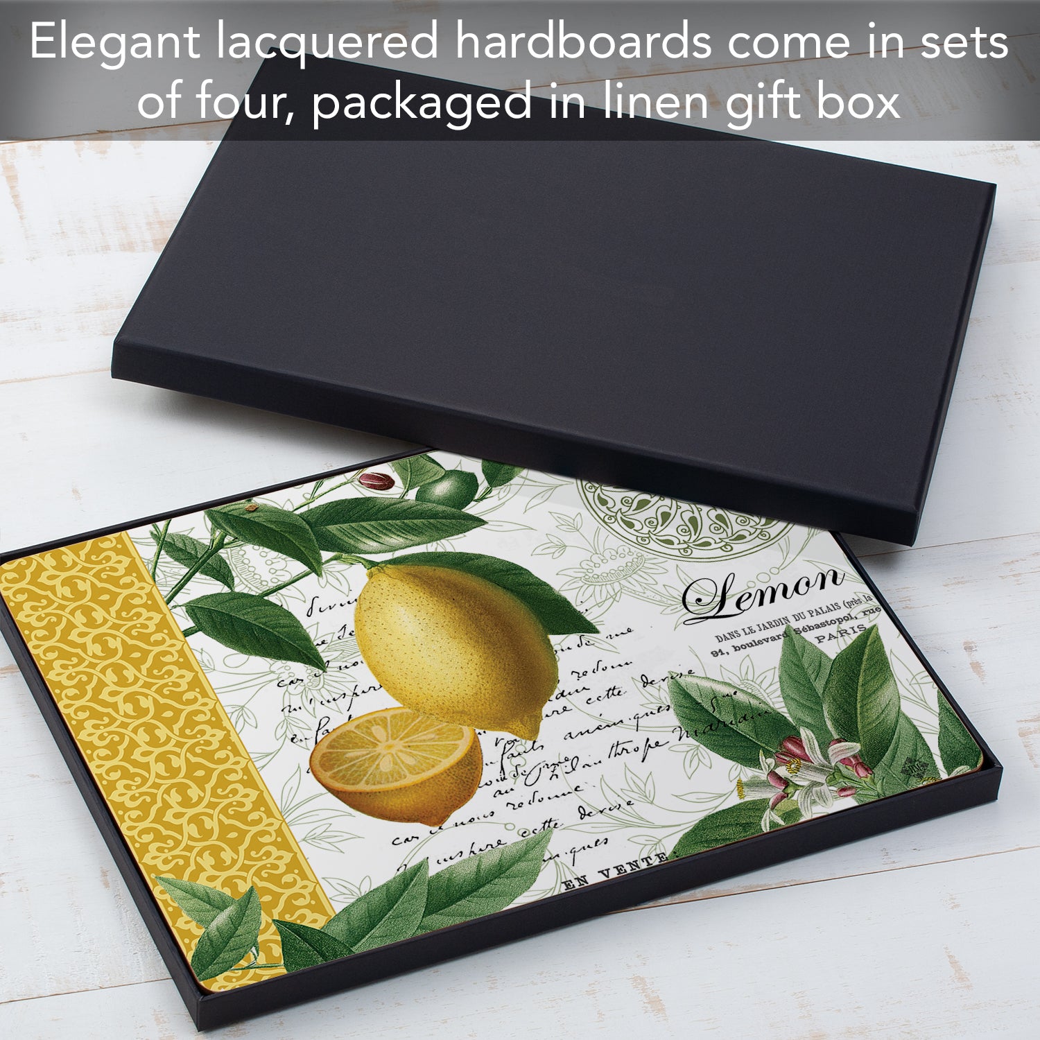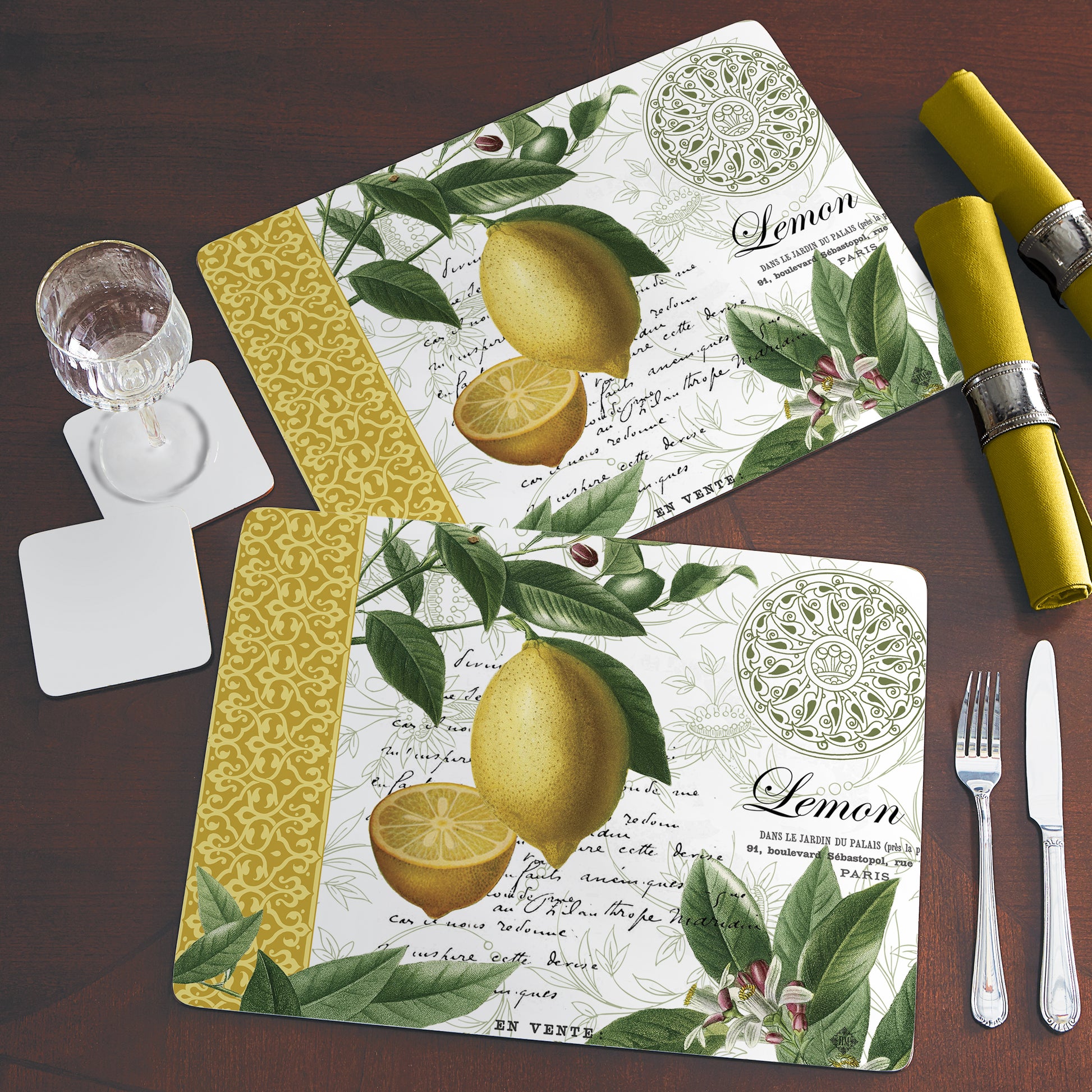 Cala Home Citron Premium Decorative Hardboard Placemats 4 Pack Manufactured in the USA