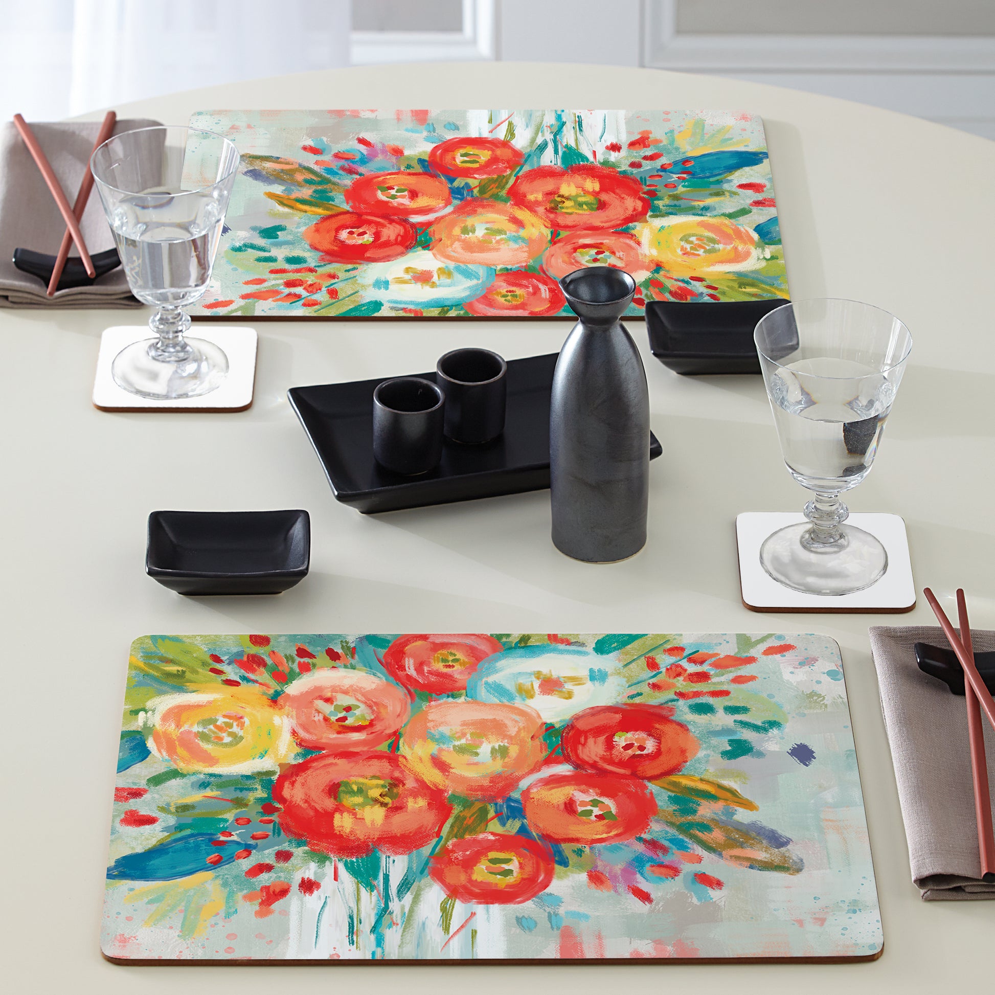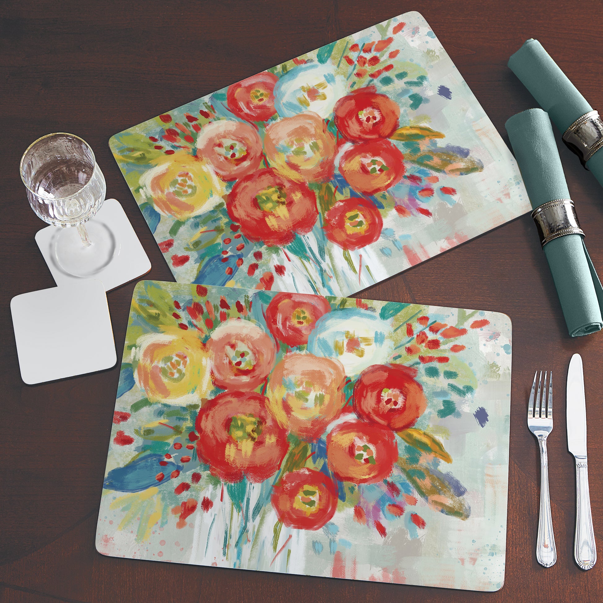 Cala Home Coral Floral Premium Decorative Hardboard Placemats 4 Pack Manufactured in the USA