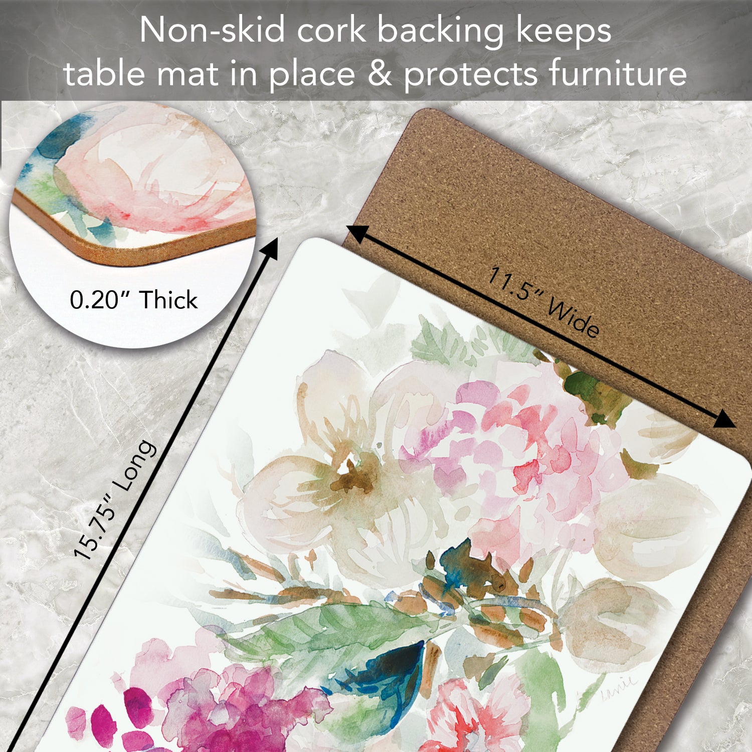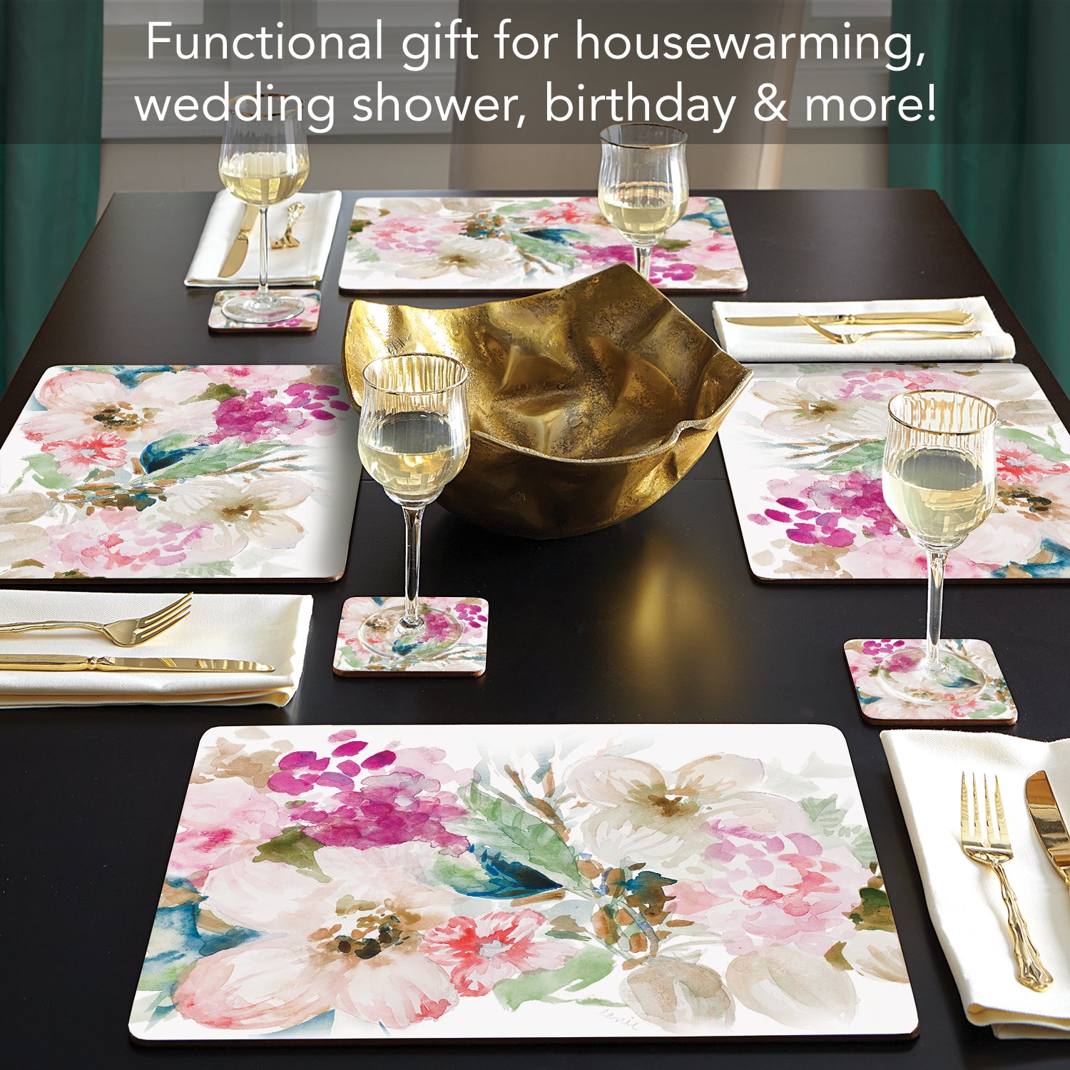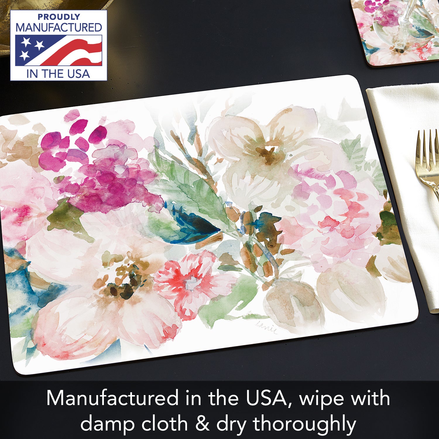 Cala Home Fragrant Spring Premium Decorative Hardboard Cork Back Placemats 4 Pack Manufactured in the USA