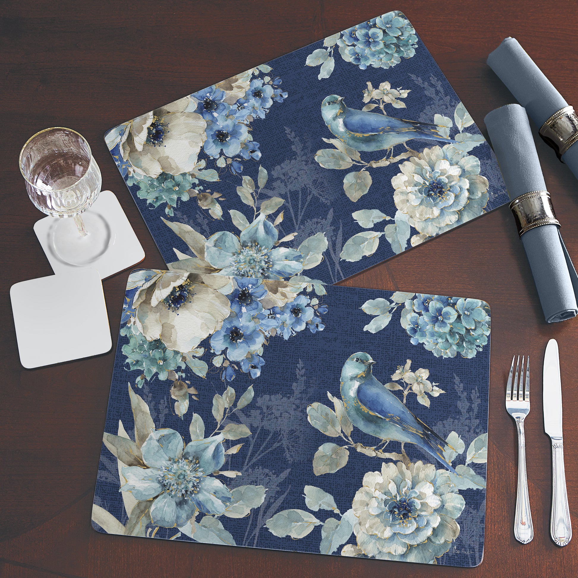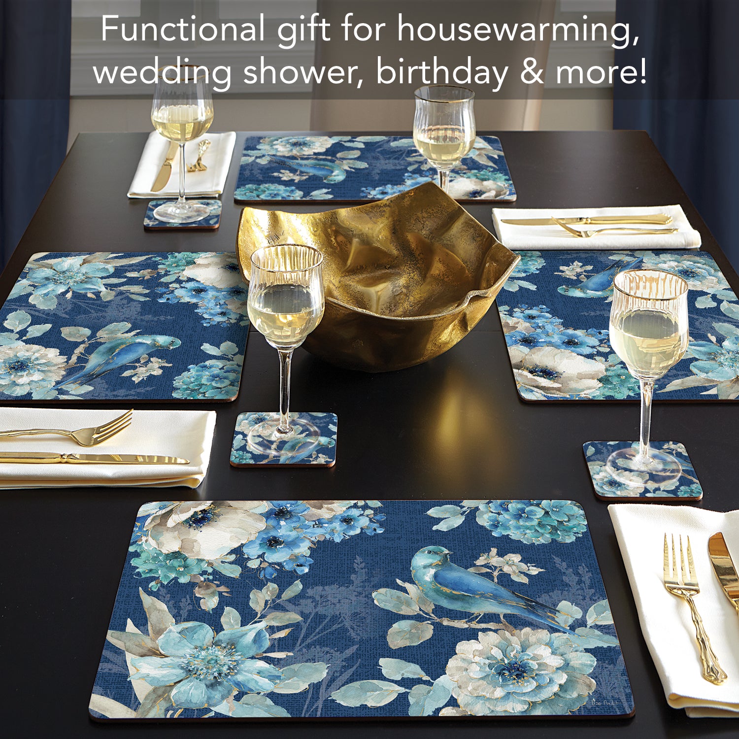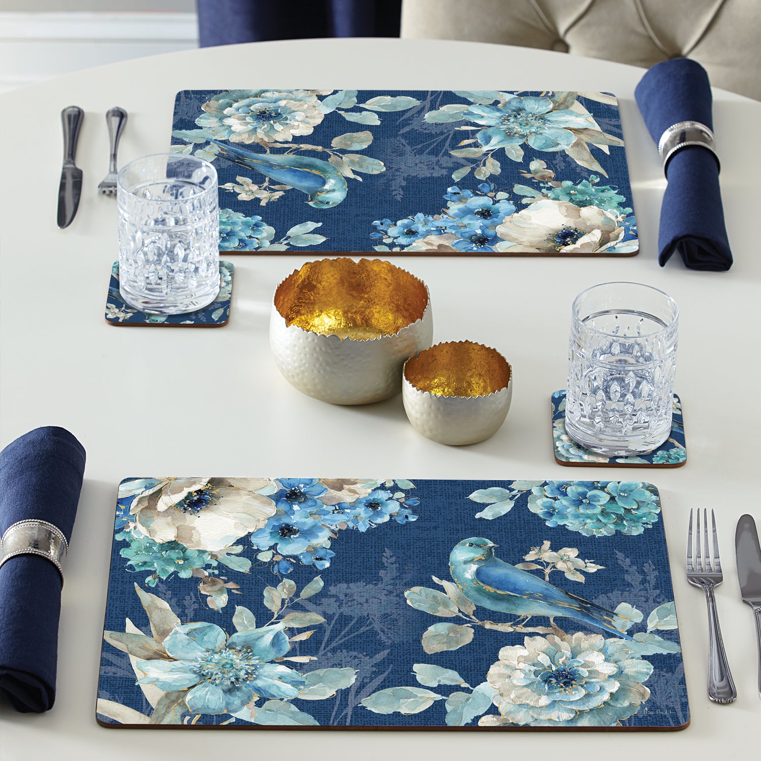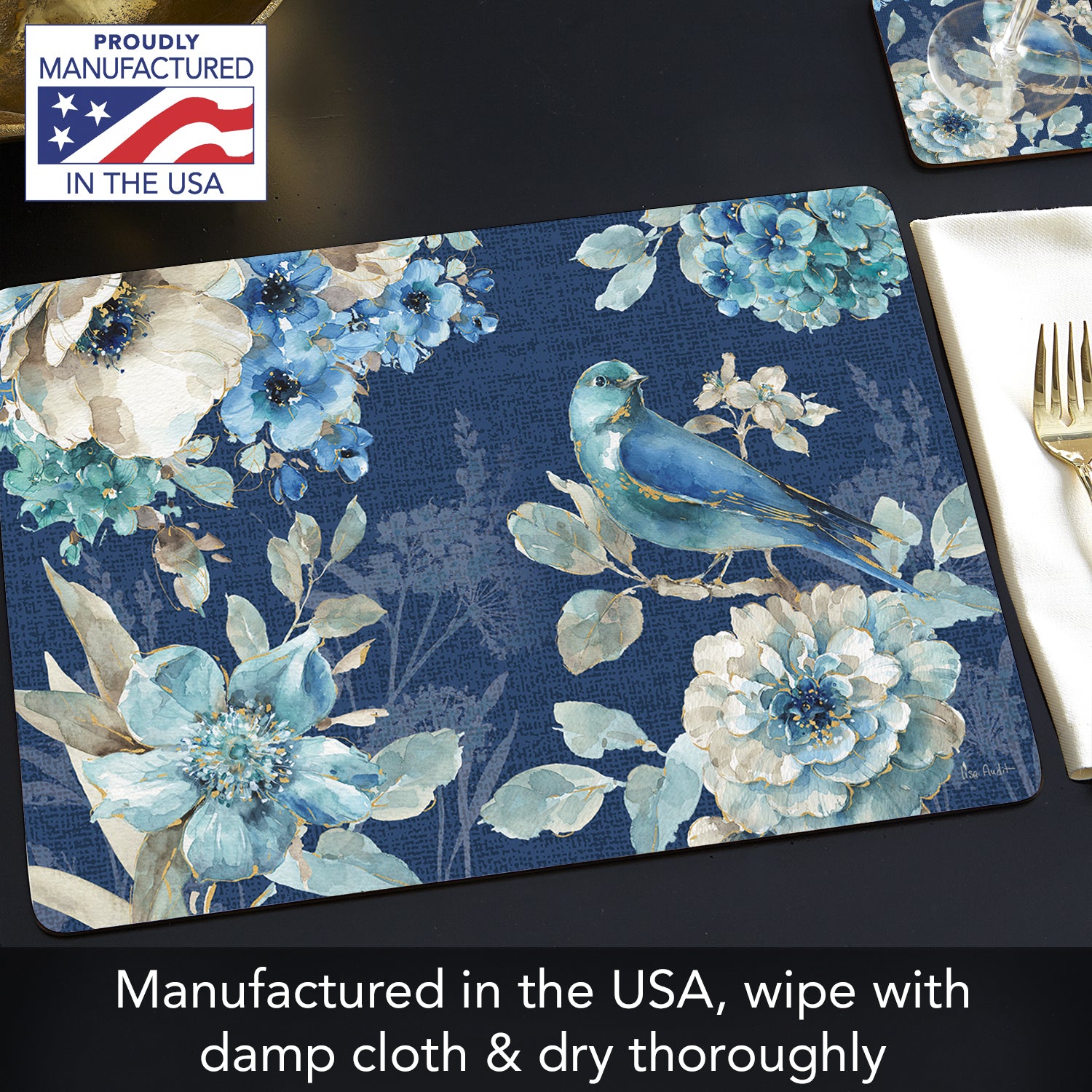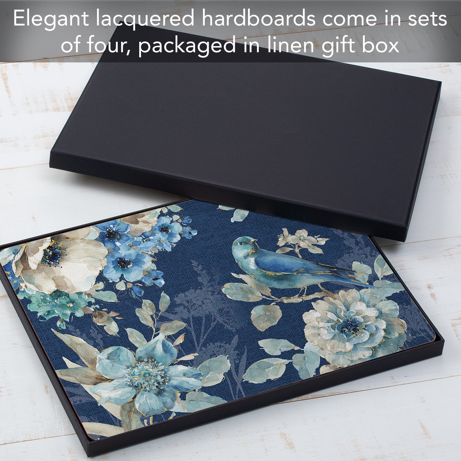 Cala Home Indigold Floral Premium Decorative Hardboard Placemats 4 Pack Manufactured in the USA