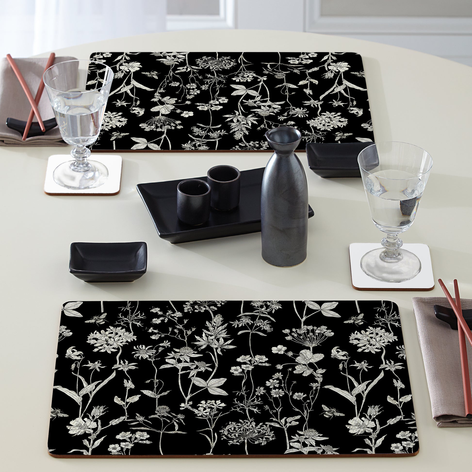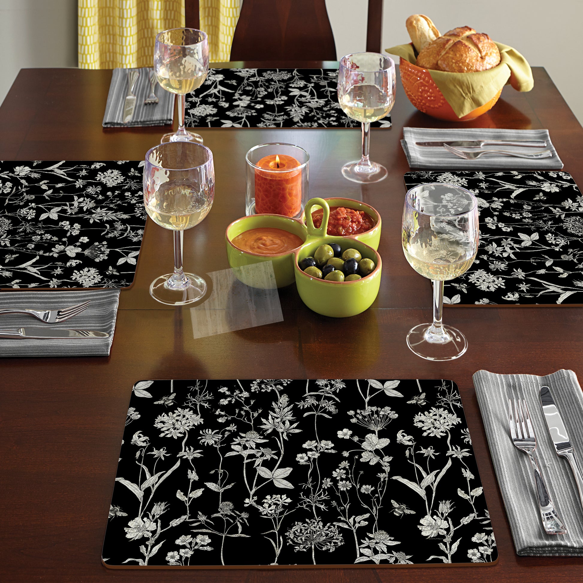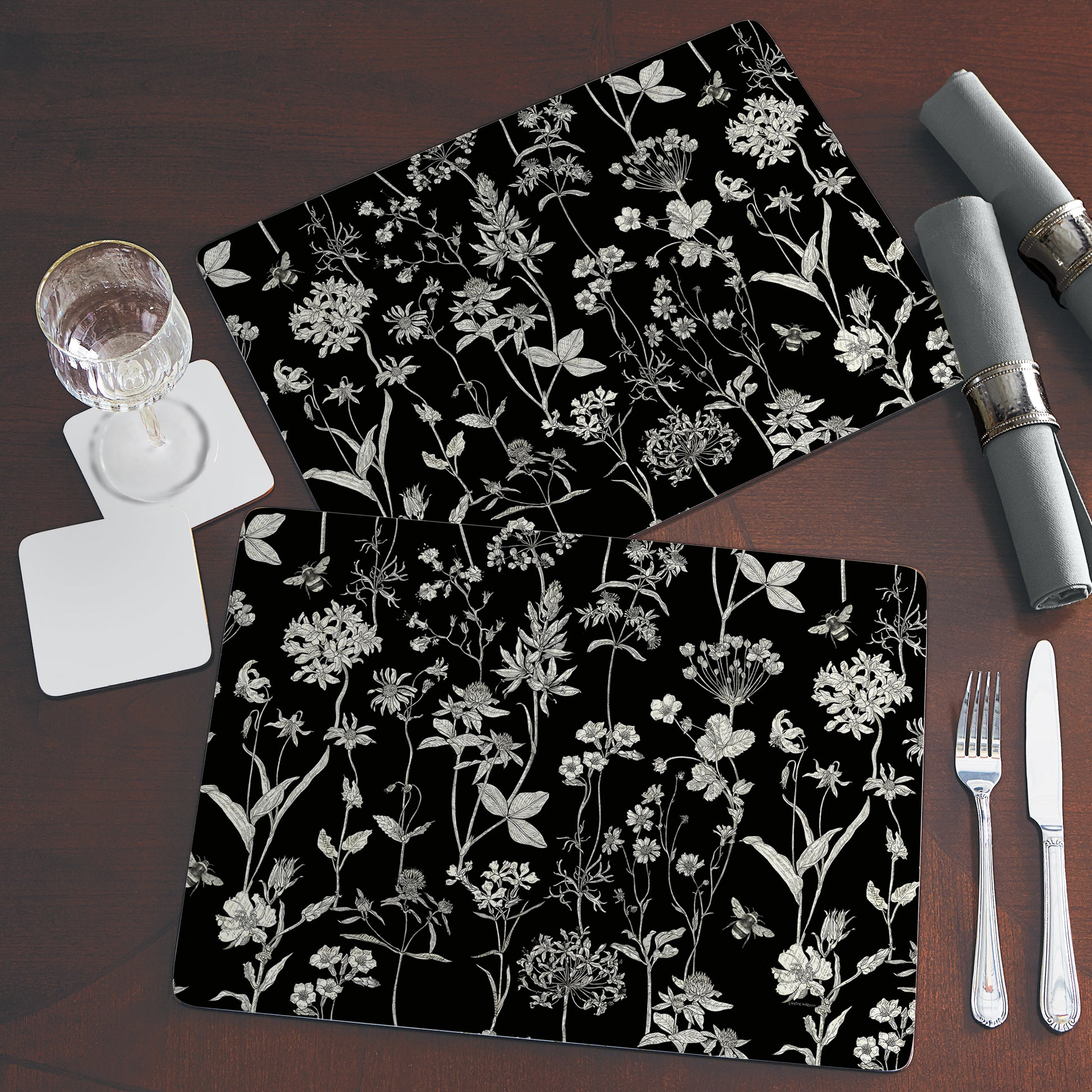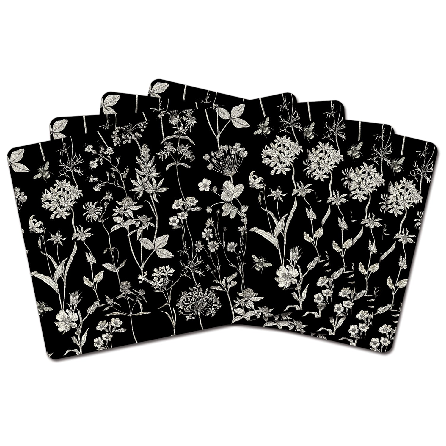 Cala Home Midnight Garden Premium Decorative Hardboard Placemats 4 Pack Manufactured in the USA
