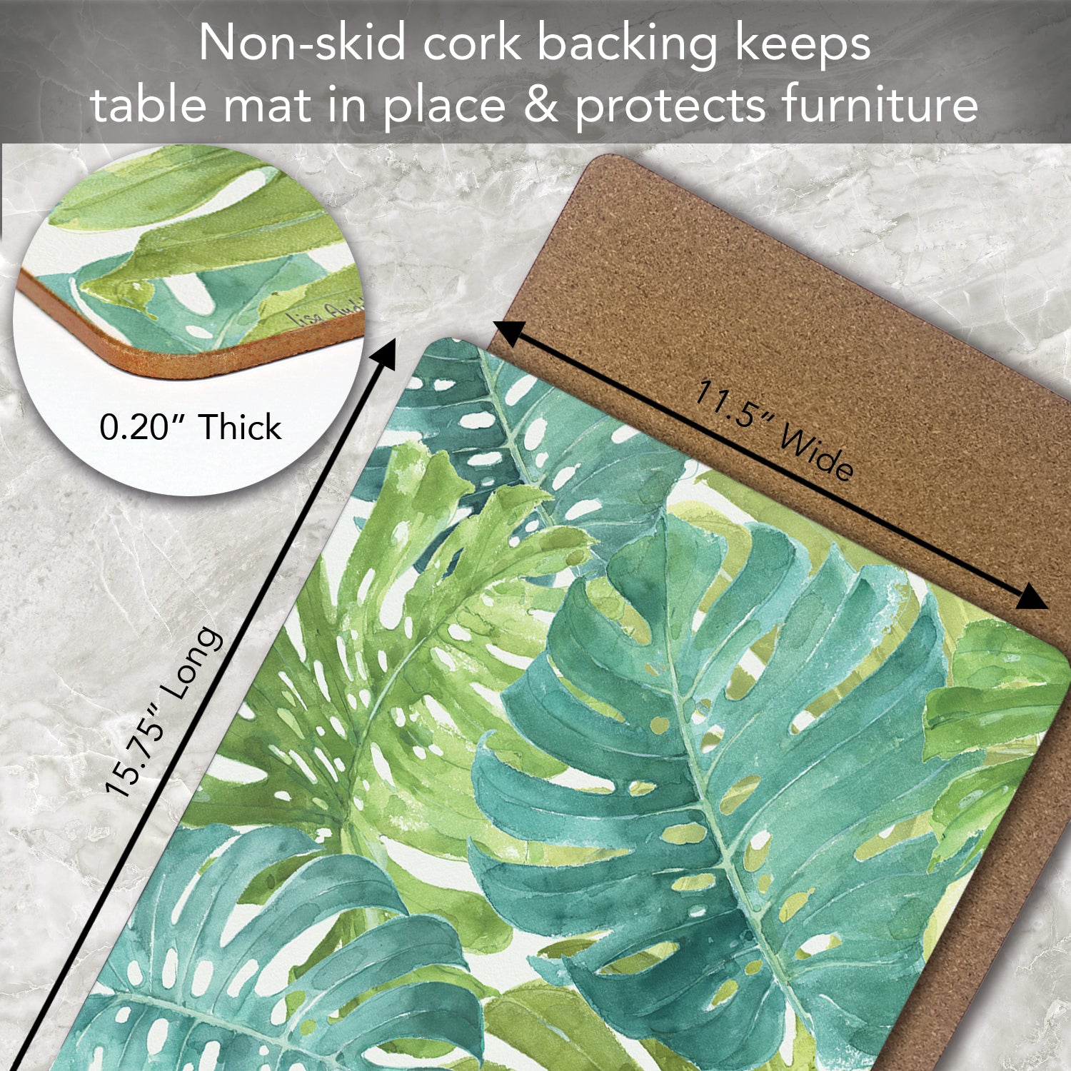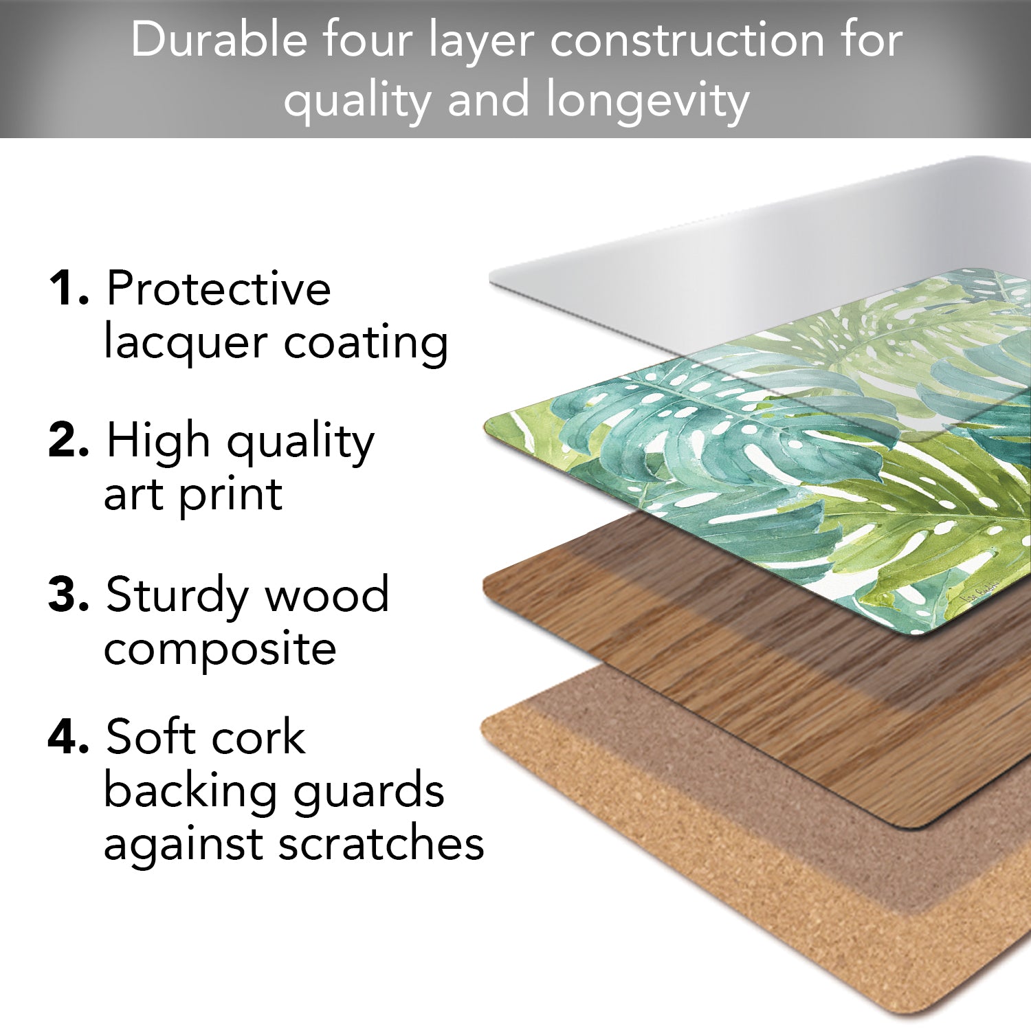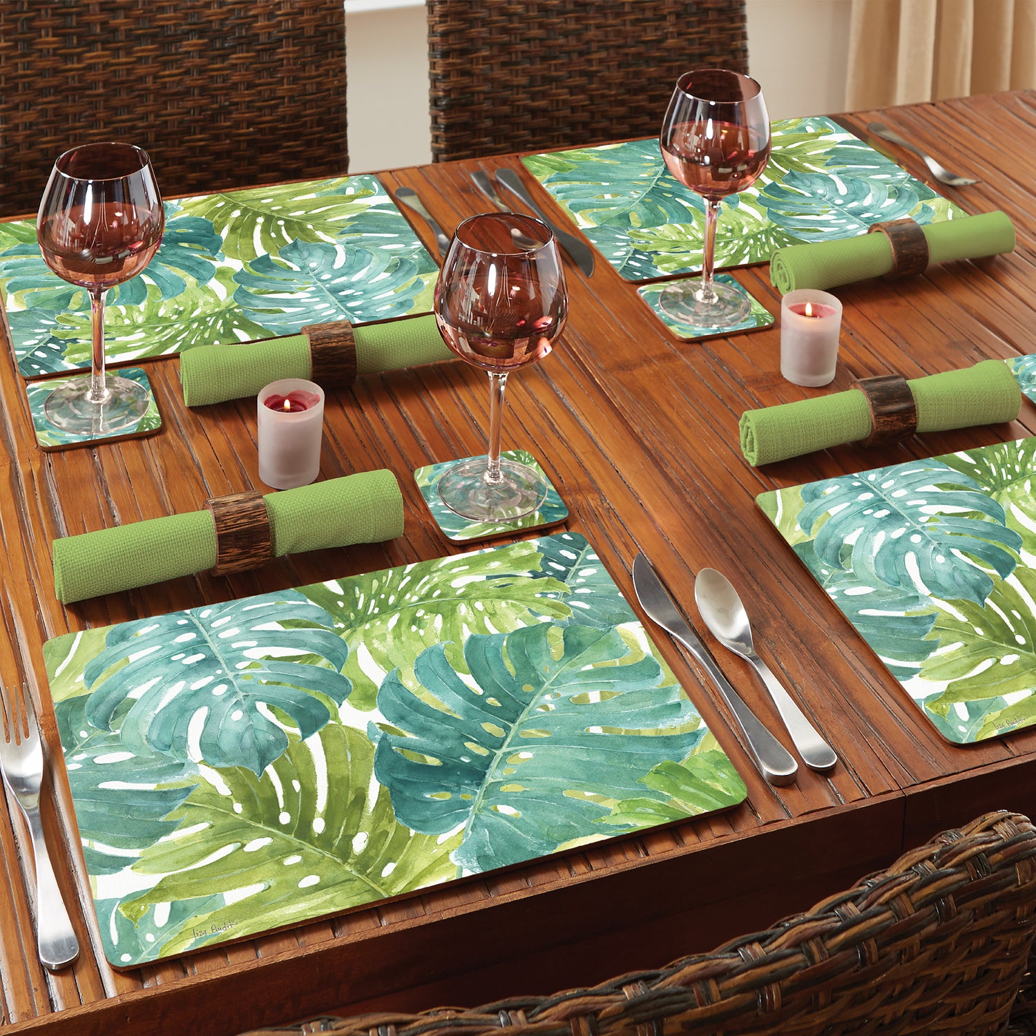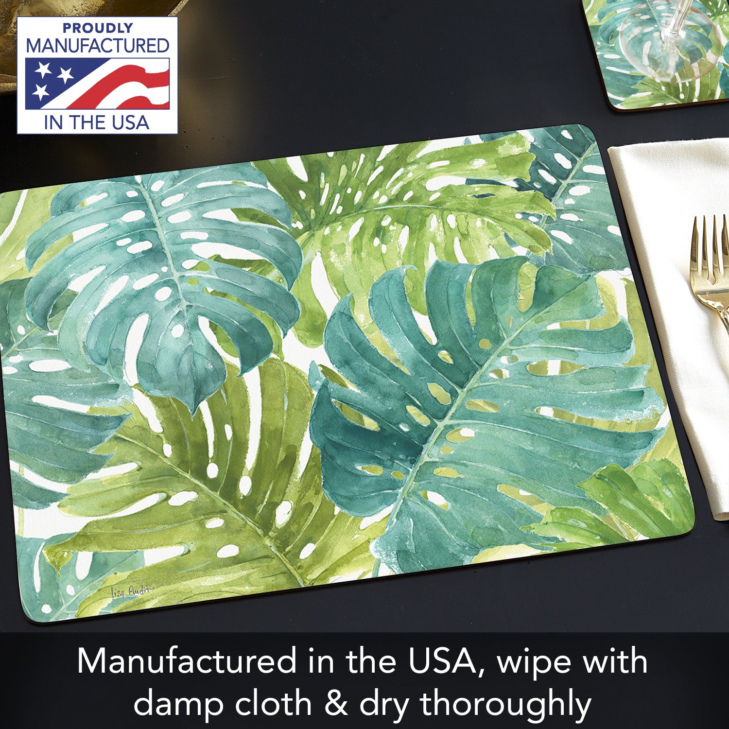 Cala Home Tropical Green Premium Decorative Hardboard Placemats 4 Pack Manufactured in the USA