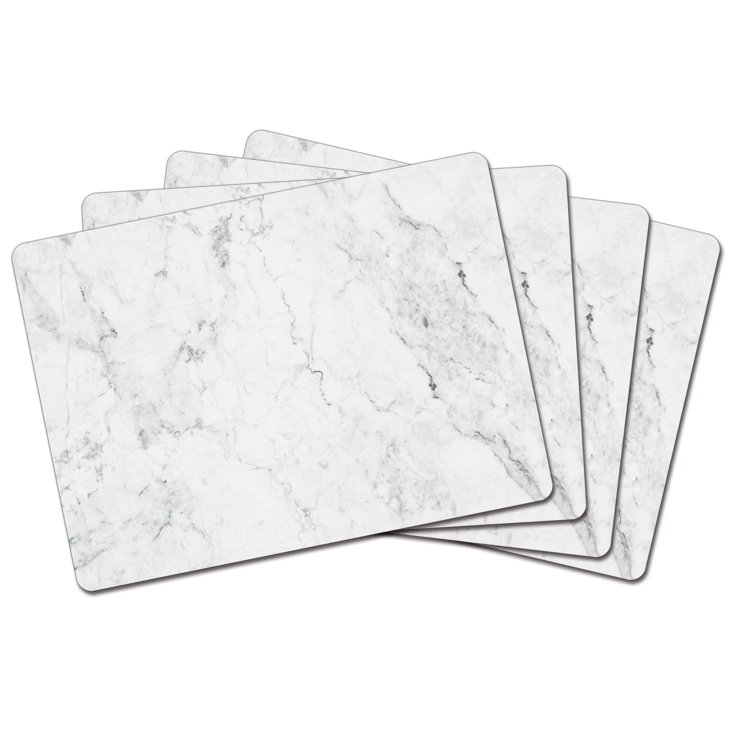 Cala Home White Marble Design Premium Decorative Hardboard Placemats 4 Pack Manufactured in the USA