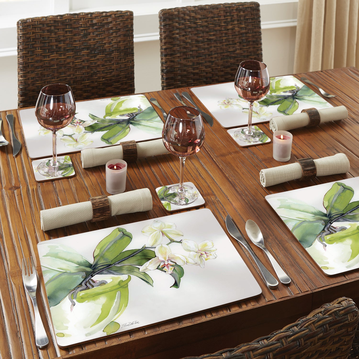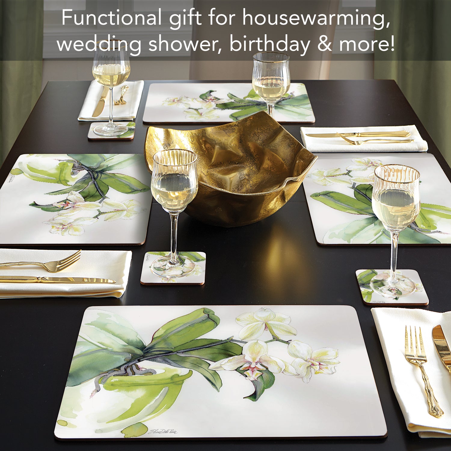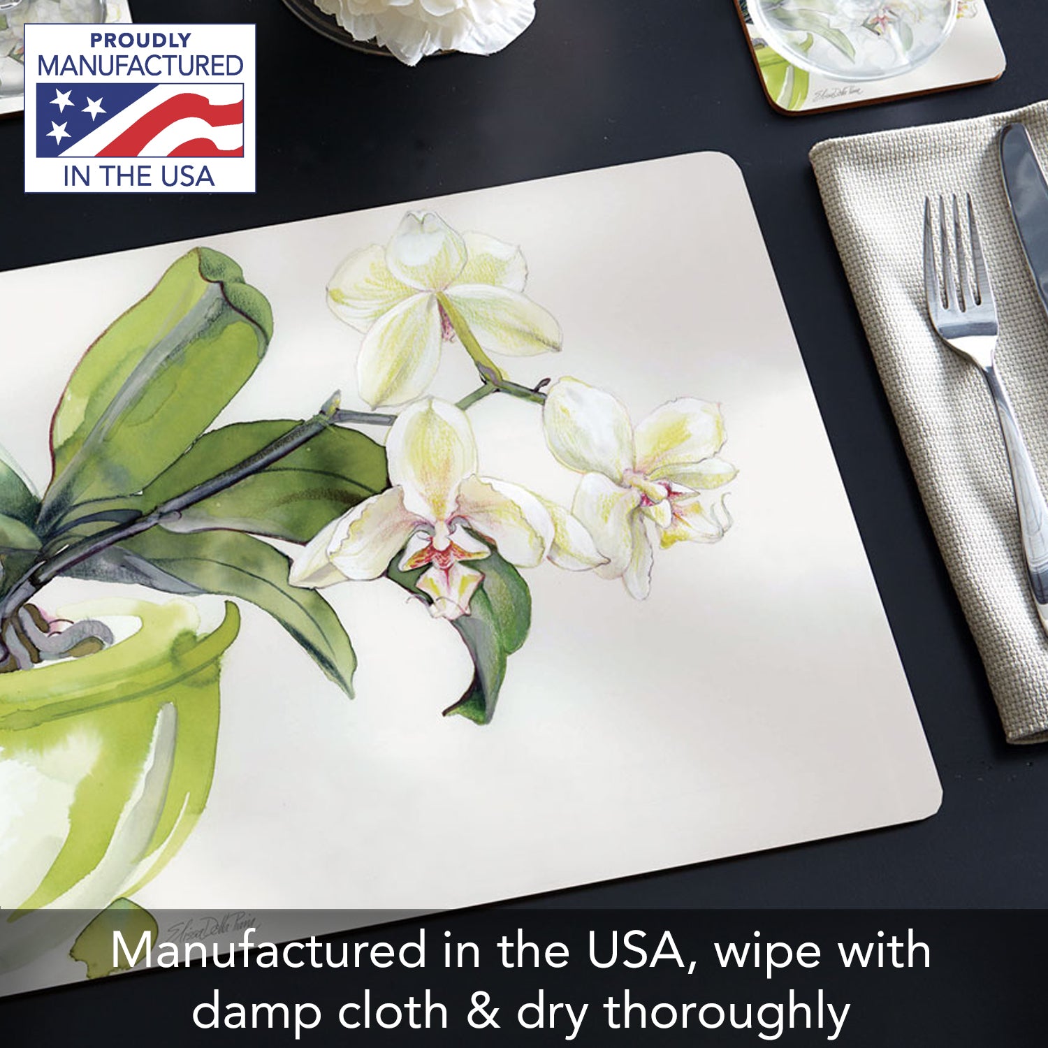 Cala Home White Orchid Premium Decorative Hardboard Placemats 4 Pack Manufactured in the USA