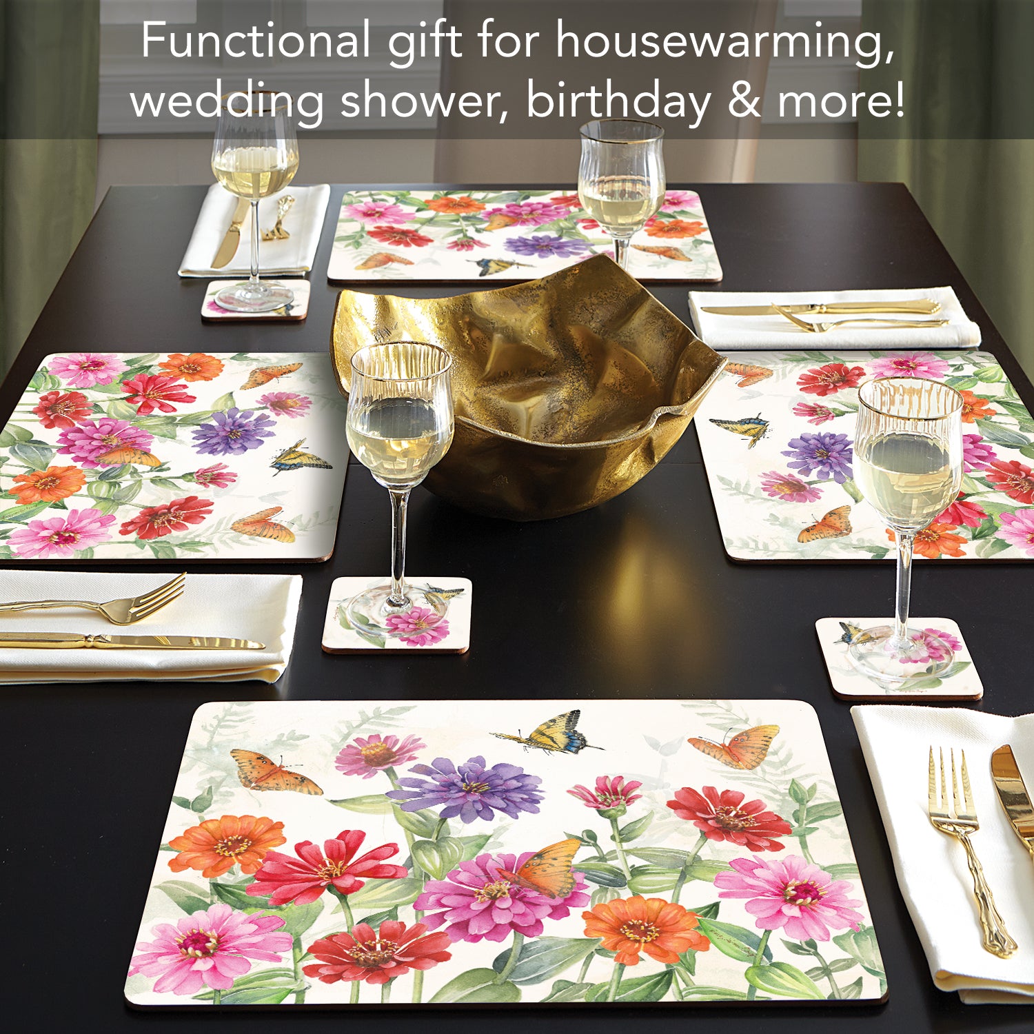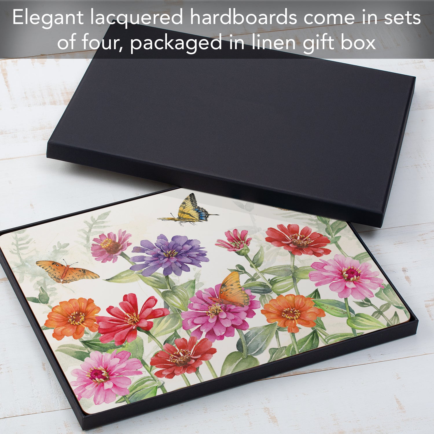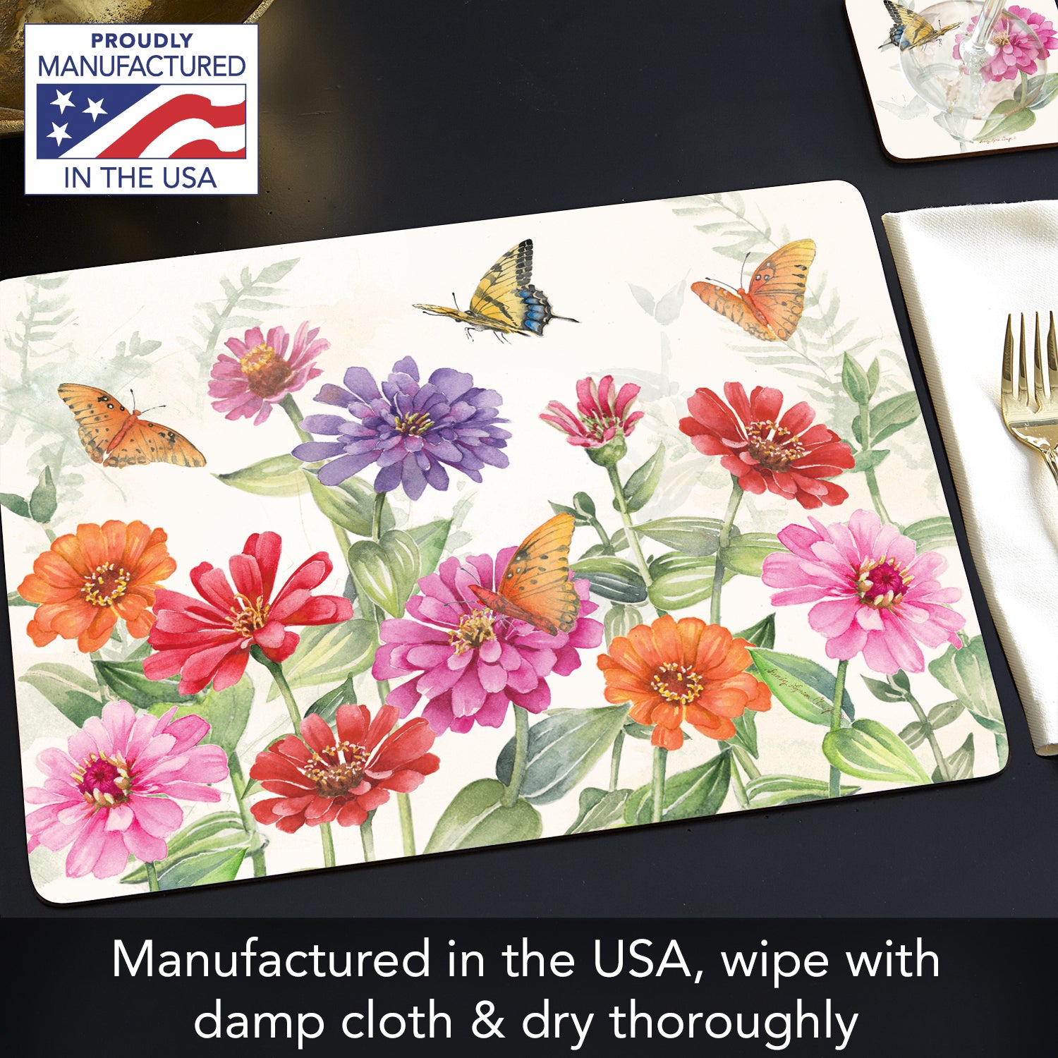 Cala Home Zinnias & Butterflies Premium Decorative Hardboard Placemats 4 Pack Manufactured in the USA