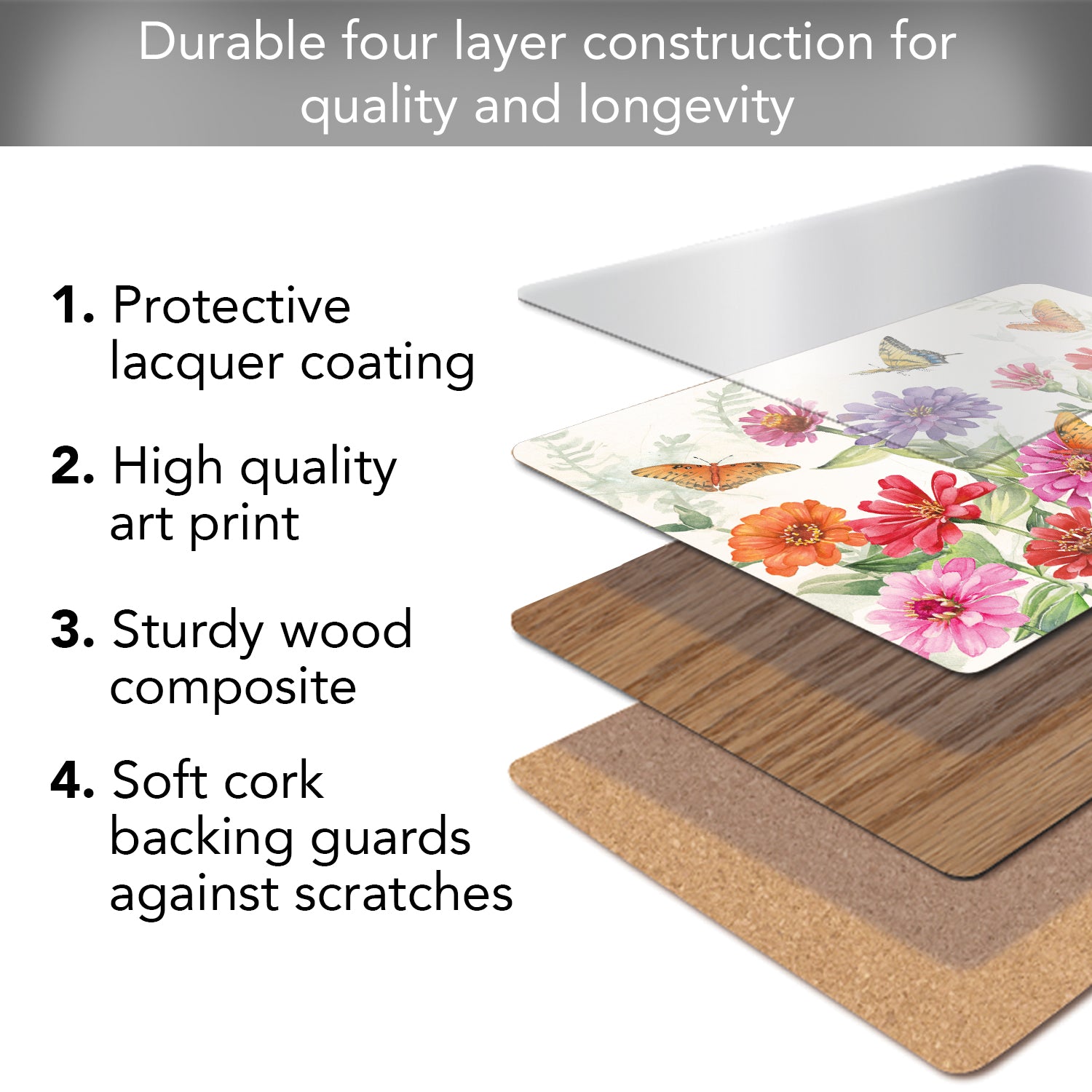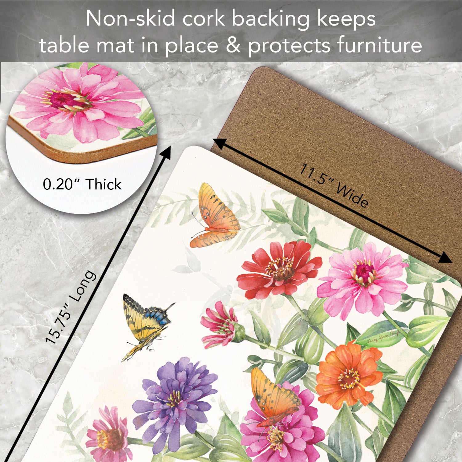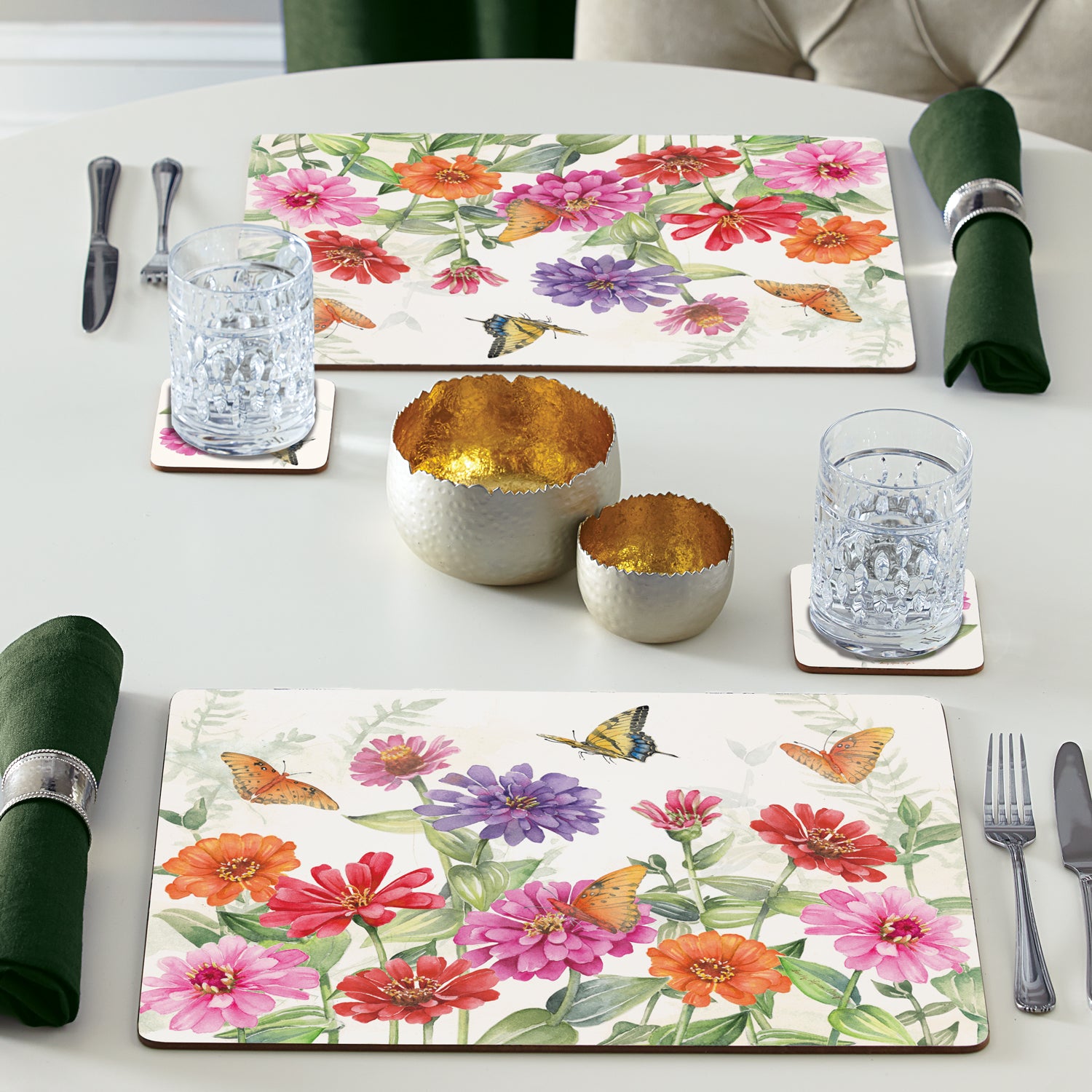 Cala Home Zinnias & Butterflies Premium Decorative Hardboard Placemats 4 Pack Manufactured in the USA