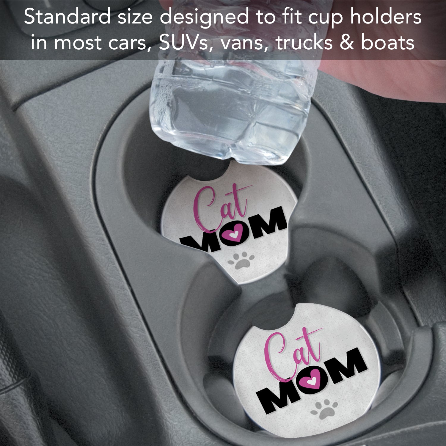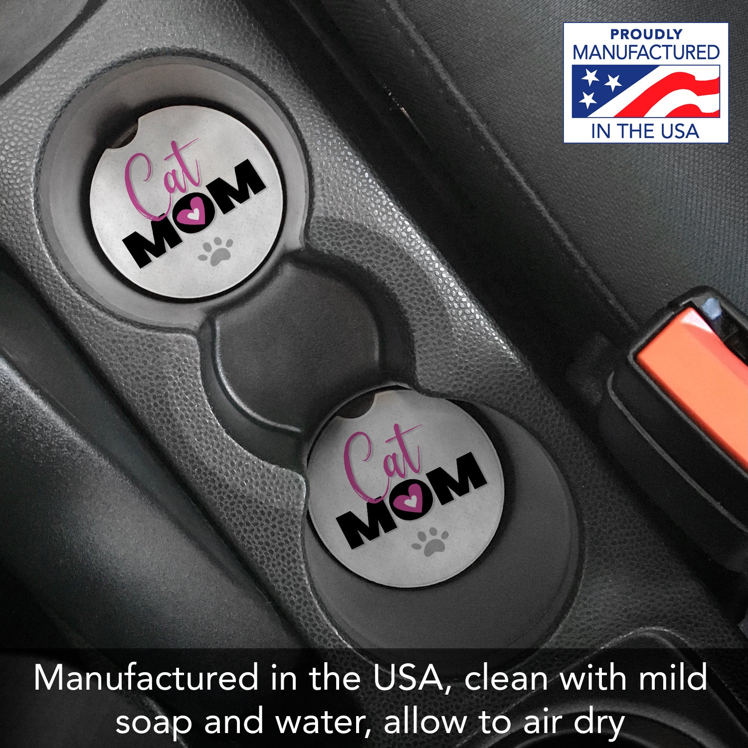 Cat Mom 2 Pack Absorbent Stone Car Coasters 2.6" Manufactured in the USA