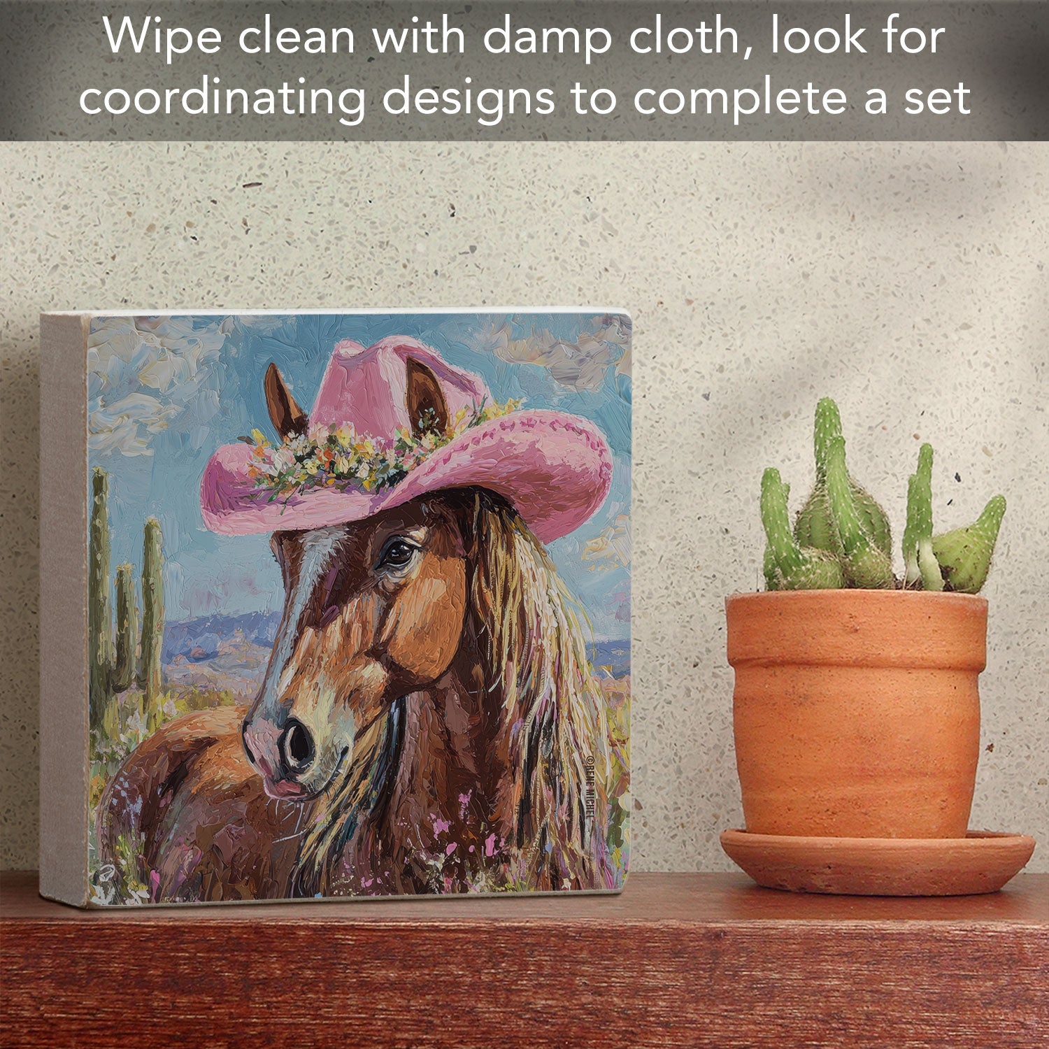 Charming Horse Freestanding Solid Wood Block Sign Made in the USA 3.75” Square
