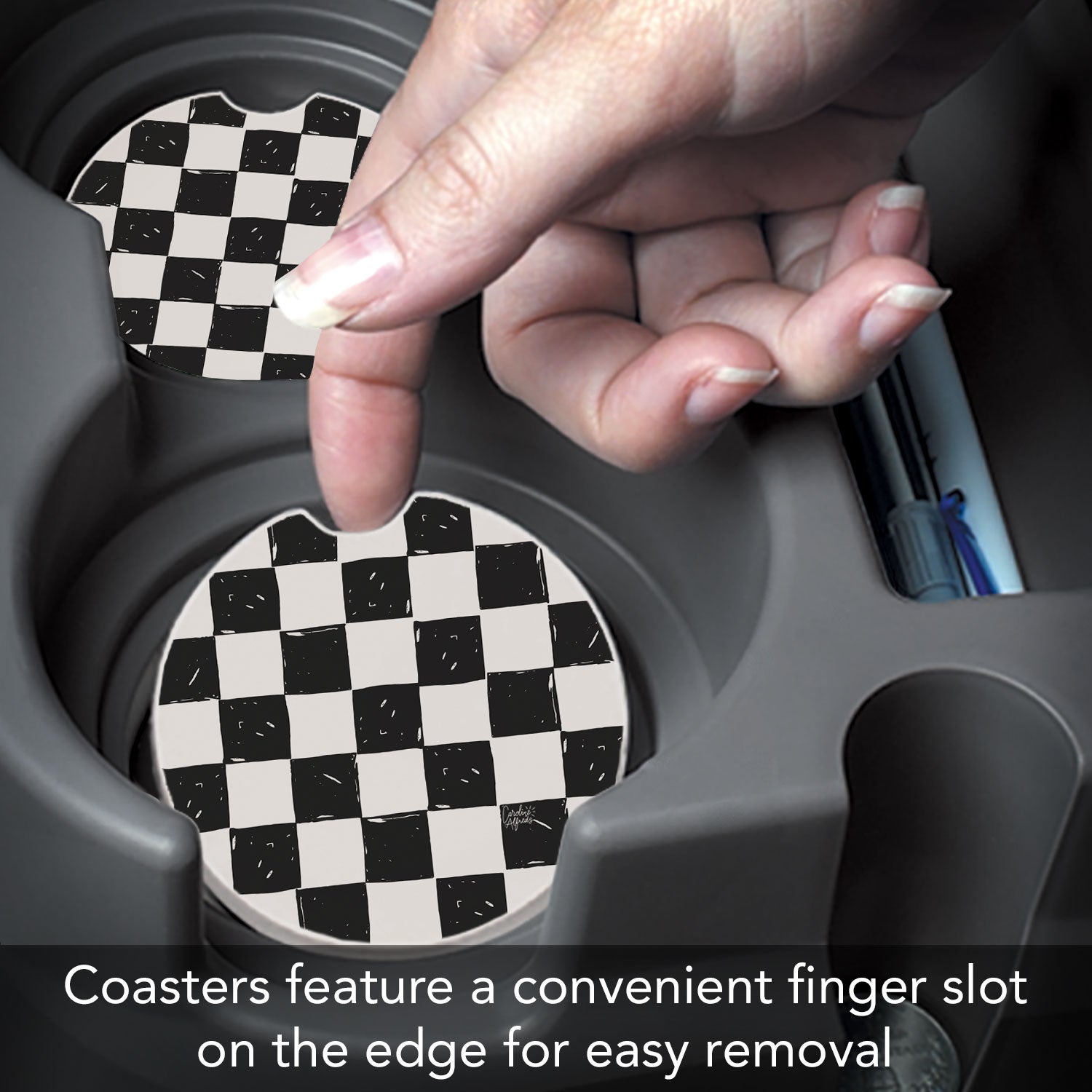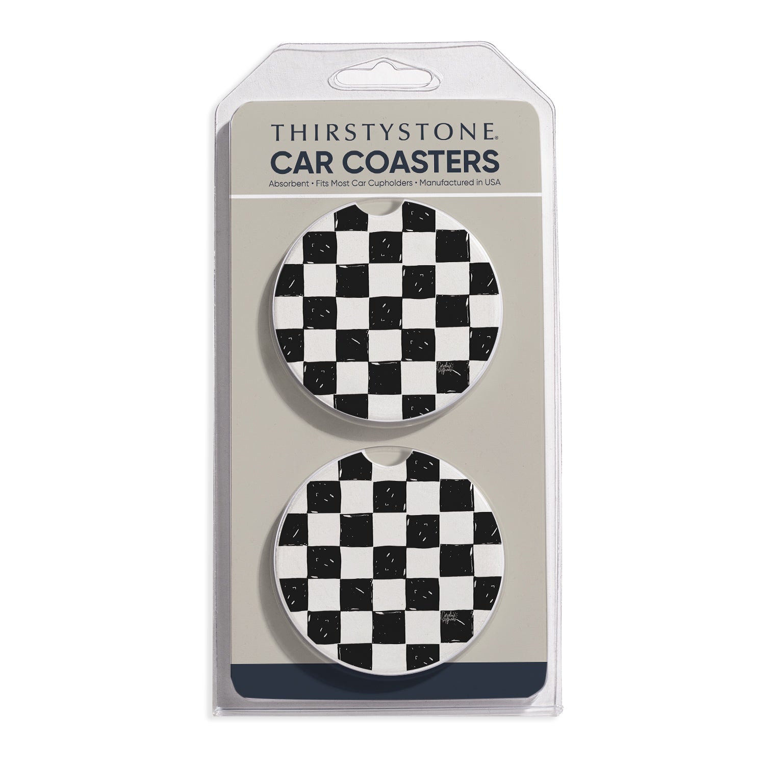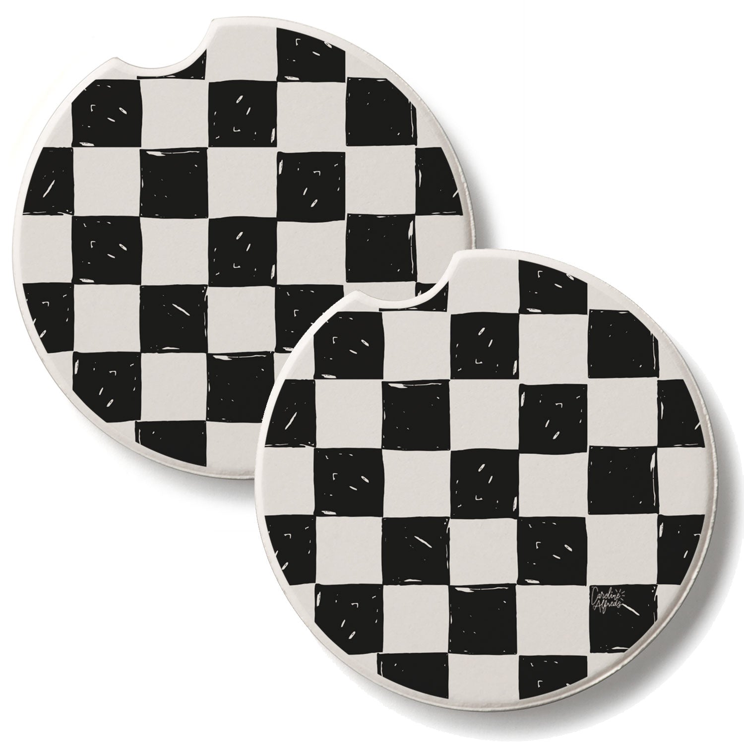 Checker 2 Pack Absorbent Stone Car Coasters 2.6" Manufactured in the USA