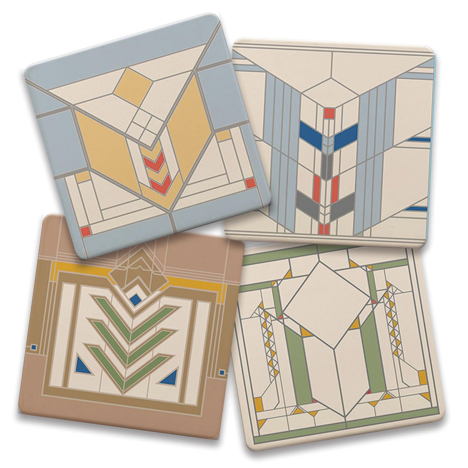 Frank Lloyd Wright Assorted Chevron Designs 4 Pack Stone Coasters Manufactured in the USA