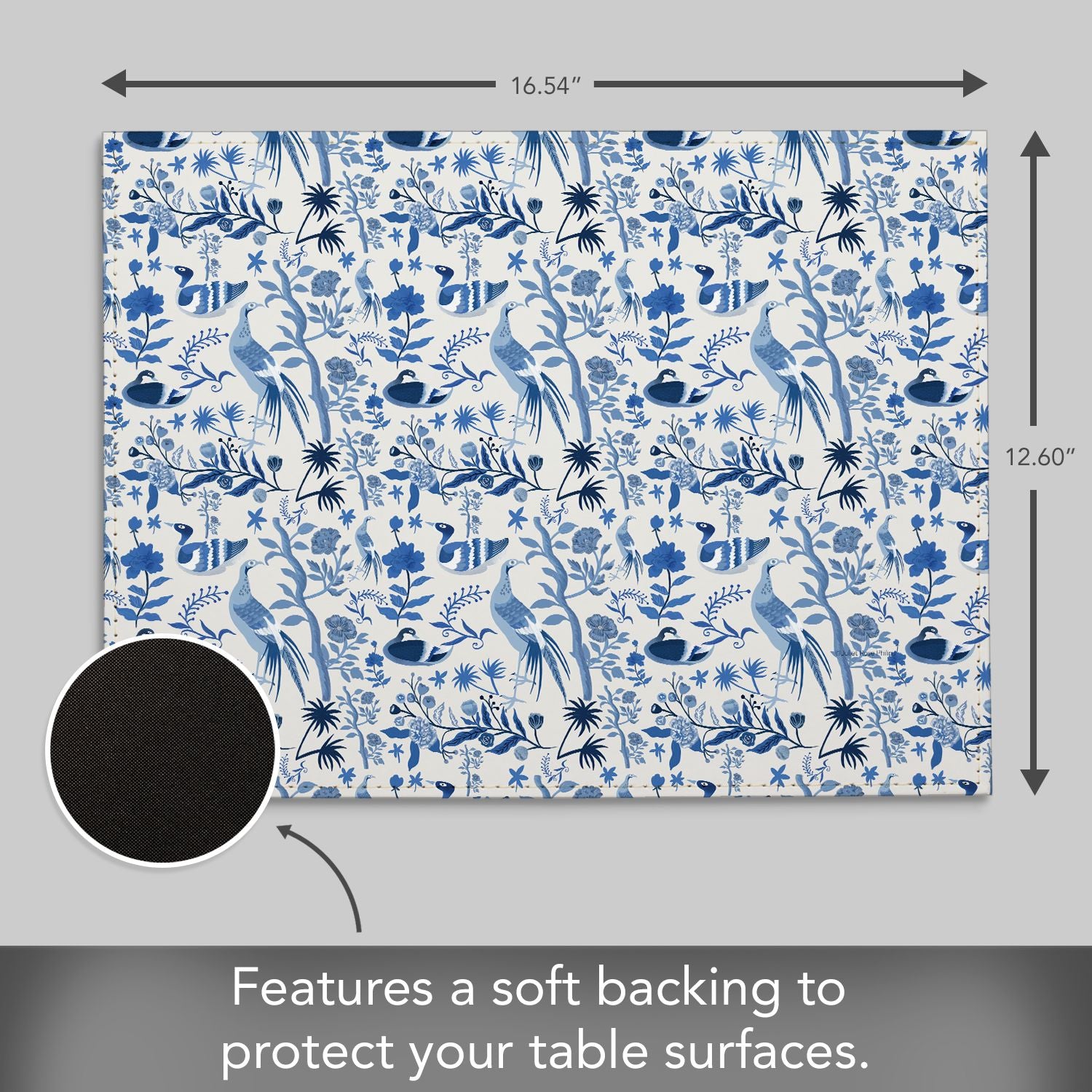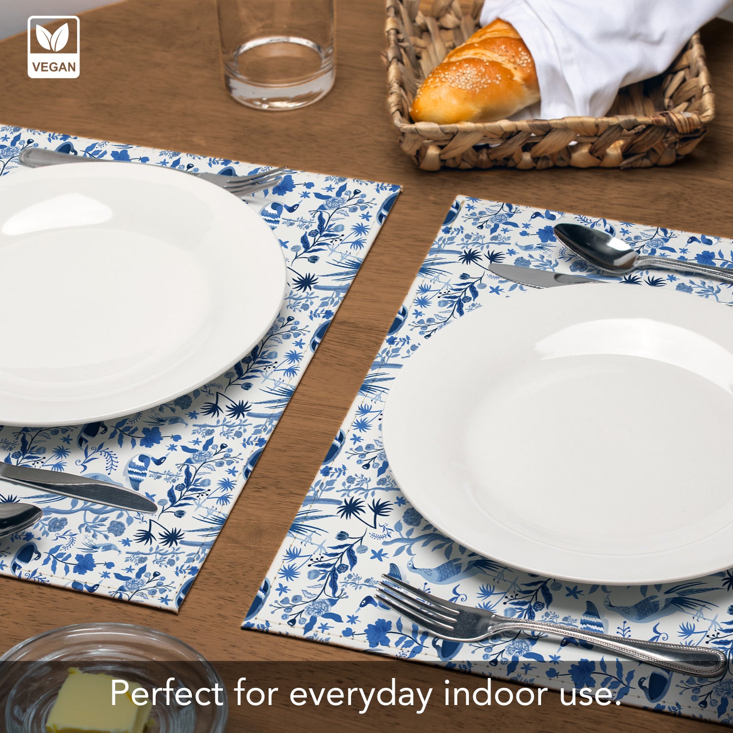Chinoiserie Birds Luxurious Vegan Leather Placemat 4 Pack Look and Feel of Genuine Leather Infused with Copper