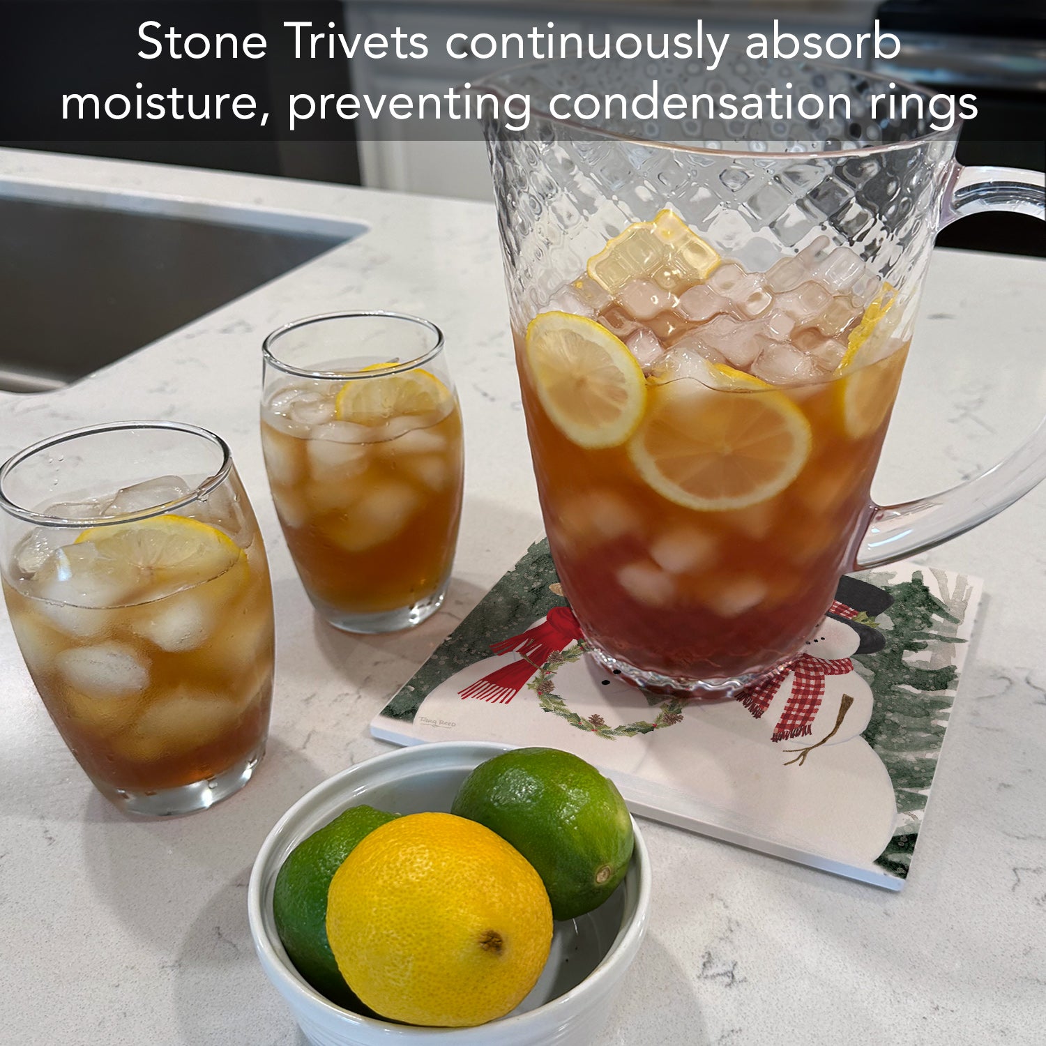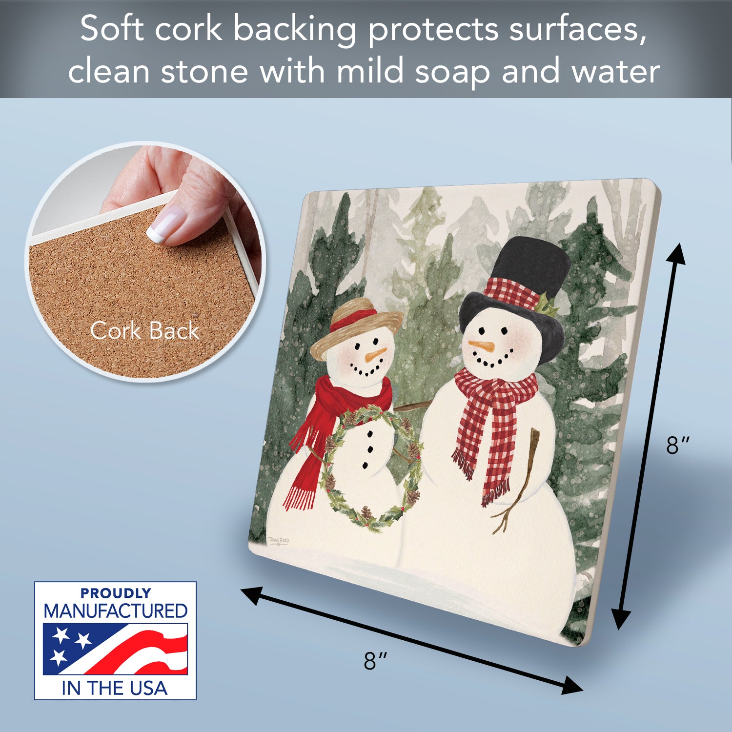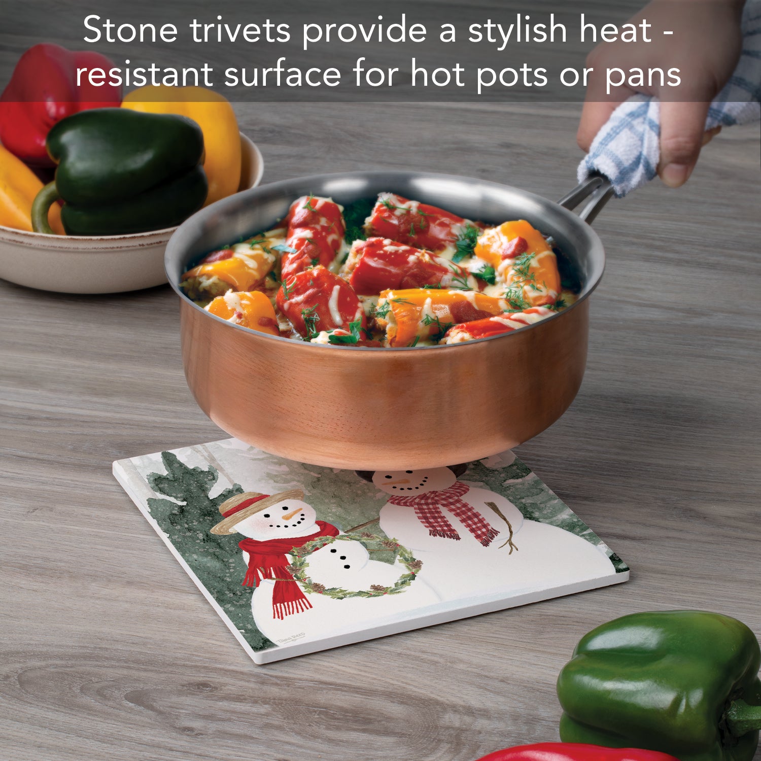 Thirstystone Christmas in The Woods Decorative Heat Tolerant Stone Trivet with Non-Skid Cork Backing 8” Square