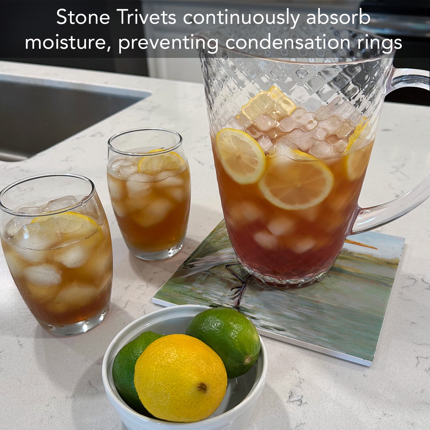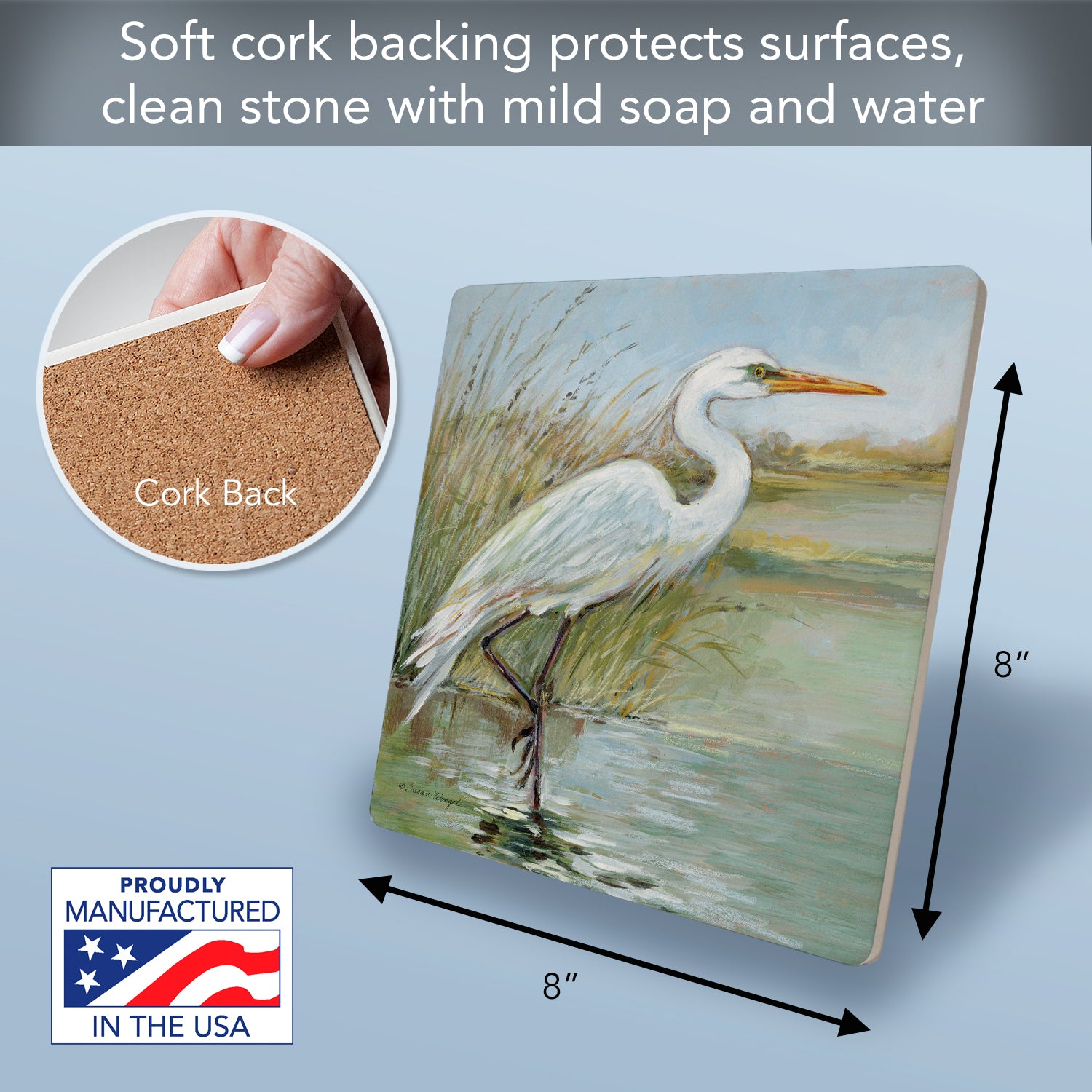 Thirstystone Coastal Egret Decorative Heat Tolerant Stone Trivet with Non-Skid Cork Backing 8” Square