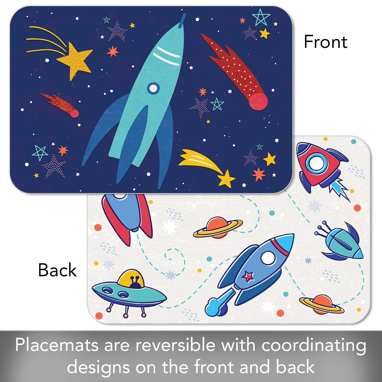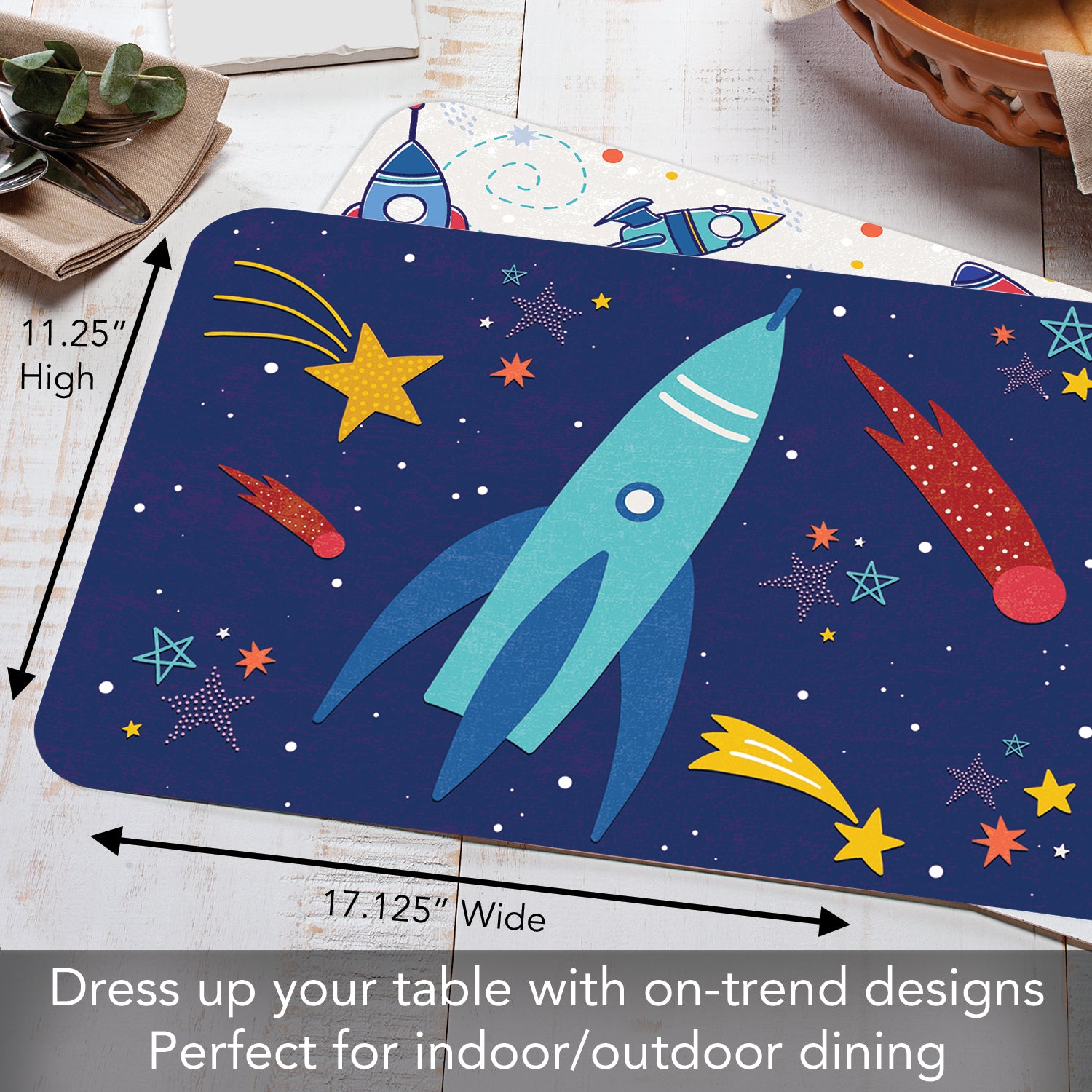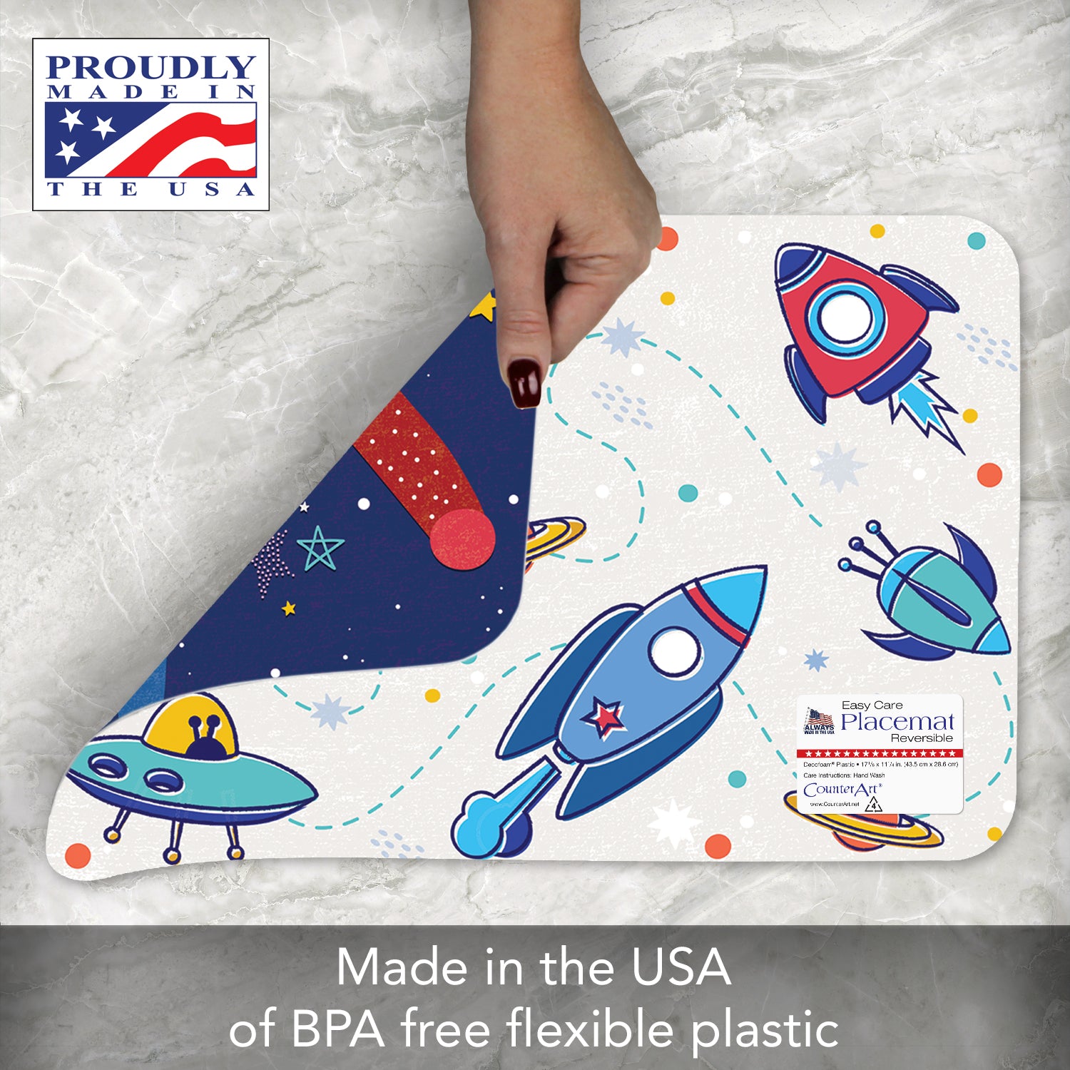 CounterArt Kids Space Flight4 Pack Reversible Easy Care Flexible Placemats Made in the USA