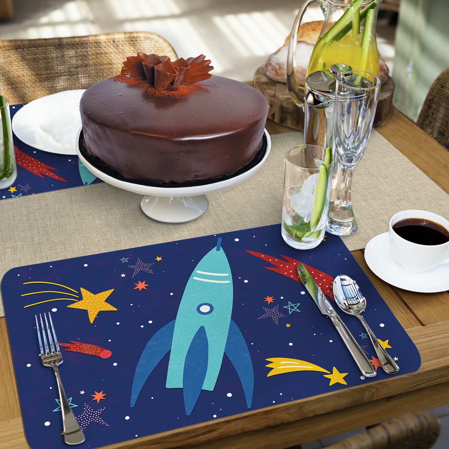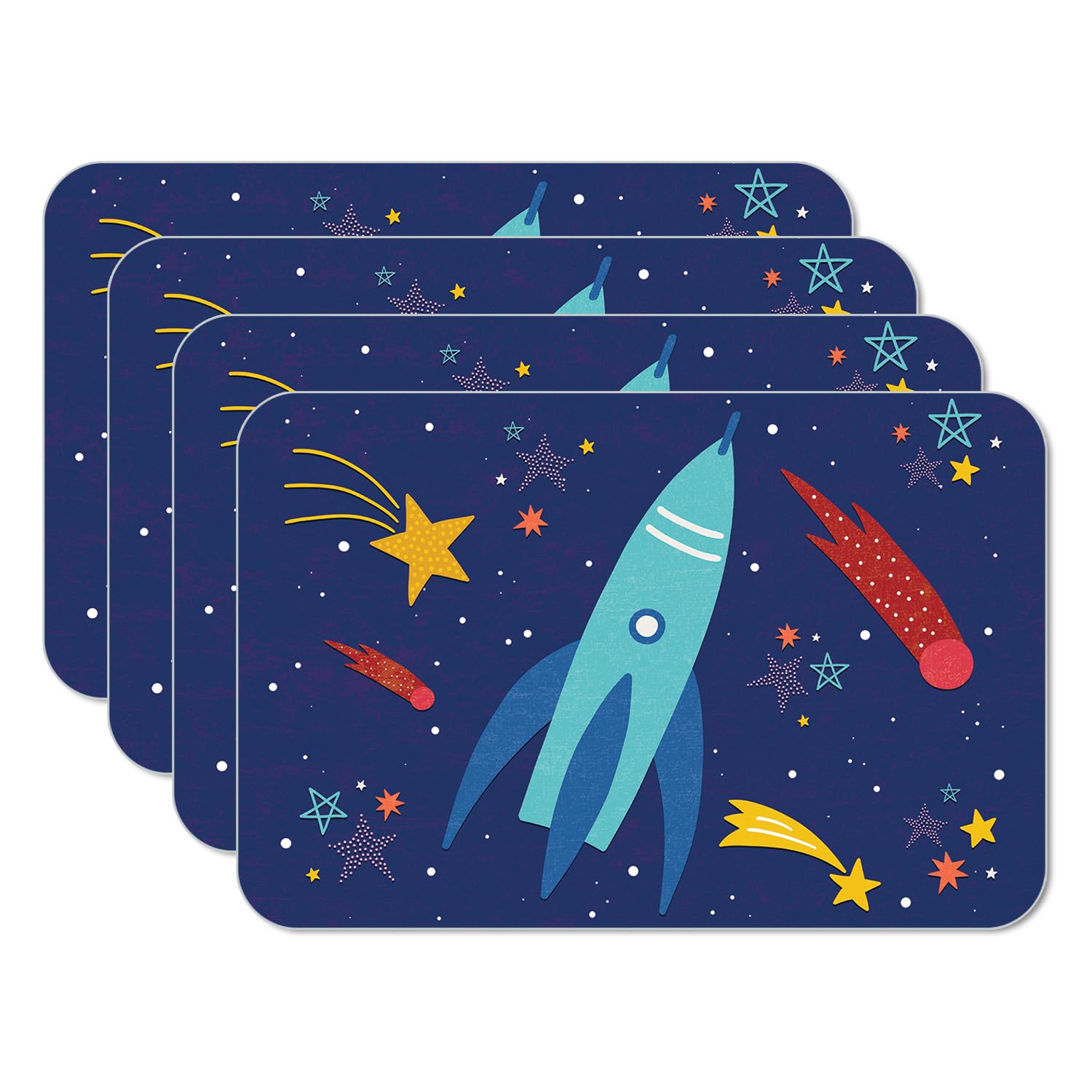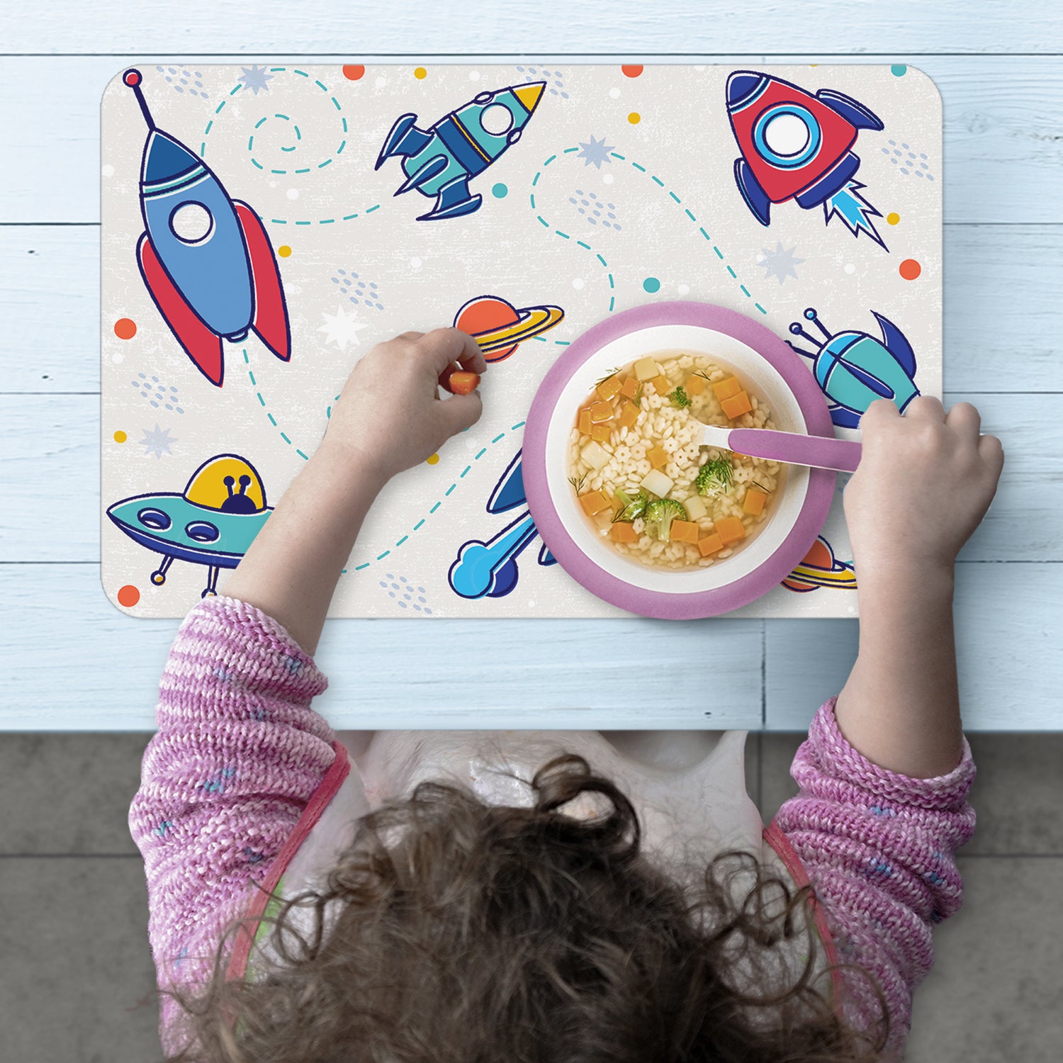 CounterArt Kids Space Flight4 Pack Reversible Easy Care Flexible Placemats Made in the USA