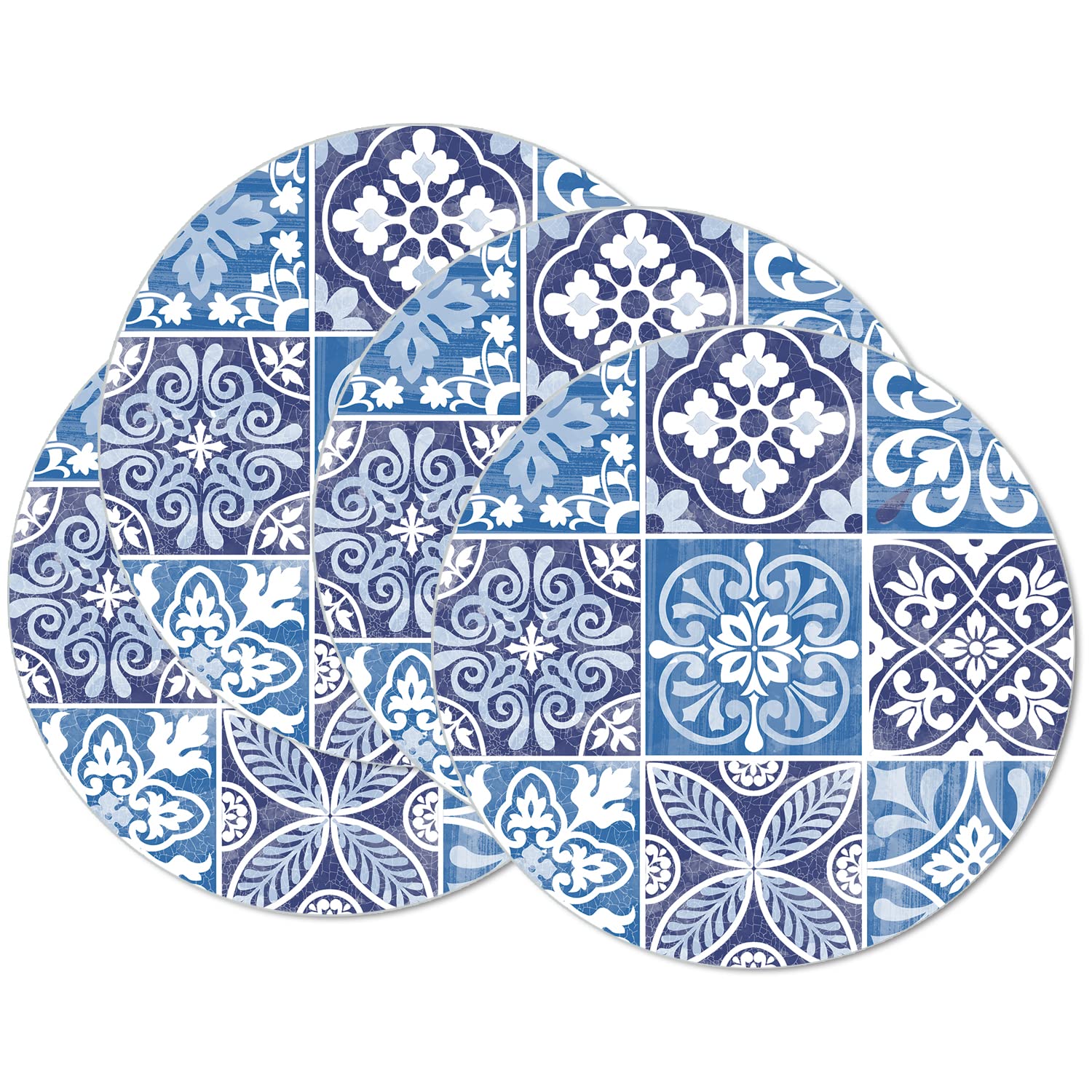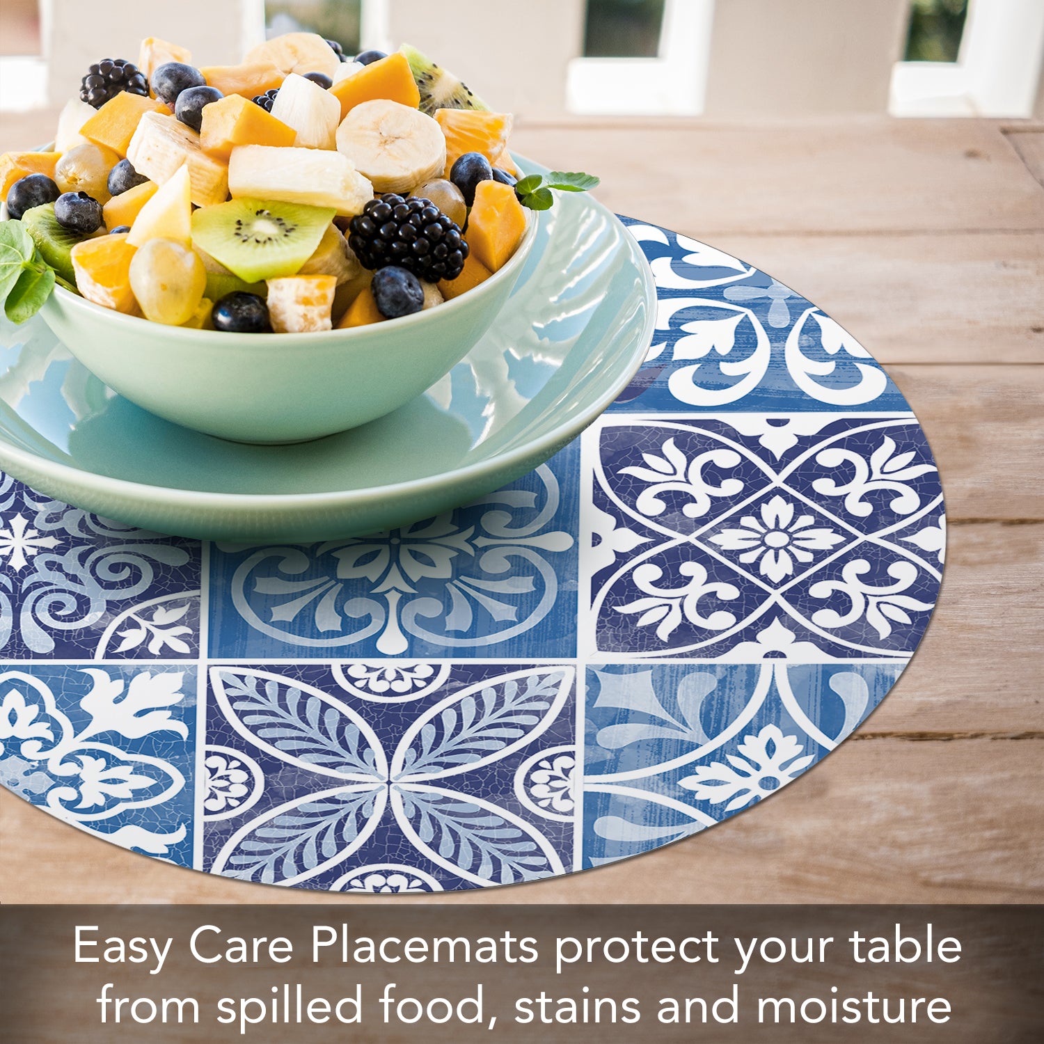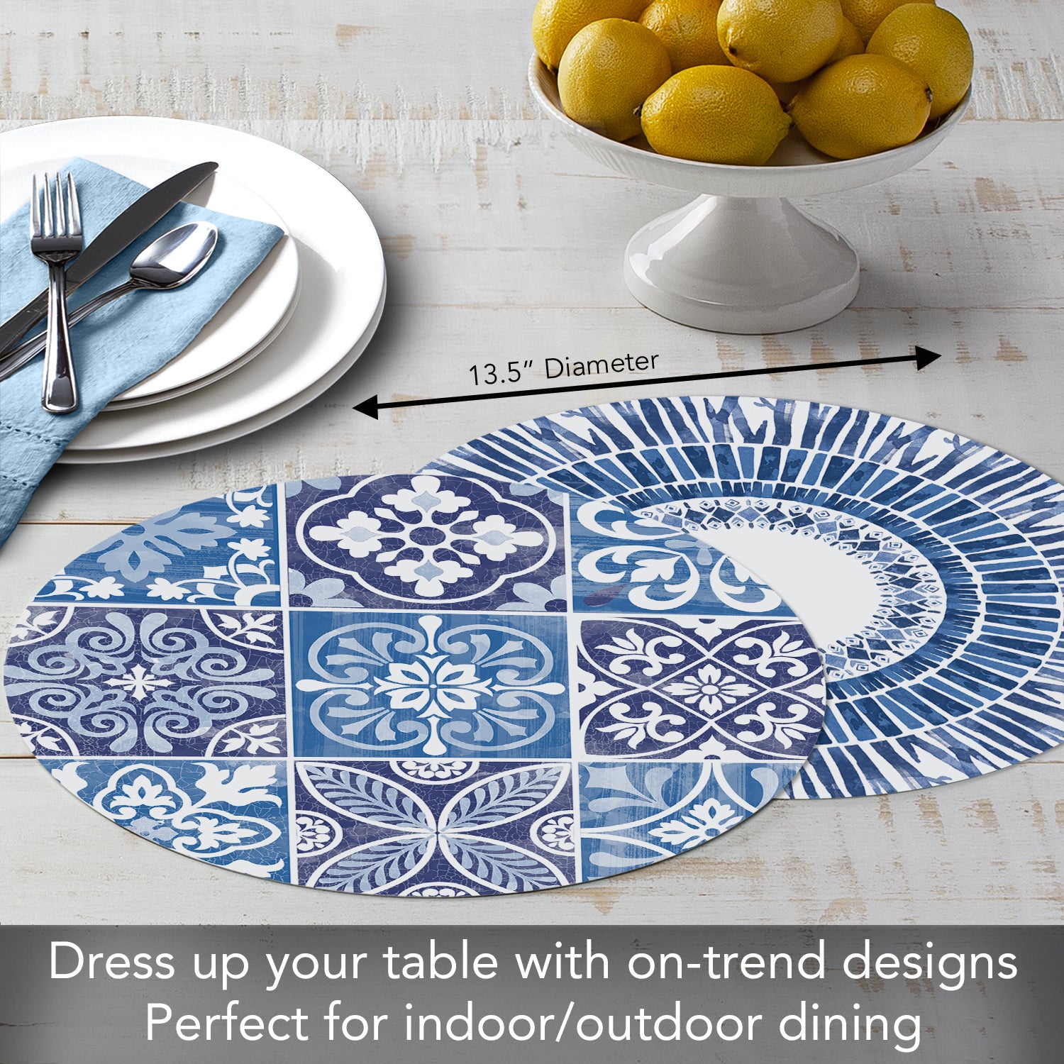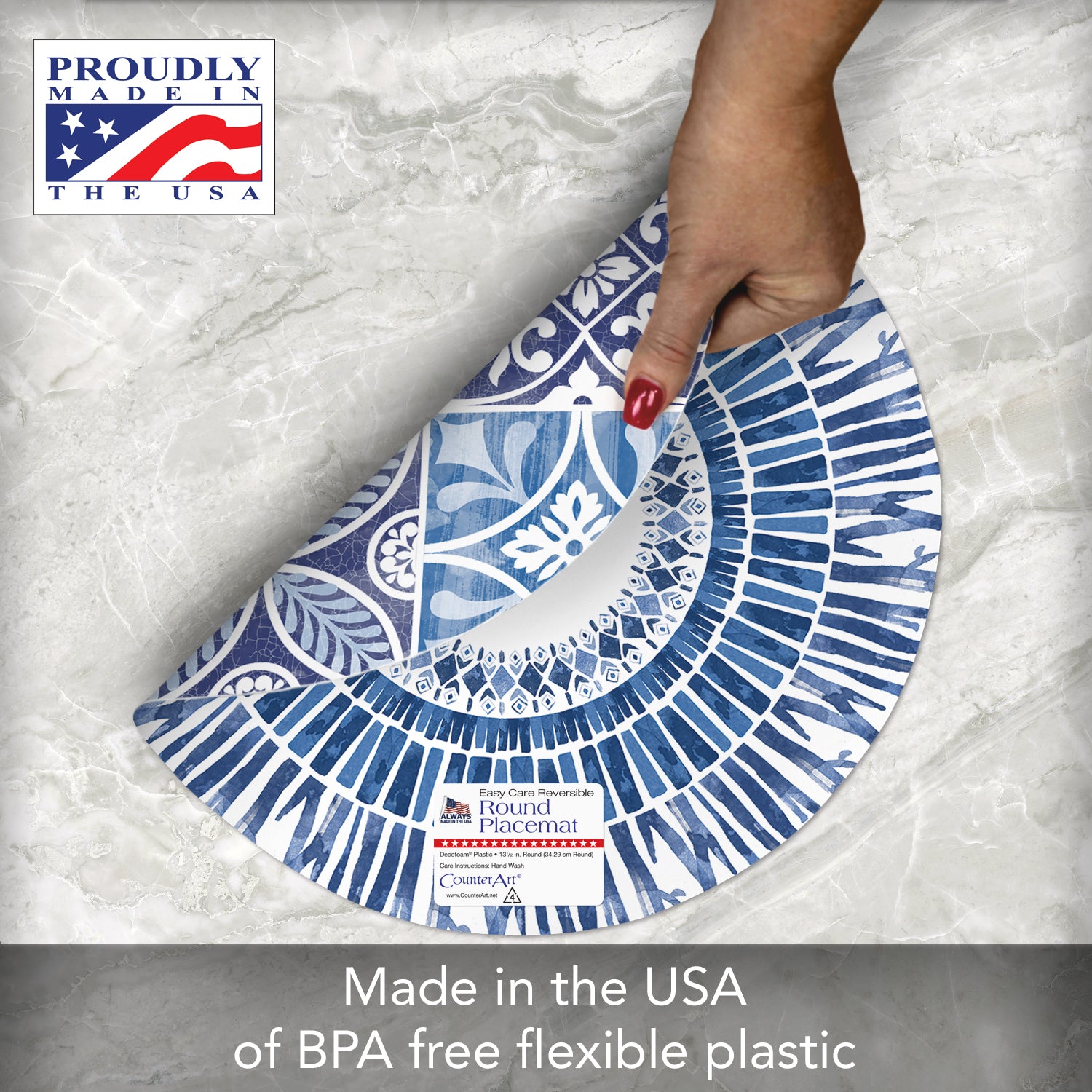 CounterArt Aegean 4 Pack Round Reversible Easy Care Flexible Placemats Made in the USA