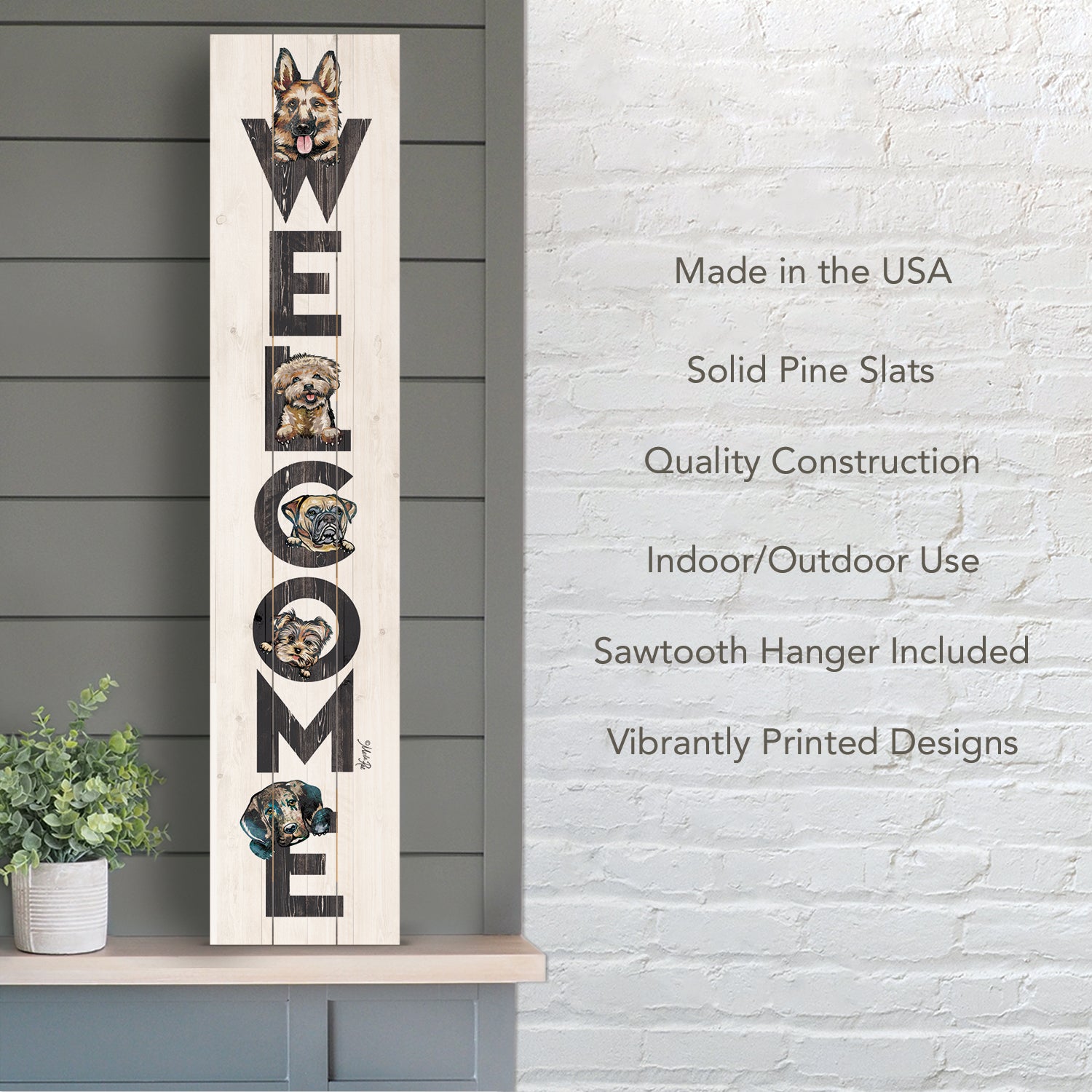 MEASUREMENTS-Sign measures 36" x 7.5" x .38". Includes Wire and sawtooth hangers to easily hang. Indoor and Outdoor use. Hang in your home to add distinction to your space. Or place on your covered porch to welcome friends and family.