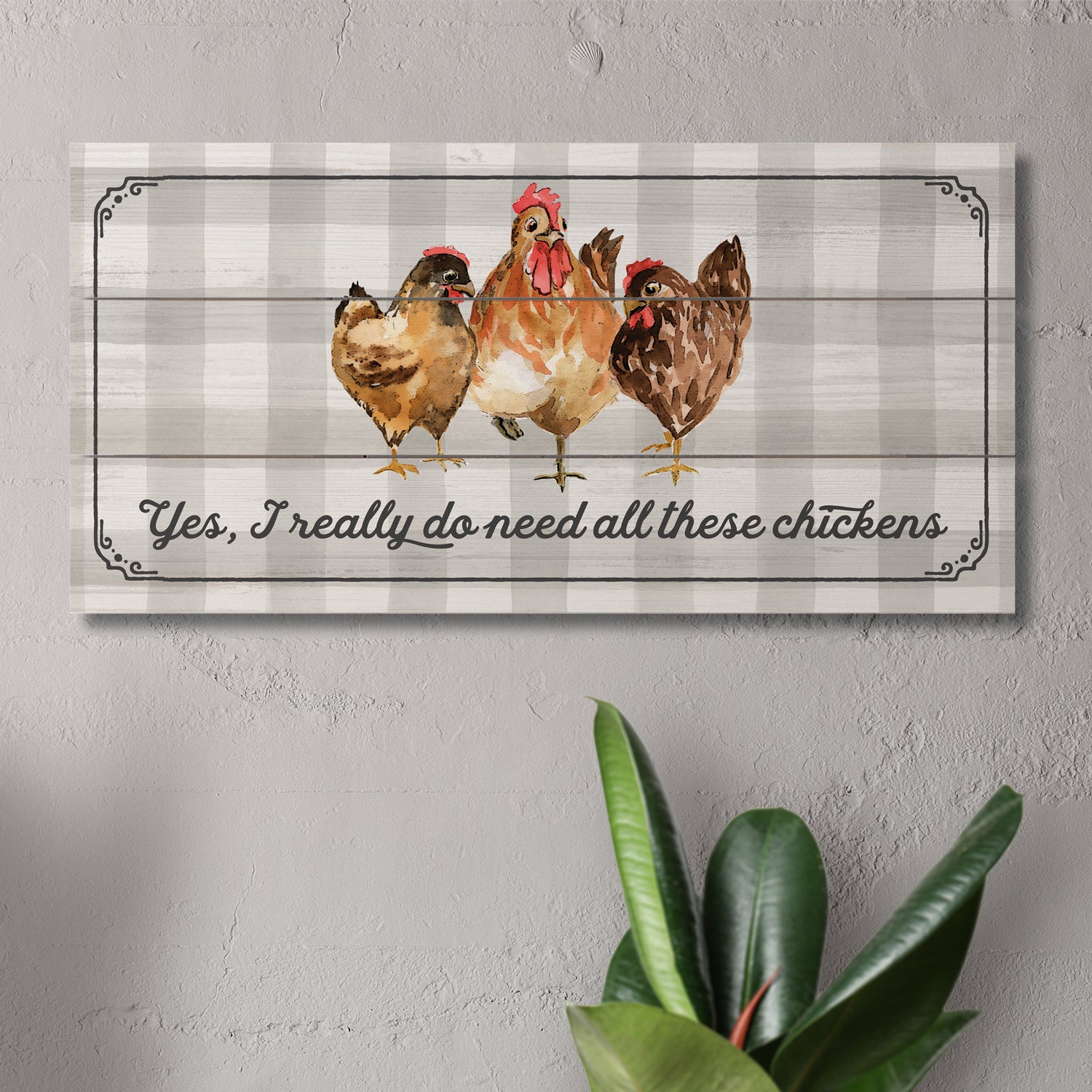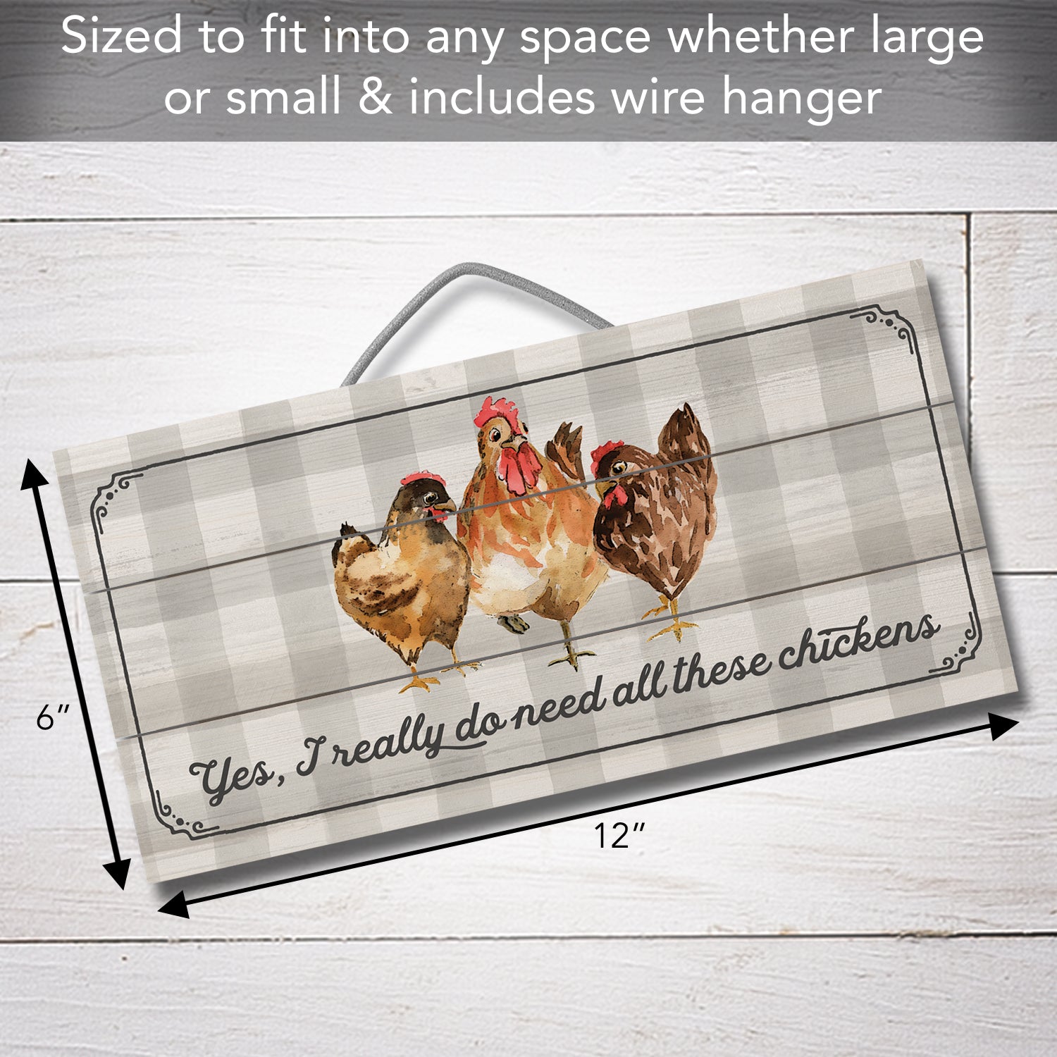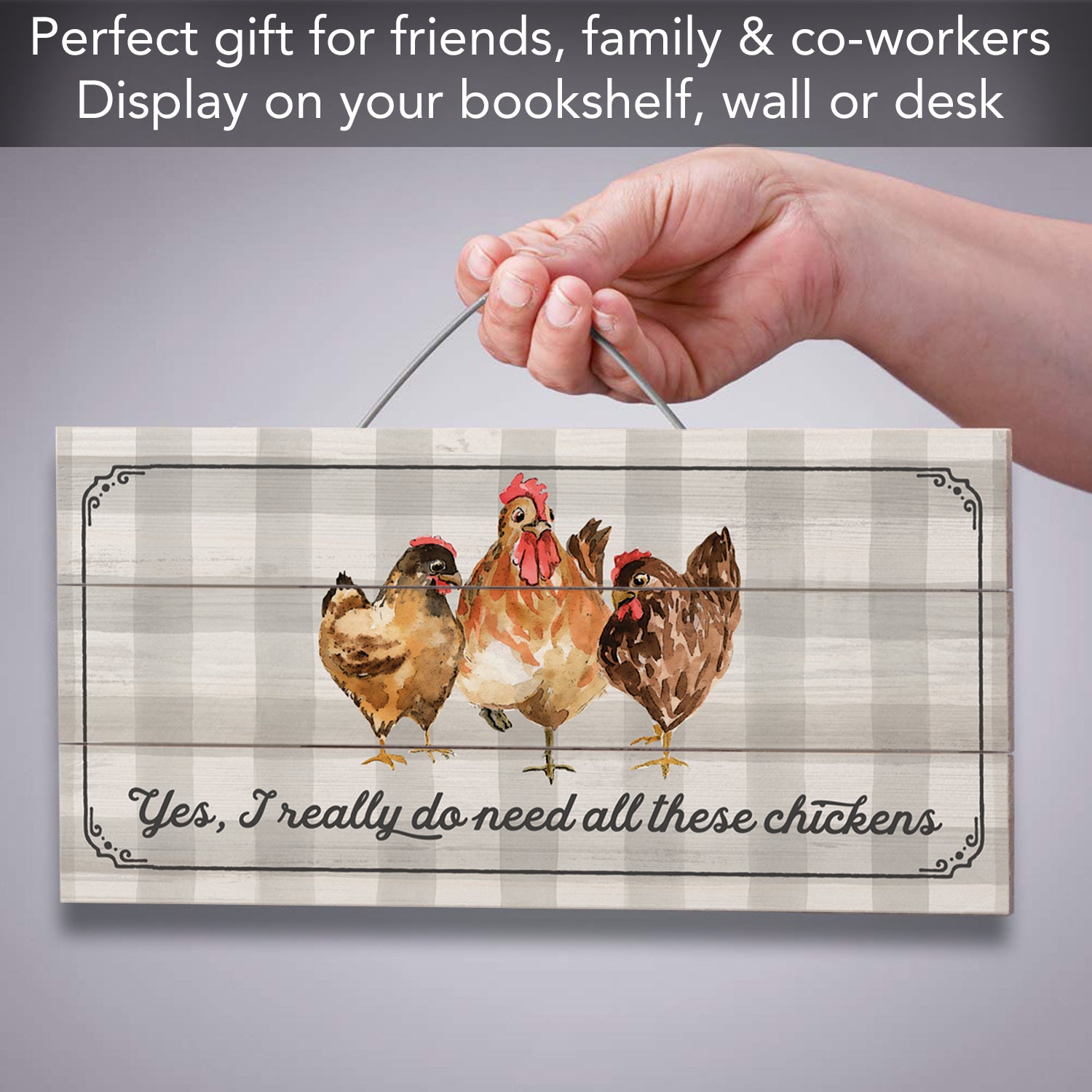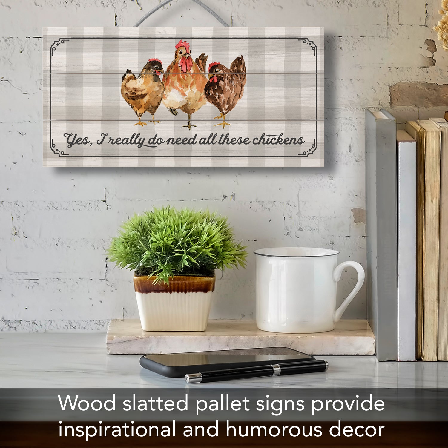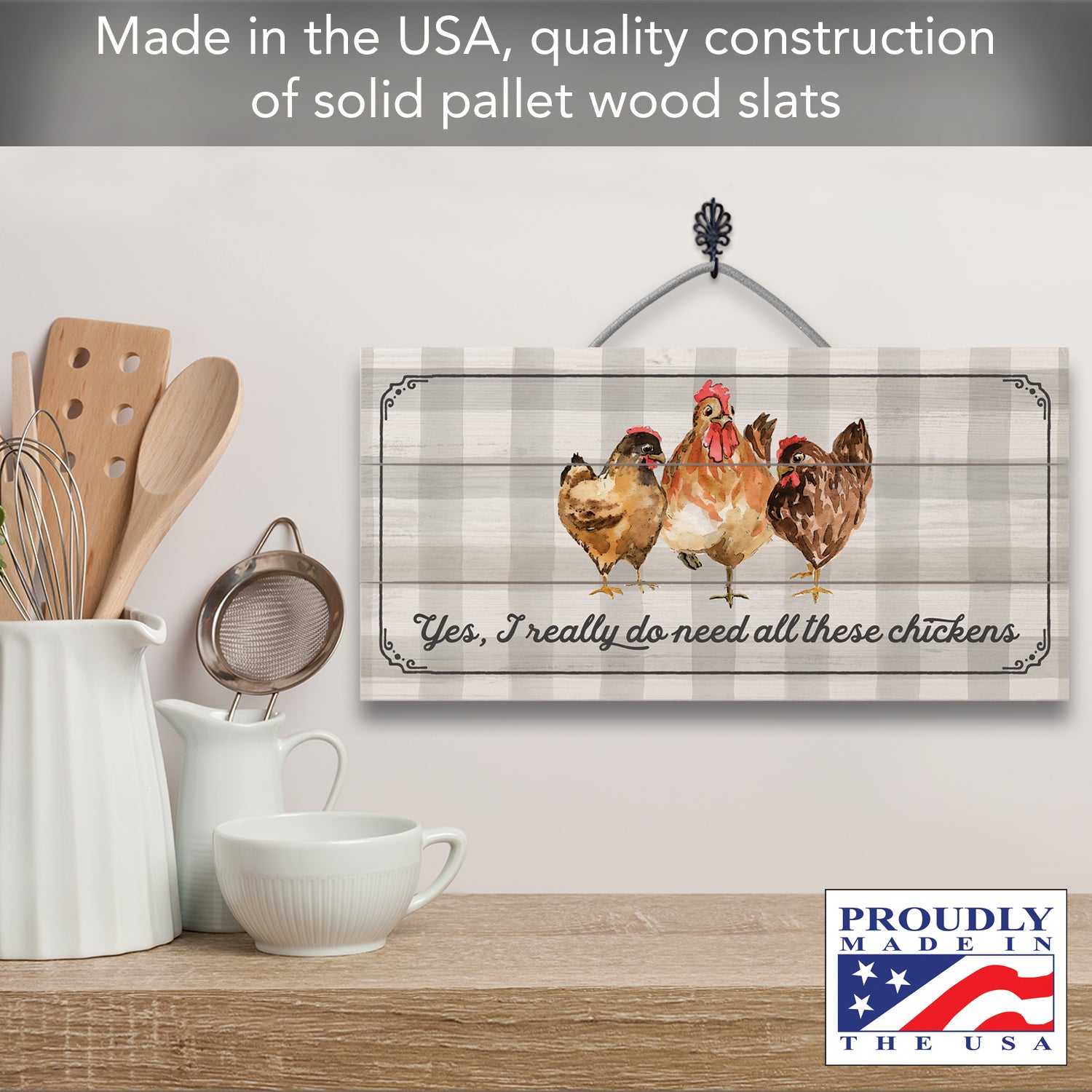All These Chickens Decorative Slatted Pallet Wood Sign 12" by 6" Made in the USA Wire Hanger Doubles as an Easel