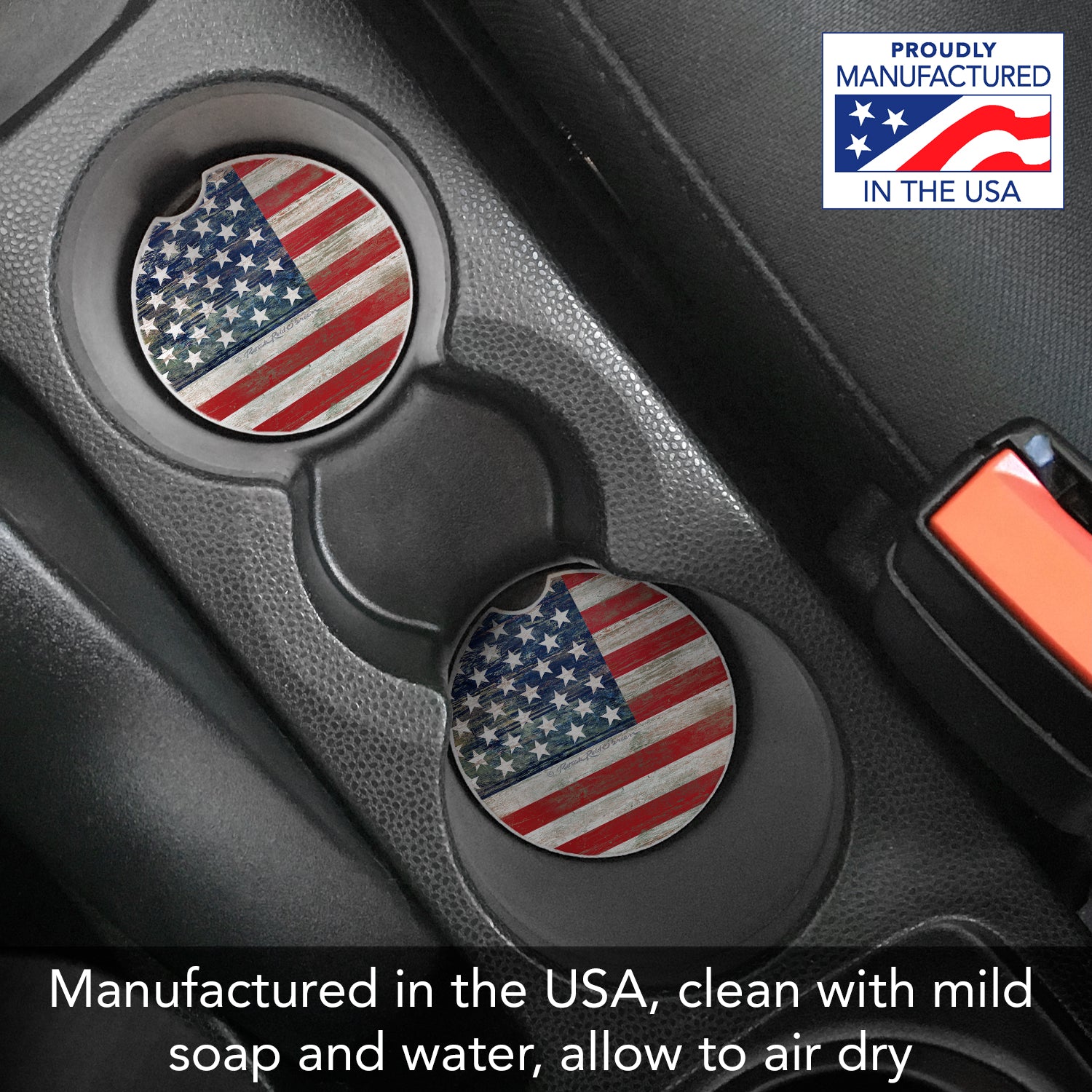 Americana Single Absorbent Stone Car Coaster 2.6” Diameter Manufactured in the USA