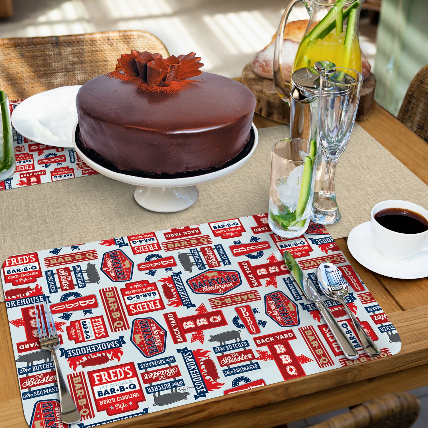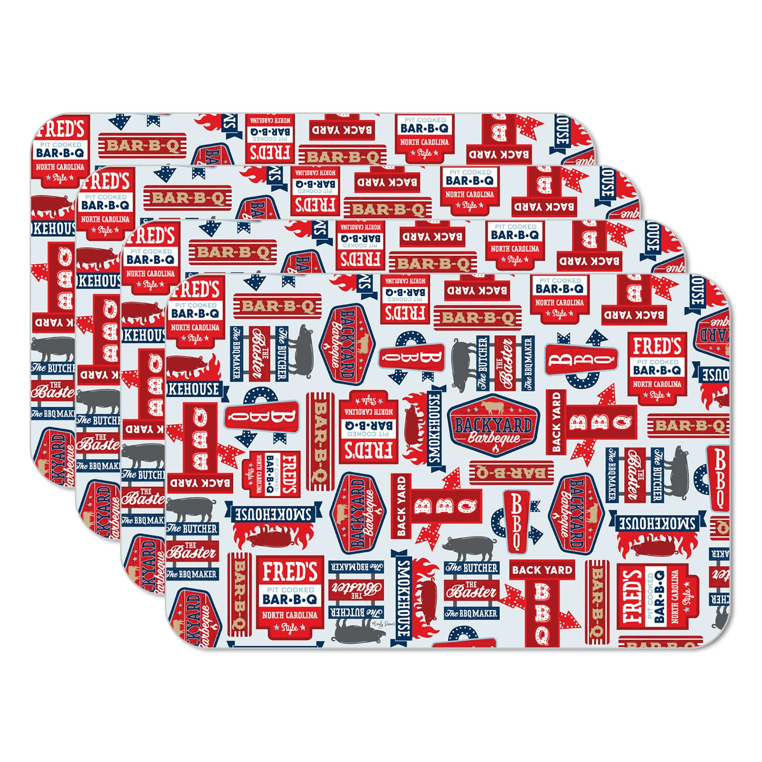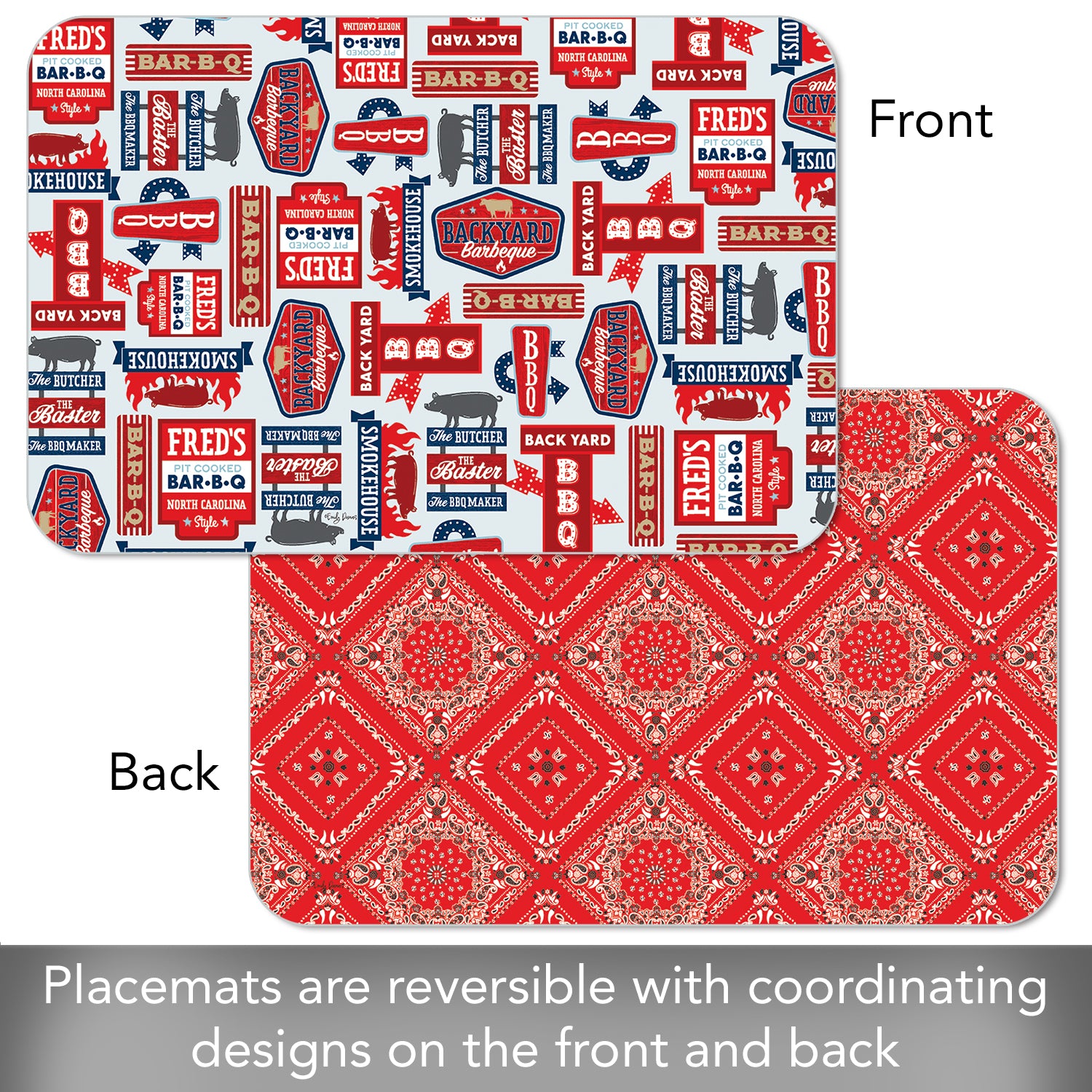 CounterArt BBQ Life 4 Pack Reversible Easy Care Flexible Placemats Made in the USA