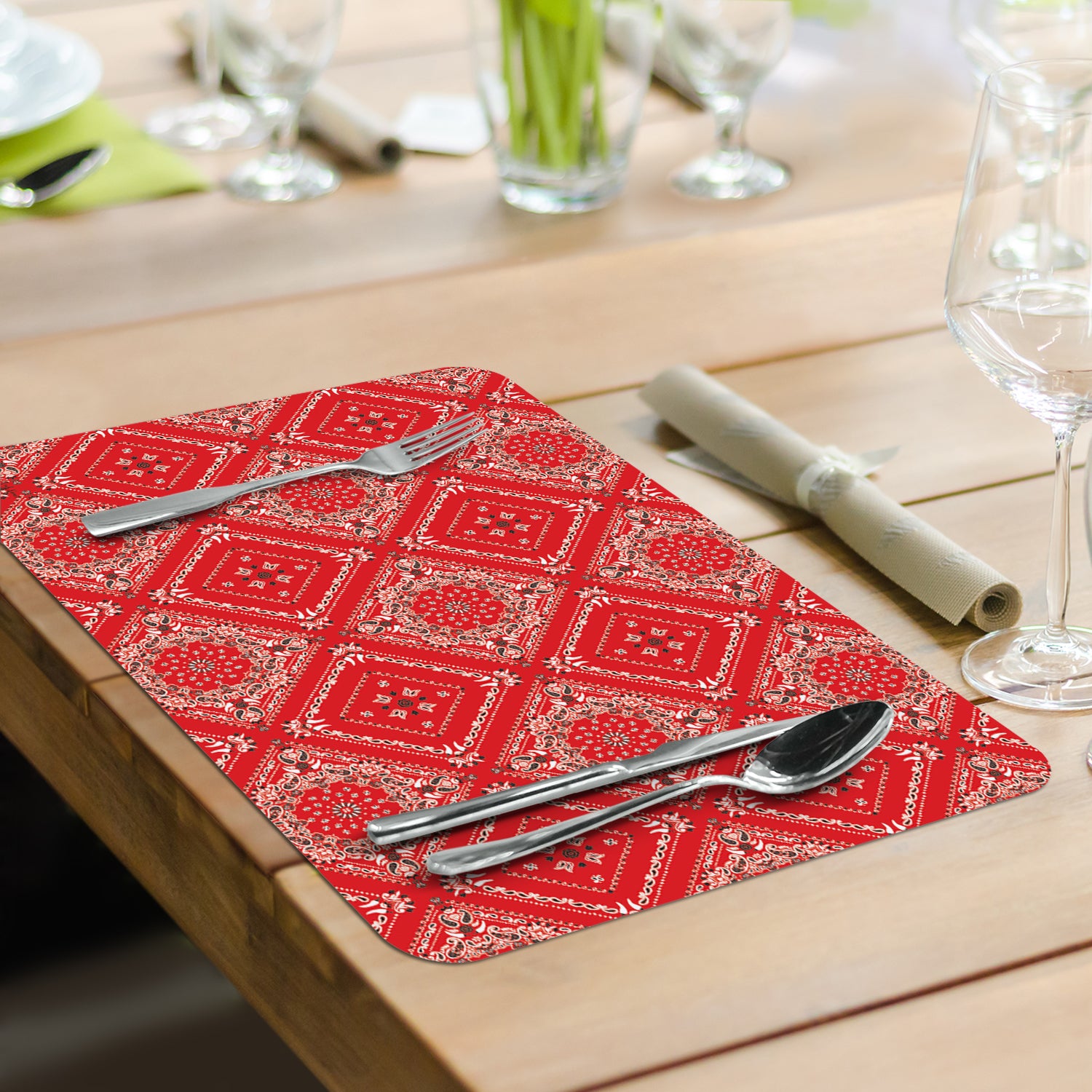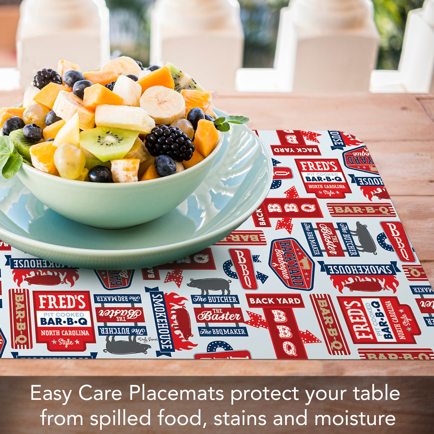 PROTECTS SURFACES-Placemats protect your table or countertop from spilled food, scratches, or stains. Placemat material prevents liquids from soaking through to your surfaces which may cause water rings or damage.