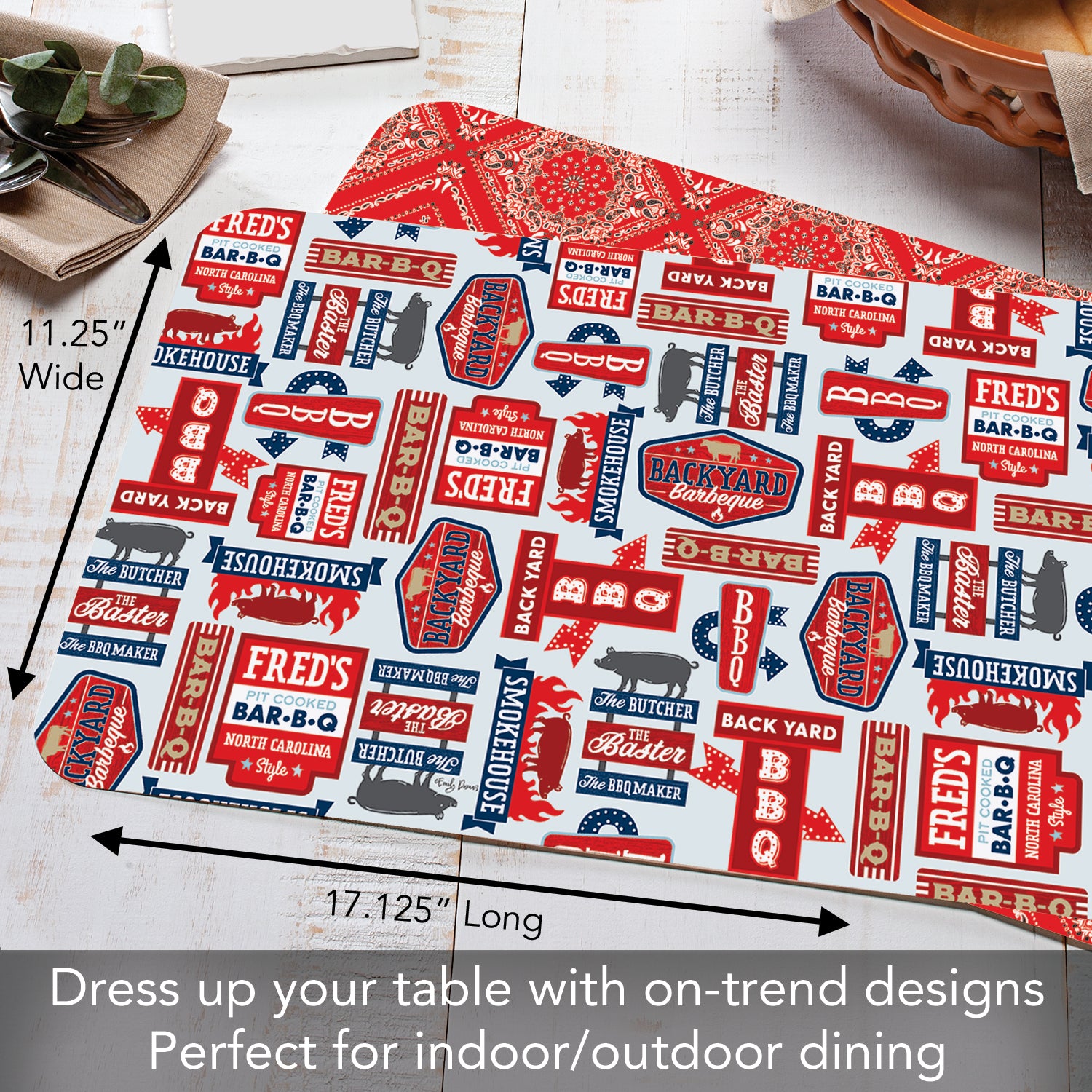 MEASUREMENTS-Each Placemat measures 17.13” x 11.25” x 0.15”. Placemats are an easy and inexpensive way to change the look of your dining space. Check out our Seasonal designs to decorate for the Holidays.