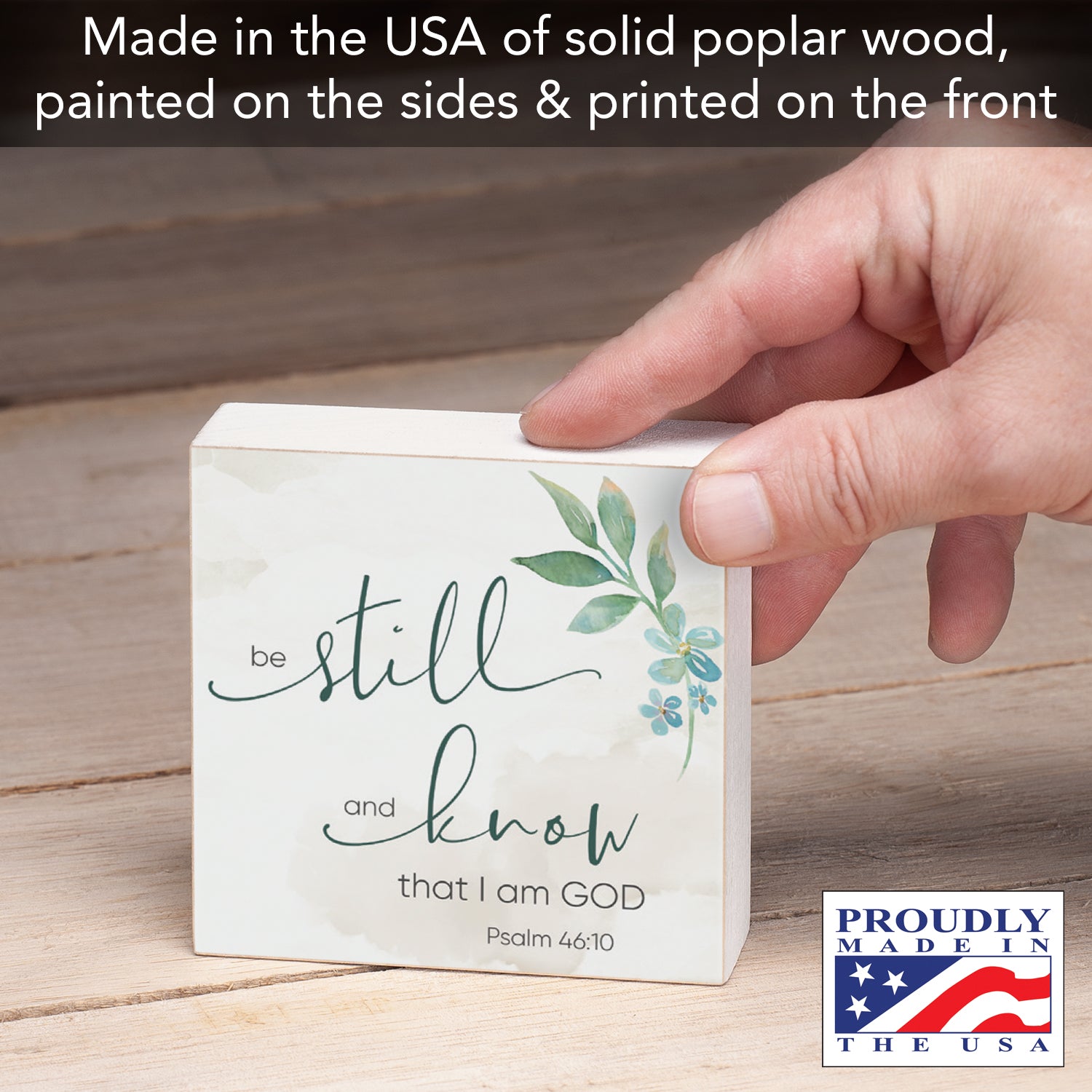 DURABLE-Our Wood Blocks are constructed of solid Poplar Wood. Artistic design and quotes are printed on the front with painted sides and a natural wood back.